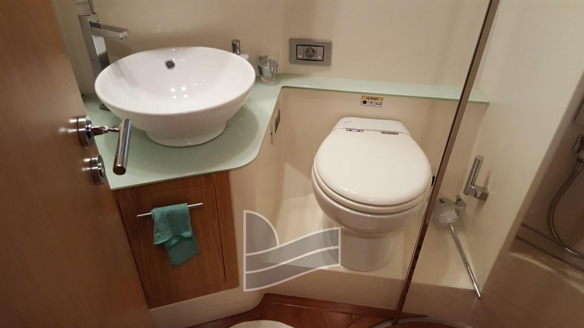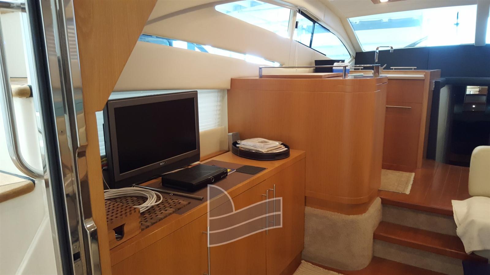 Eau sous pression, Douche de cockpit, Double barre à roue, 2 Flaps hydrauliques, Extincteur(s) fixe(s), Passerelle (idraulica), Plateforme arrière (di poppa in teak), Pompe de cale automatique, Porte latérale, Cockpit en teck, Prise de quai, Onduleur, Guindeau électrique, Echelle de bain, Corne.