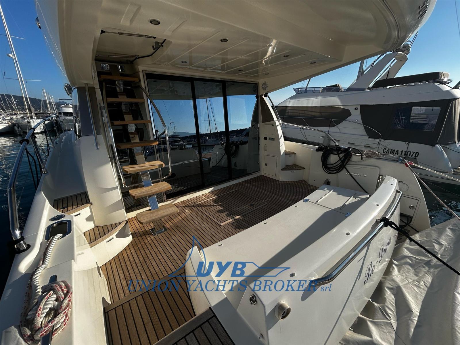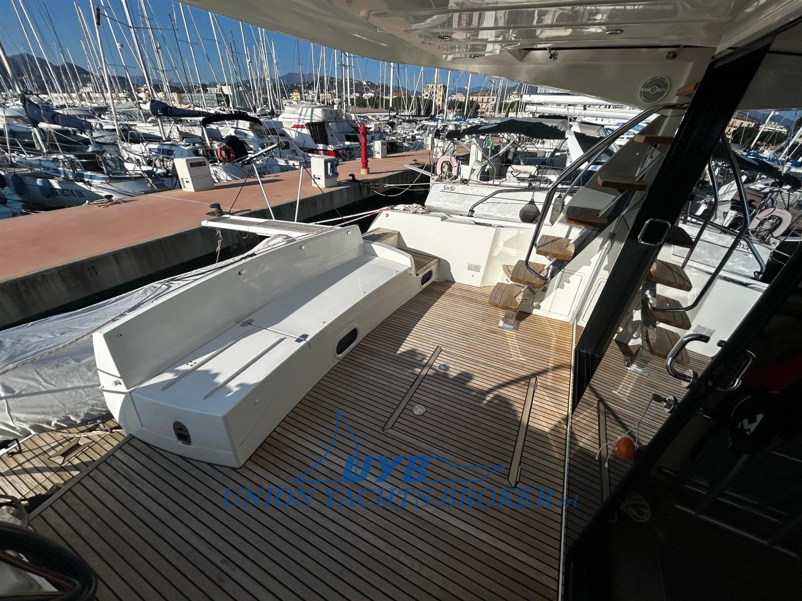 Eau sous pression, Douche de cockpit, Double barre à roue, 2 Flaps électriques, Indicateurs de flaps, Passerelle (idraulica), Plateforme arrière (strutturale in teak), Pompe de cale automatique, Porte latérale, Prise de quai, Connexion eau sous pression à quai, Guindeau électrique, Echelle de bain, Winch électrique arrière.