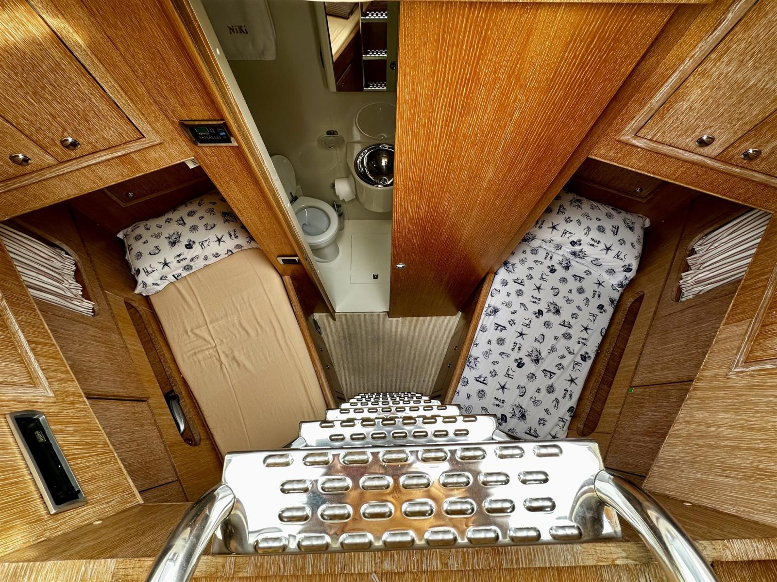 Maiora 23 à vendre par le 1er propriétaire, jamais affrété, battant pavillon de l’UE et TVA de l’UE payée. Entretenu toute l’année et en très bon état. Intérieur contemporain avec chêne blanchi, aménagement confortable avec 4 cabines toutes avec toilettes attenantes et cabine d’équipage pour 2 personnes.