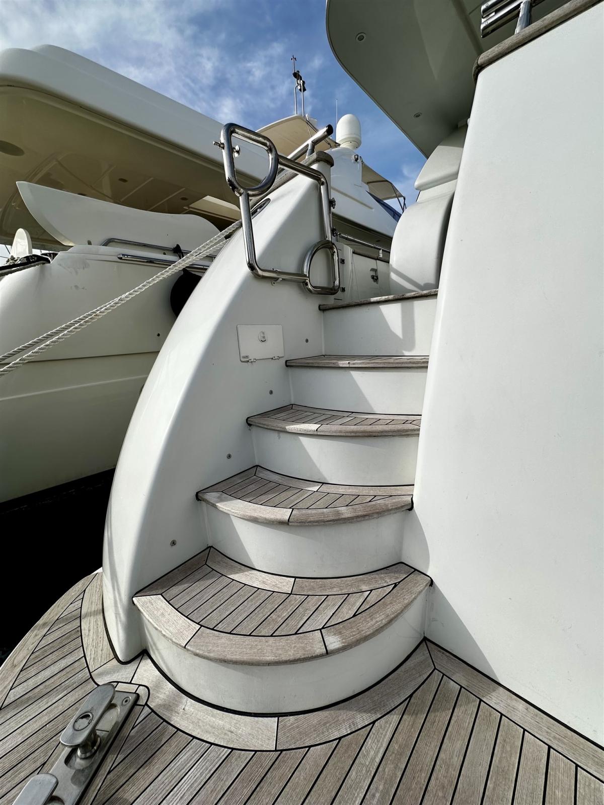 Alarme de pompe de cale, Eau sous pression, 2 Taquets pliants, Passavant en teck, Douche de cockpit, Flaps hydrauliques, Grue de flybridge, Extincteur(s) fixe(s), Compresseur de plongée, Indicateurs de flaps, Passerelle, Plateforme arrière, Pompe de cale automatique, Porte latérale, Porte latérale, Cockpit en teck, Onduleur, Rollbar, Guindeau électrique, Echelle de bain, table de cockpit, Corne, Winch électrique arrière, Winch électrique avant.