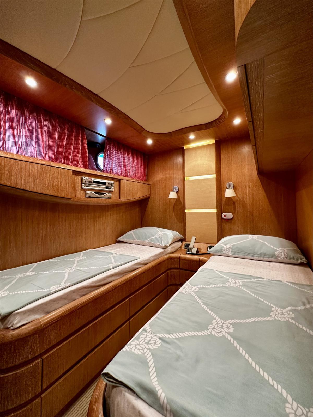 Ballon d'eau chaude, Dessalinisateur (Idromar 120 l/h), Prises interieures 12v, Prises interieures 220v, Réservoir d'eau noire, Interphone, 5 Toilettes électriques.