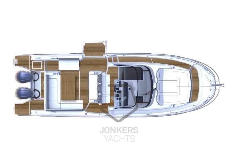 Avec le Cap Camarat 10.5 WA, n’attendez plus pour explorer les petites calanques ou pour effectuer des traversées plus longues. Avec une vitesse de croisière de 20 nœuds, et des vitesses de pointe à plus de 40 nœuds, la coque en V dessinée par Michael Peters apporte plus de résistance et de rigidité à ce bateau de sport. Une fois à an-chor, il y en a pour tous les goûts : un cockpit avant avec trois chaises longues intégrées parfaites pour se détendre, une terrasse ouvrant à bâbord pour créer une plate-forme de bain supplémentaire équipée d’une échelle de bain, un cockpit arrière convertible avec table amovible, tout cela à choisir en fonction de vos plans.