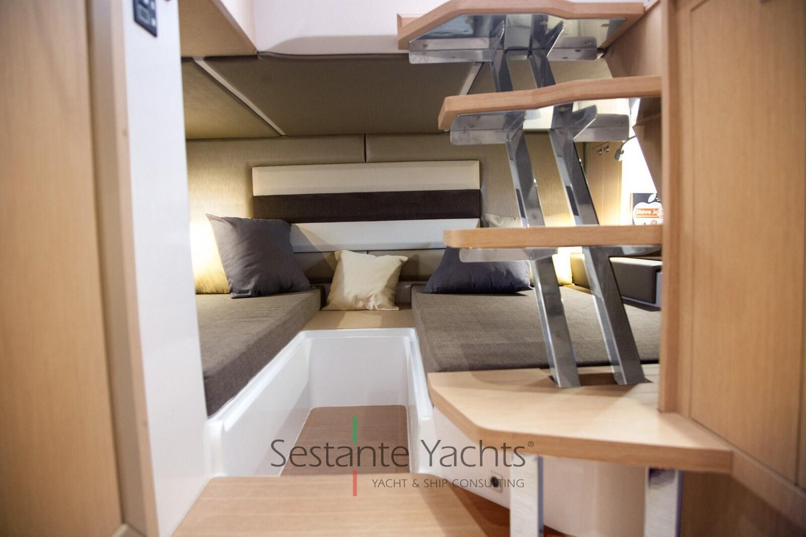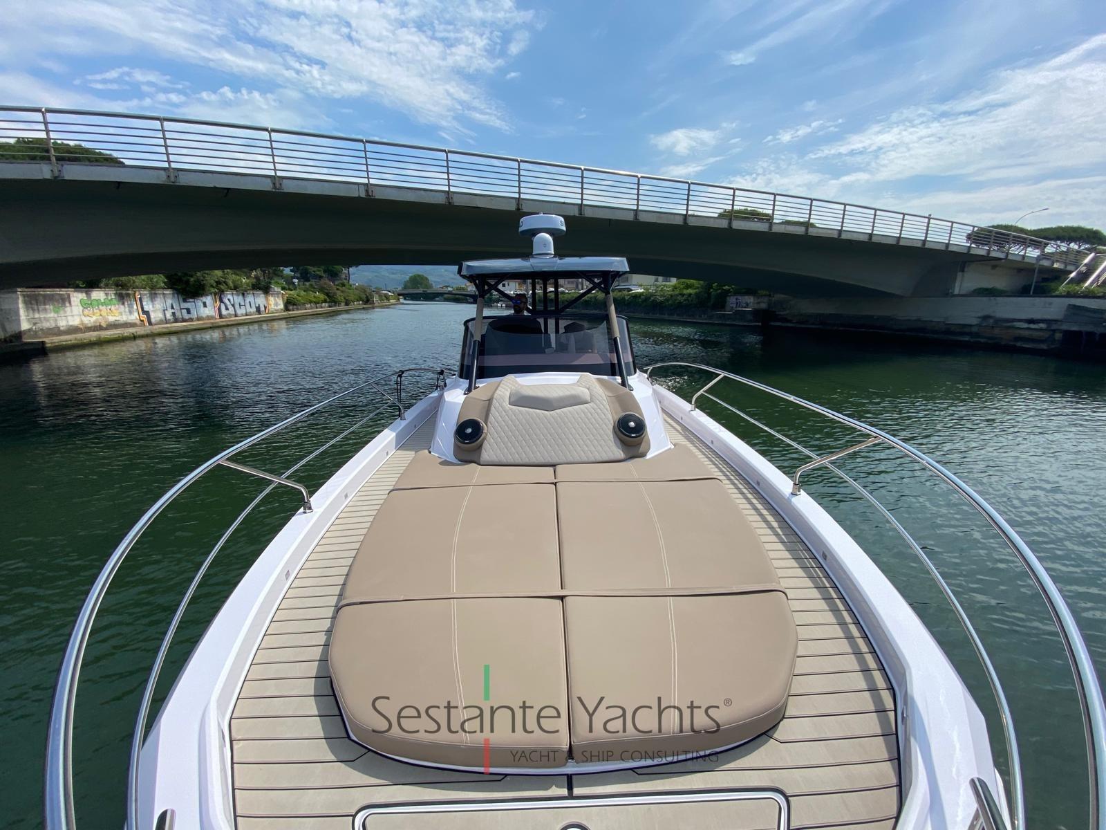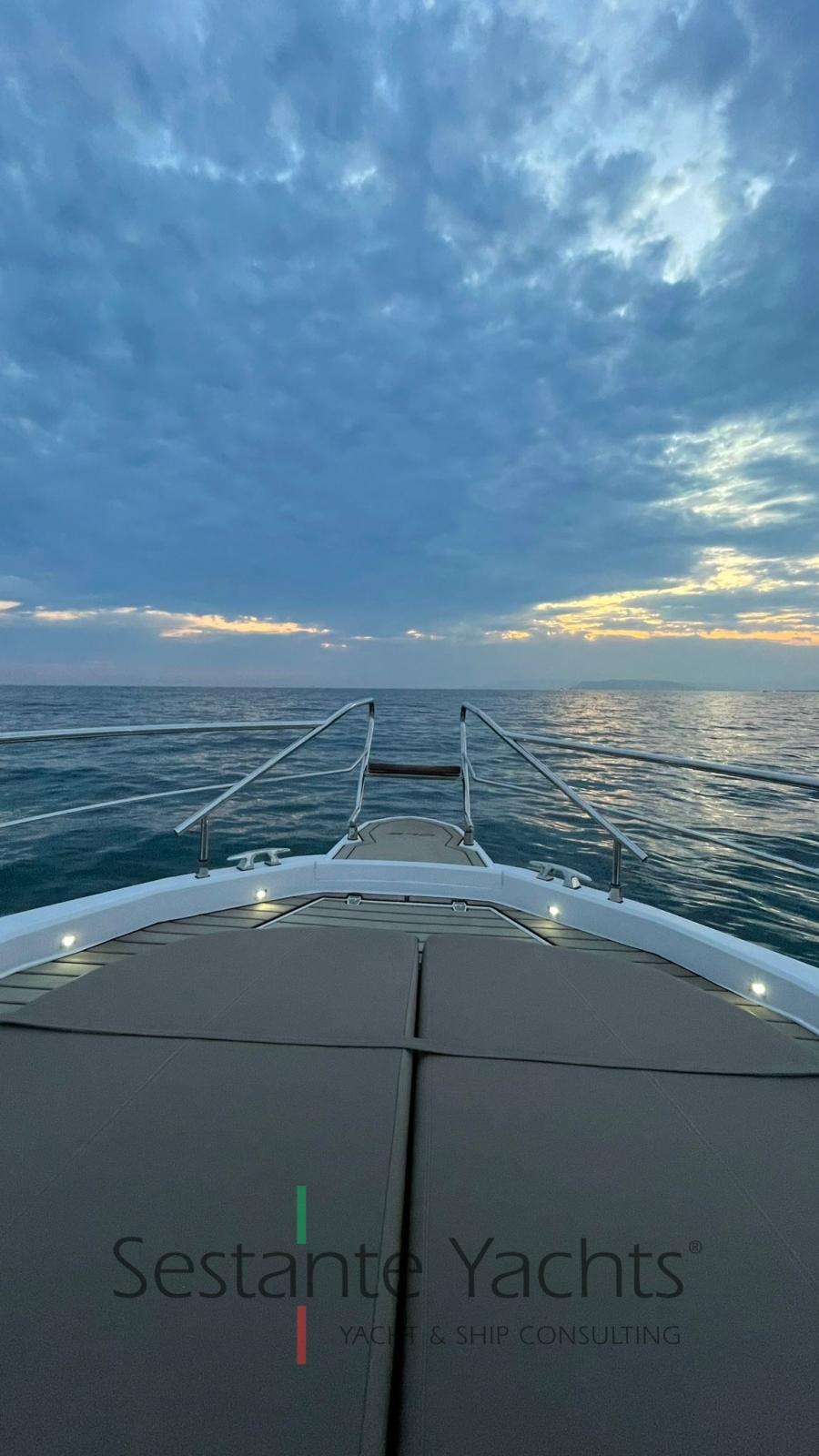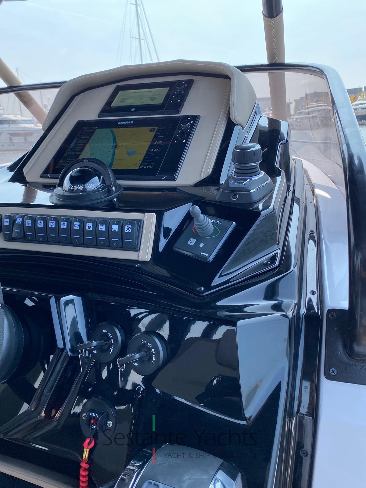 Alarme moteur, Eau sous pression, Trim hydraulique, 4 Batteries, Couleur spéciale, Douche de cockpit, Flaps électriques, Hard top, Lavabo dans le cockpit, Éclairage de courtoisie, Prise de quai, Guindeau électrique, Echelle de bain, table de cockpit, Corne.