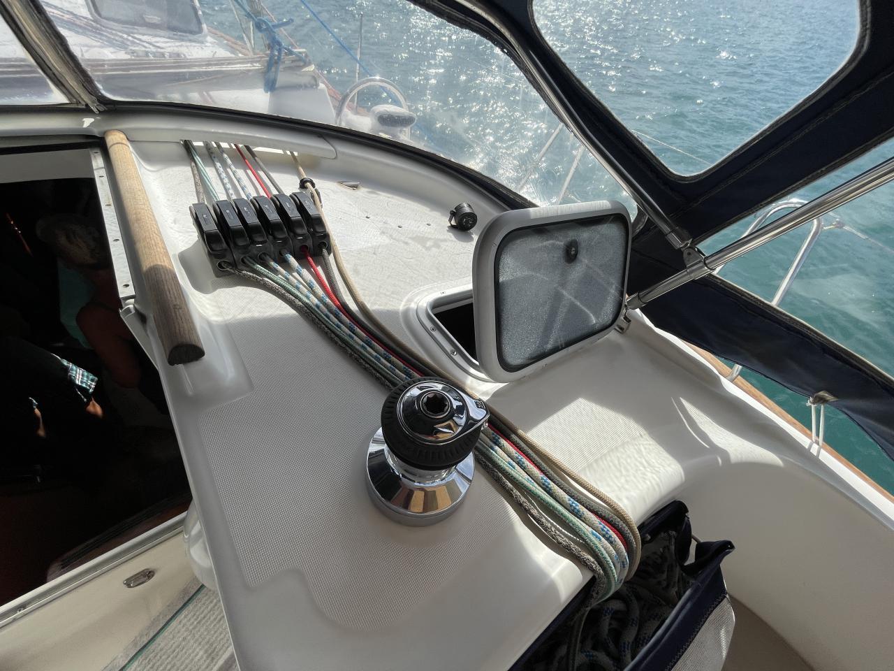 Un winch électrique Lewmar ST 40 sur le roof à bâbord