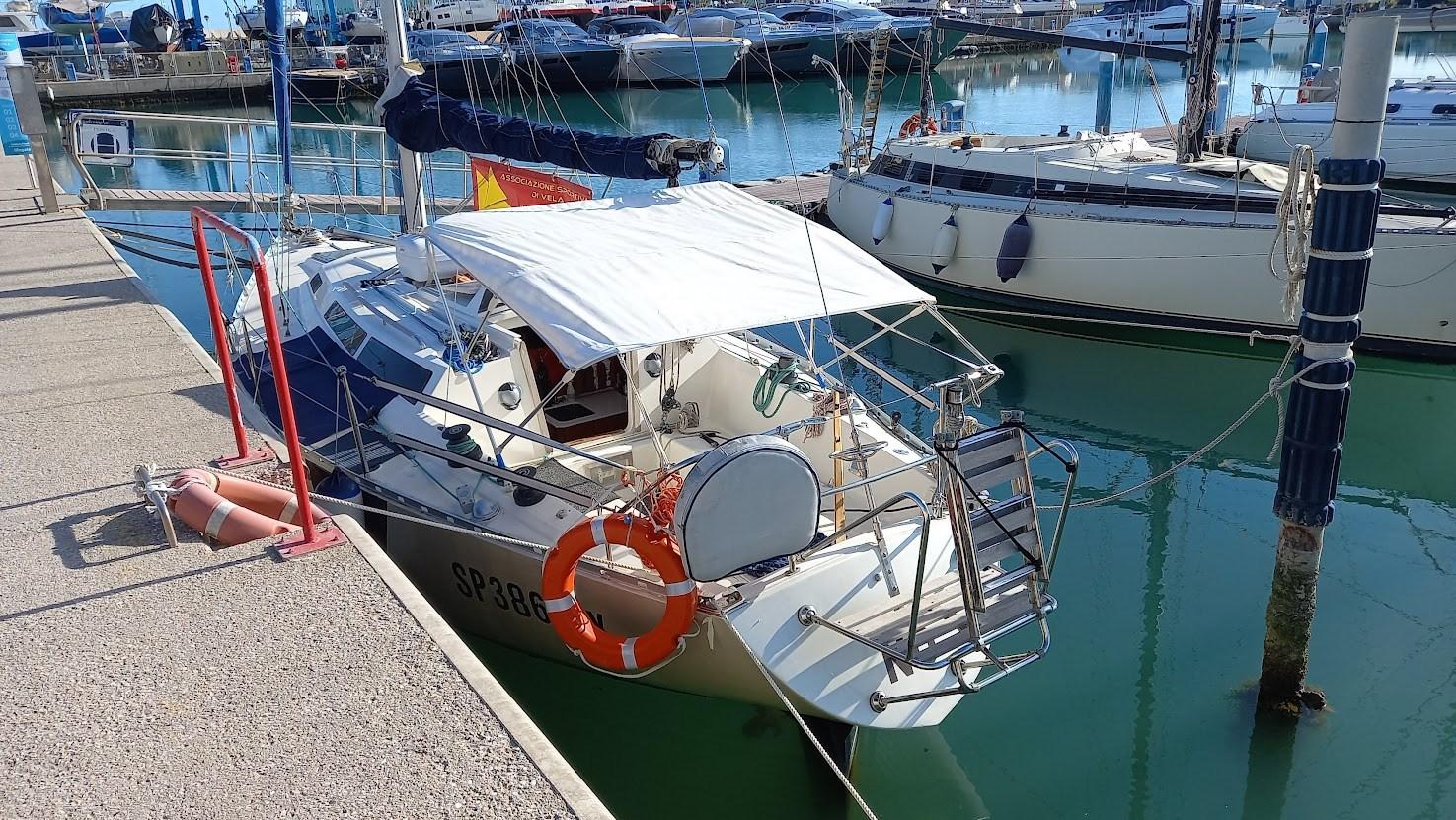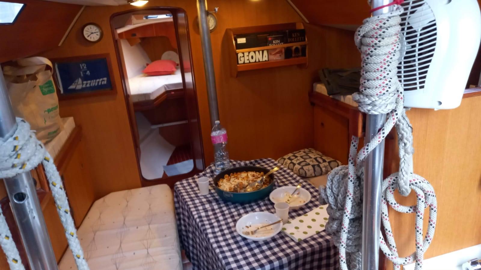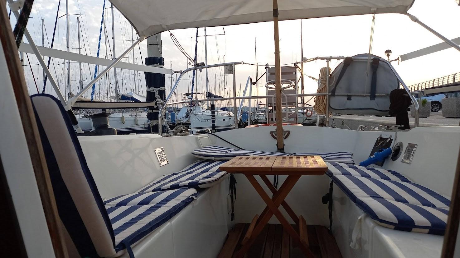 Eau sous pression, 2 Batteries (ognuna da 85 ah), Douche de cockpit, Éclairage de courtoisie, Moteur d'annexe (3.5 hp), Panneau solaire (50 w), Passerelle, Plateforme arrière, Pompe de cale manuelle, Prise de quai, Connexion eau sous pression à quai, Guindeau électrique, Gréement monotoron, Echelle de bain, table de cockpit, Annexe (Zodiak 2.40 mtt).