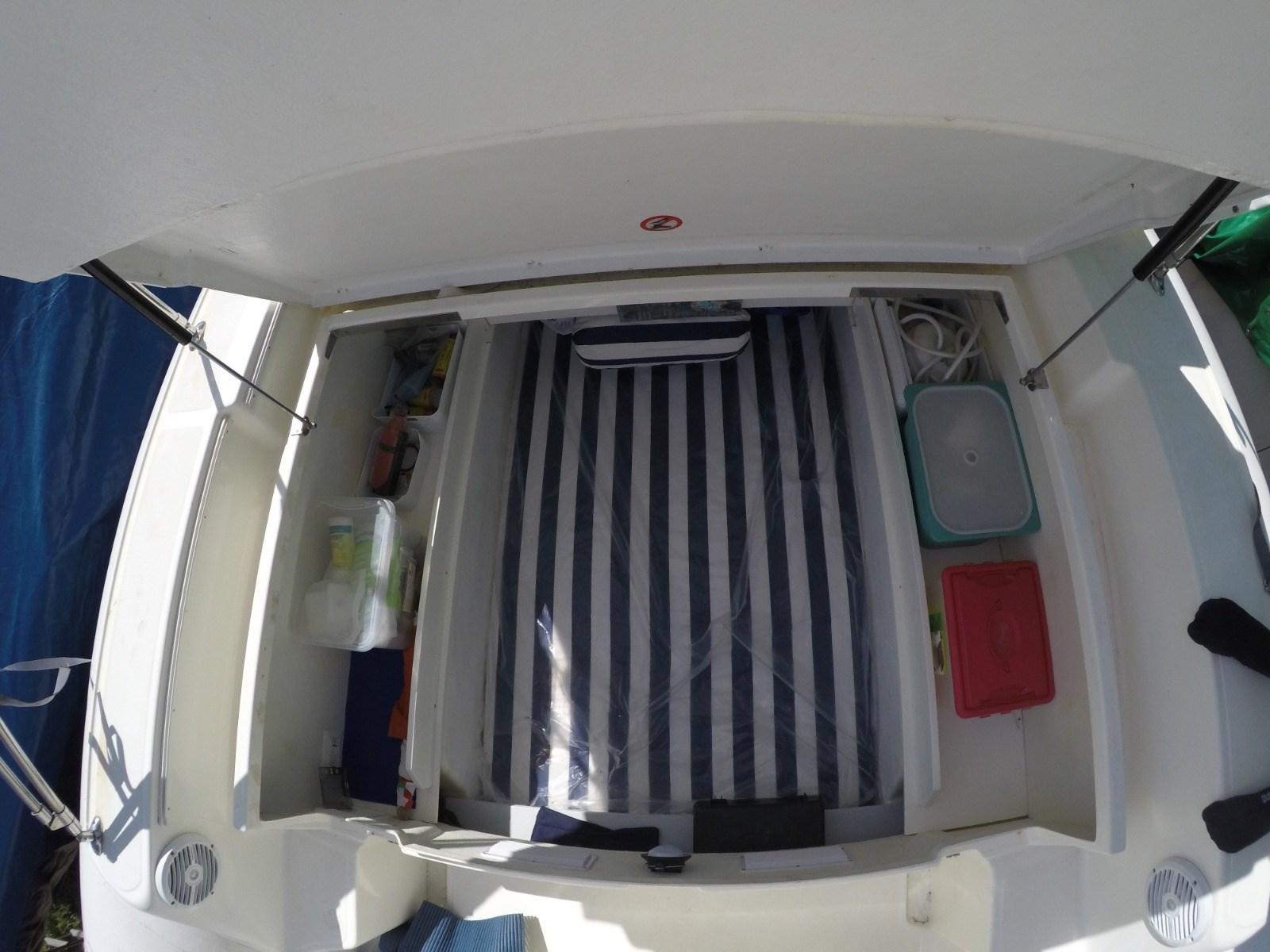 Cette annexe a été installée avec beaucoup de soin par le propriétaire qui a évalué le rouleau en fibre de verre au-dessus du sol, cela évite l’impact de l’ancre avec l’eau la rendant beaucoup plus sèche, également un lit double très confortable a été installé dans le coffre arrière.