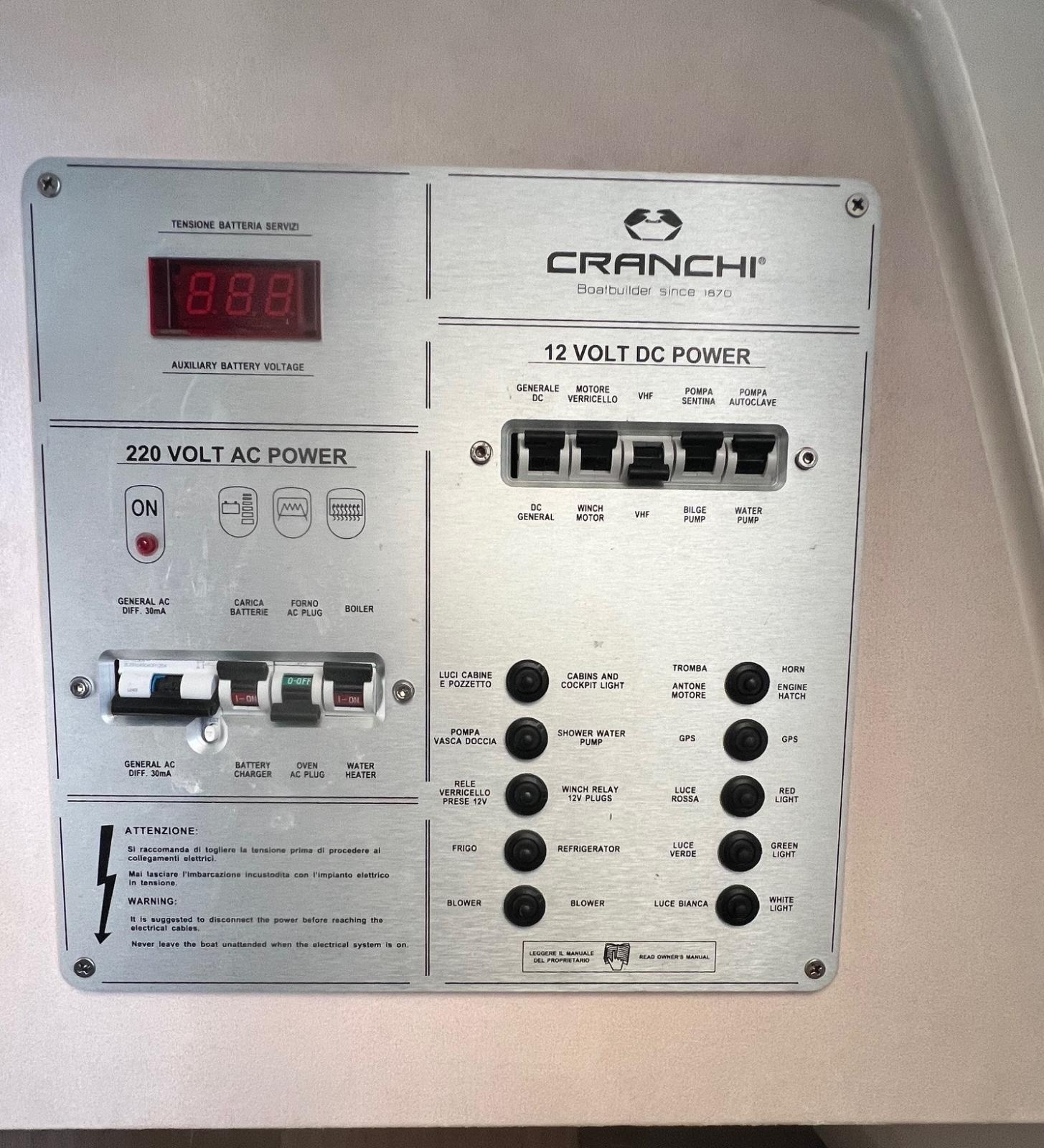 Alarme moteur, Eau sous pression, 3 Batteries, Douche de cockpit, Flaps hydrauliques, Extincteur(s) fixe(s), Plateforme arrière, Cockpit en teck, Prise de quai, Guindeau électrique, Echelle de bain.