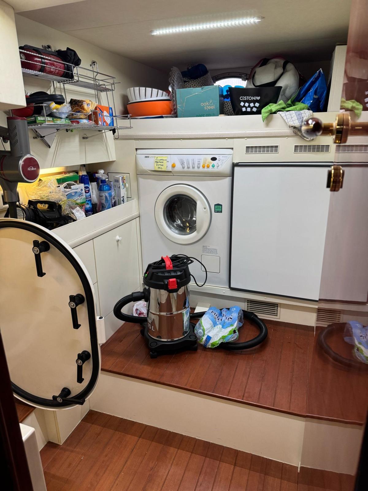Eau sous pression, Douche de cockpit, Phare de poursuite, Passerelle (IDRAULICA), Cockpit en teck, Guindeau électrique (con campana di tonneggio), Echelle de bain.
