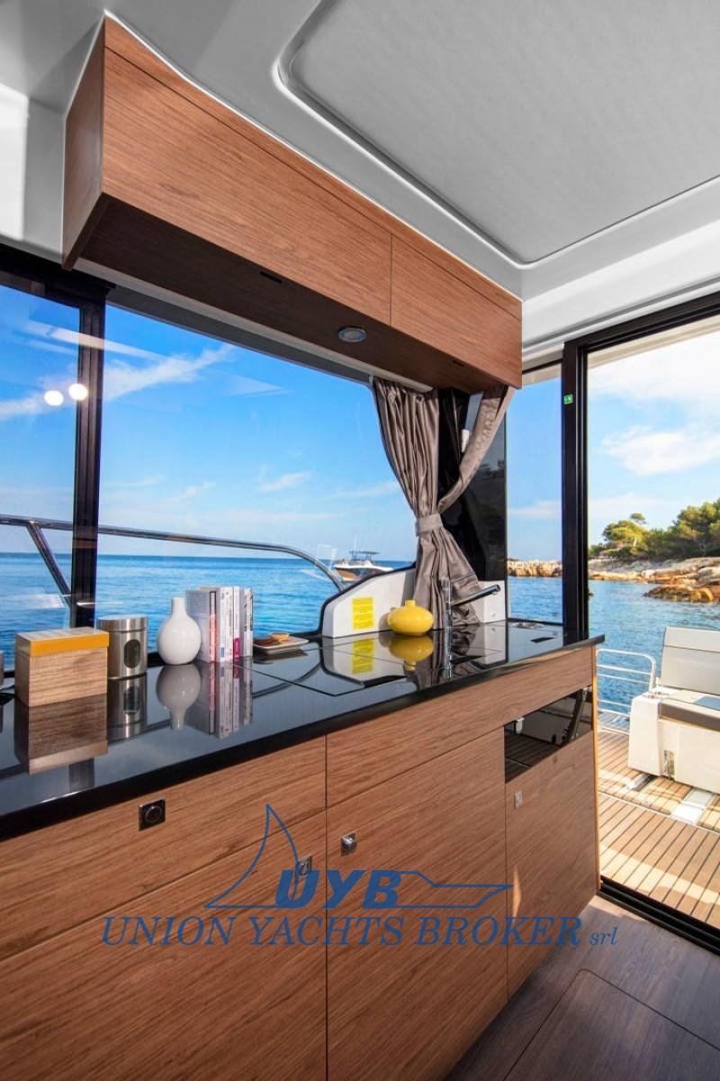 Alarme moteur, Eau sous pression, 4 Batteries, Douche de cockpit, Double barre à roue, Propulseur d'étrave (con doppio controllo: fly e timoneria), Flaps électriques (automatici ZIPWAKE), Éclairage de courtoisie, 2 Plateforme arrière, Pompe de cale manuelle, Porte latérale, Porte latérale, Connexion eau sous pression à quai, Guindeau électrique, Echelle de bain, Corne (dual station).