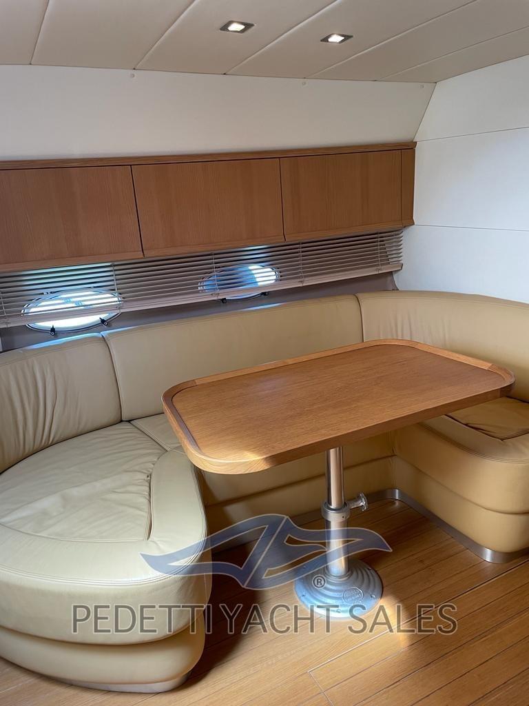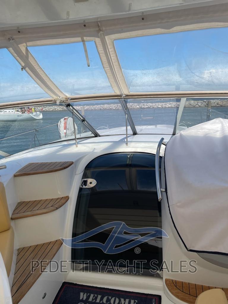 Alarme gaz, Alarme moteur, Alarme de pompe de cale, Ouverture du compartiment moteur électrique, Eau sous pression, Douche de cockpit, Flaps électriques, Hard top, Lavabo dans le cockpit, Passerelle, Plateforme arrière, Pompe de cale automatique, Porte latérale, Cockpit en teck, Prise de quai, Guindeau électrique, Echelle de bain, table de cockpit, Corne.