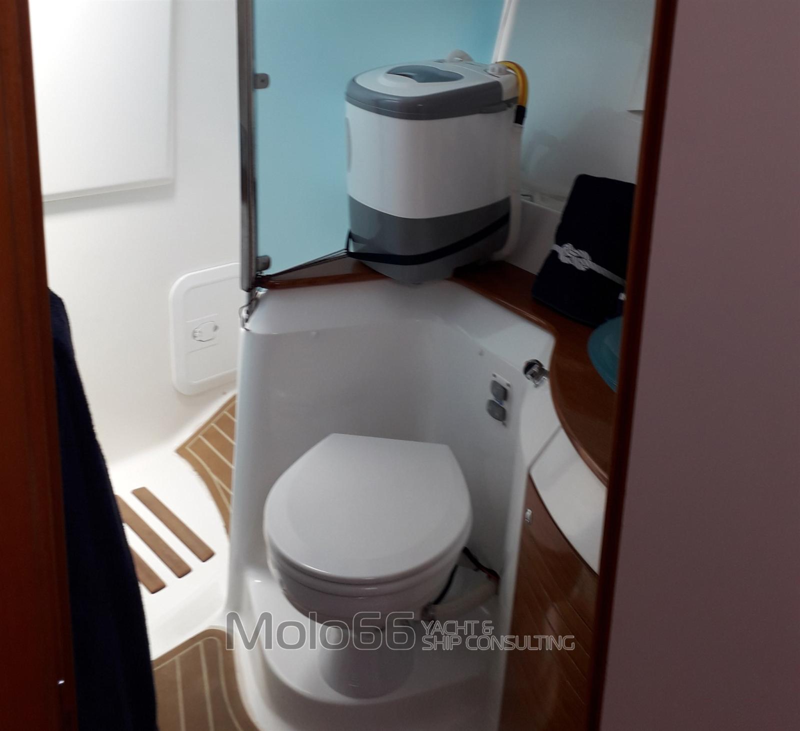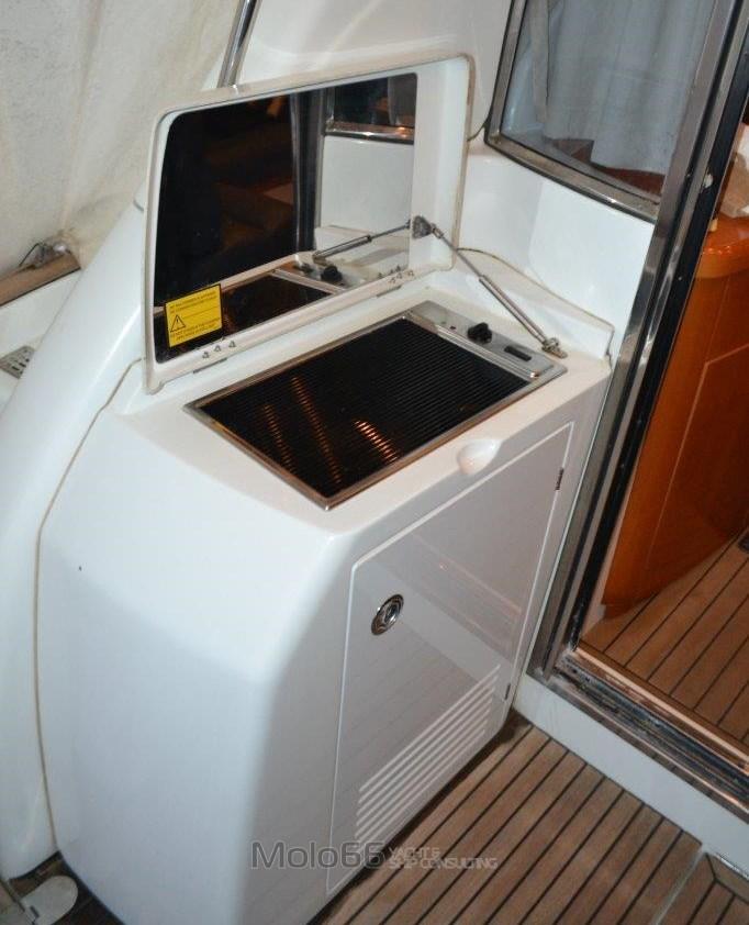 Alarme moteur, Alarme de pompe de cale, Eau sous pression, Couleur spéciale (Blu Navy), Douche de cockpit, Double barre à roue, Phare de poursuite, Flaps électriques, Extincteur(s) fixe(s), Indicateurs de flaps, Éclairage de courtoisie, Passerelle, Plateforme arrière, Pompe de cale automatique, Cockpit en teck, Prise de quai, Rollbar, Guindeau électrique, Echelle de bain, Corne, Winch électrique avant.