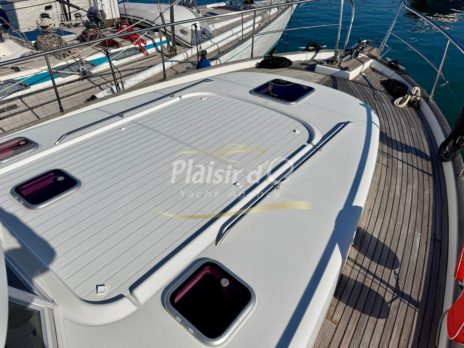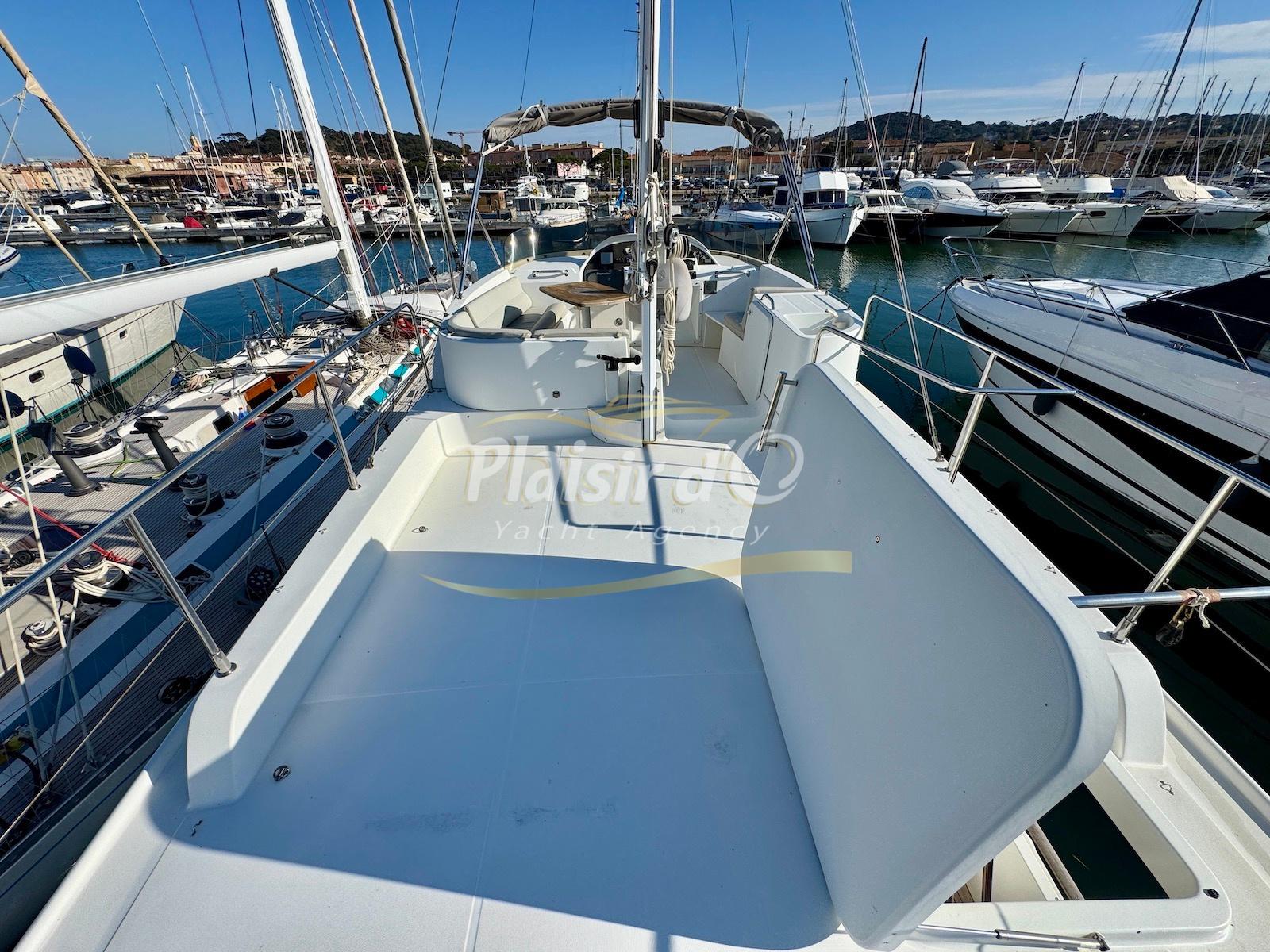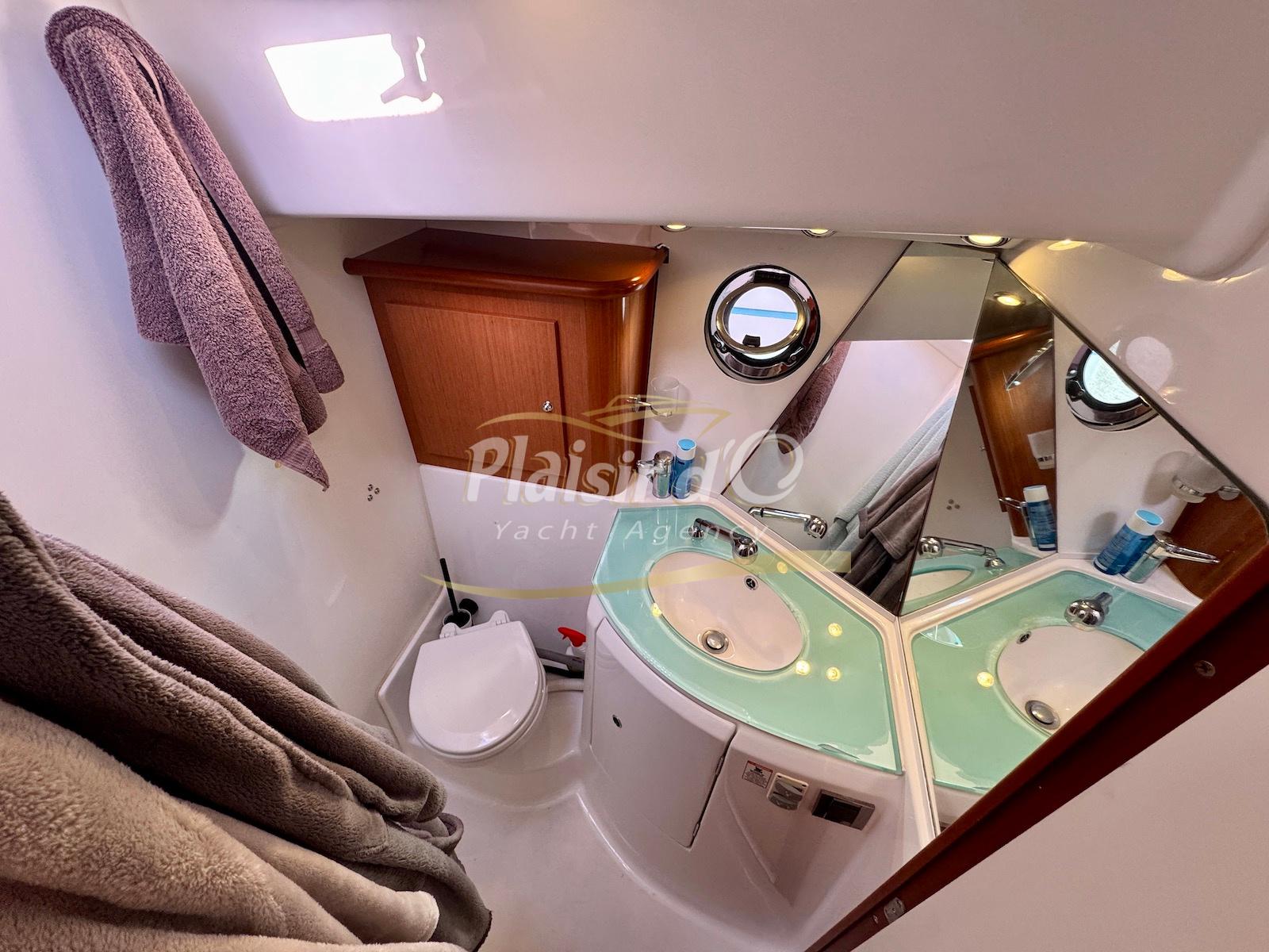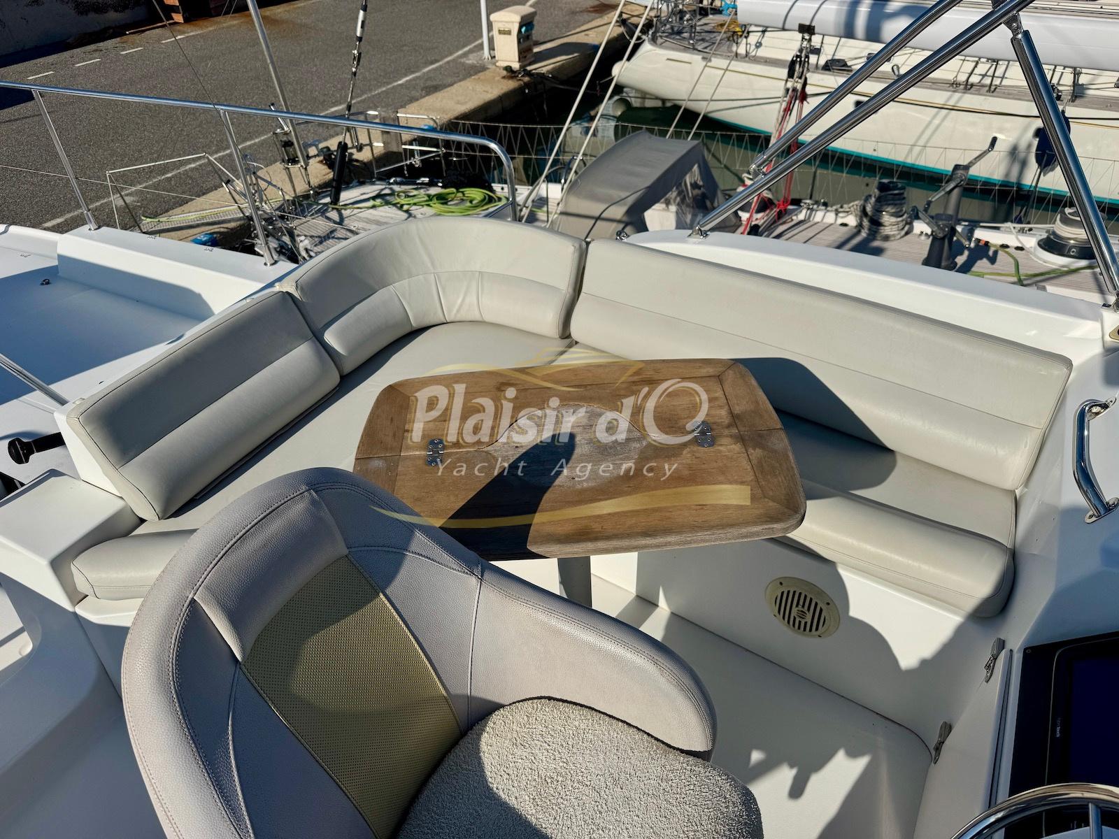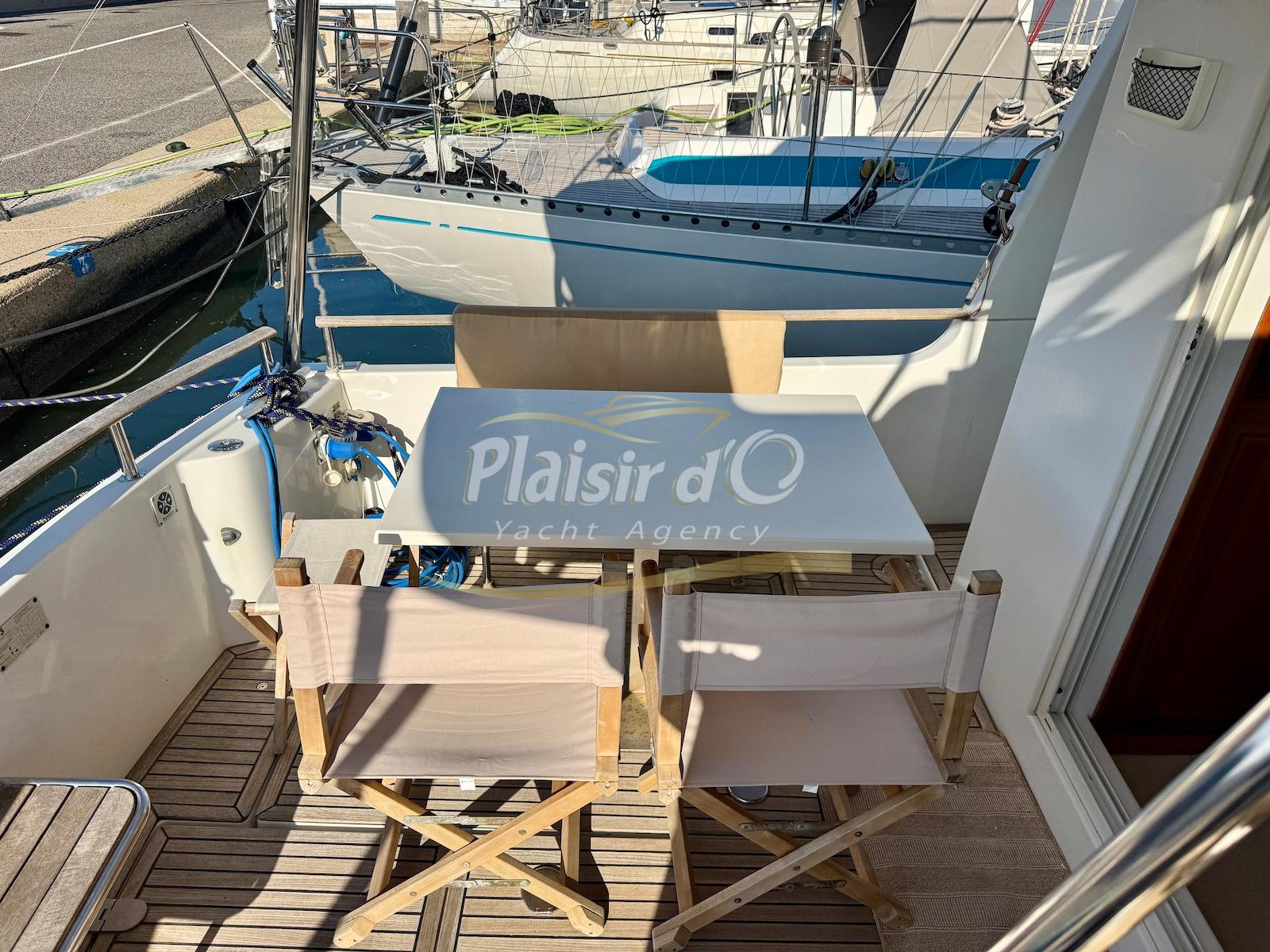 FULL OPTIONS : Climatisation réversible, générateur, passerelle hydraulique, pilote automatique, cockpit teck, GPS/sondeur Raymarine, propulseur d’étrave, VHF, TV, 2 réfrigérateurs, plateforme de bain allongée.
