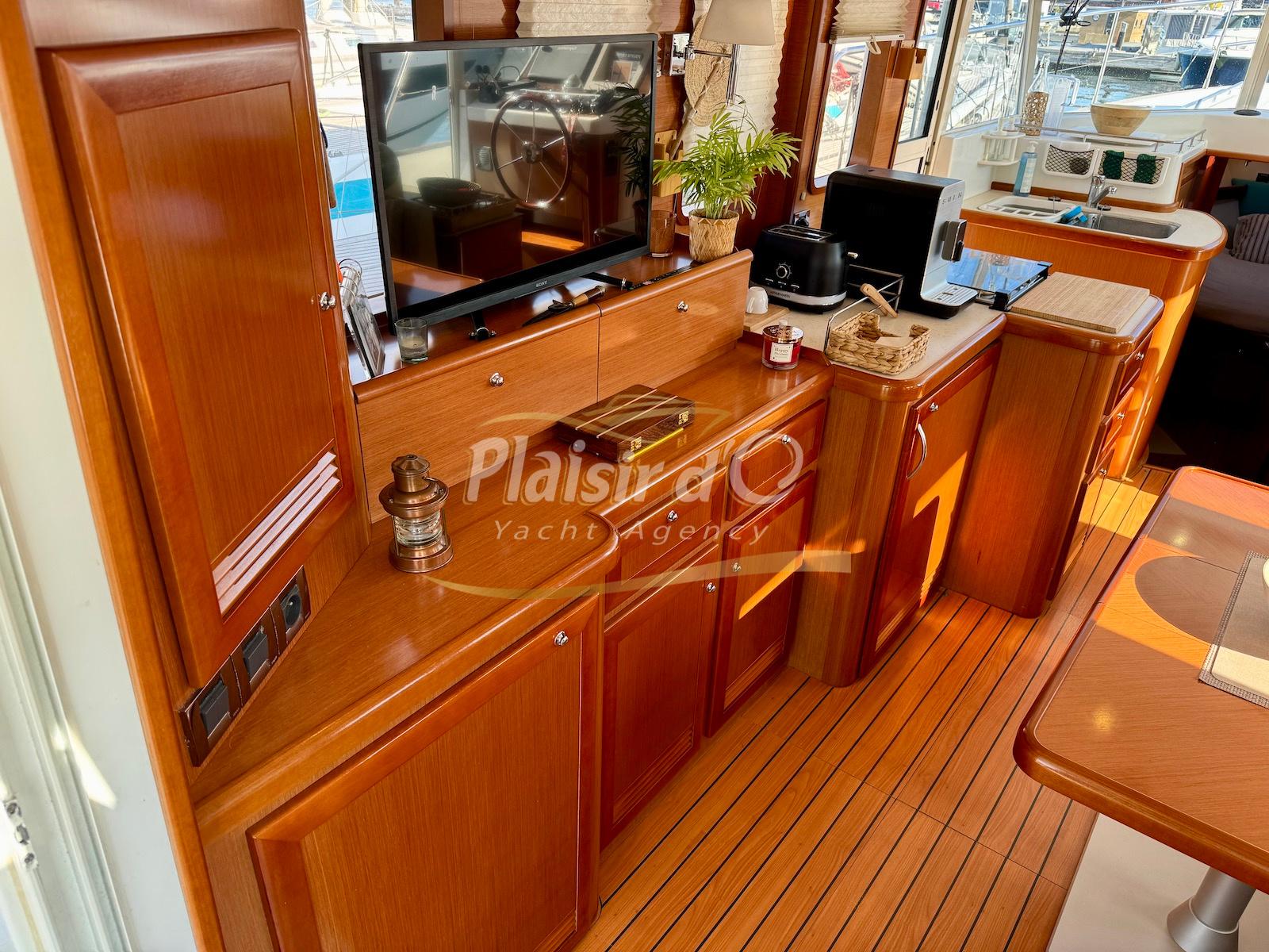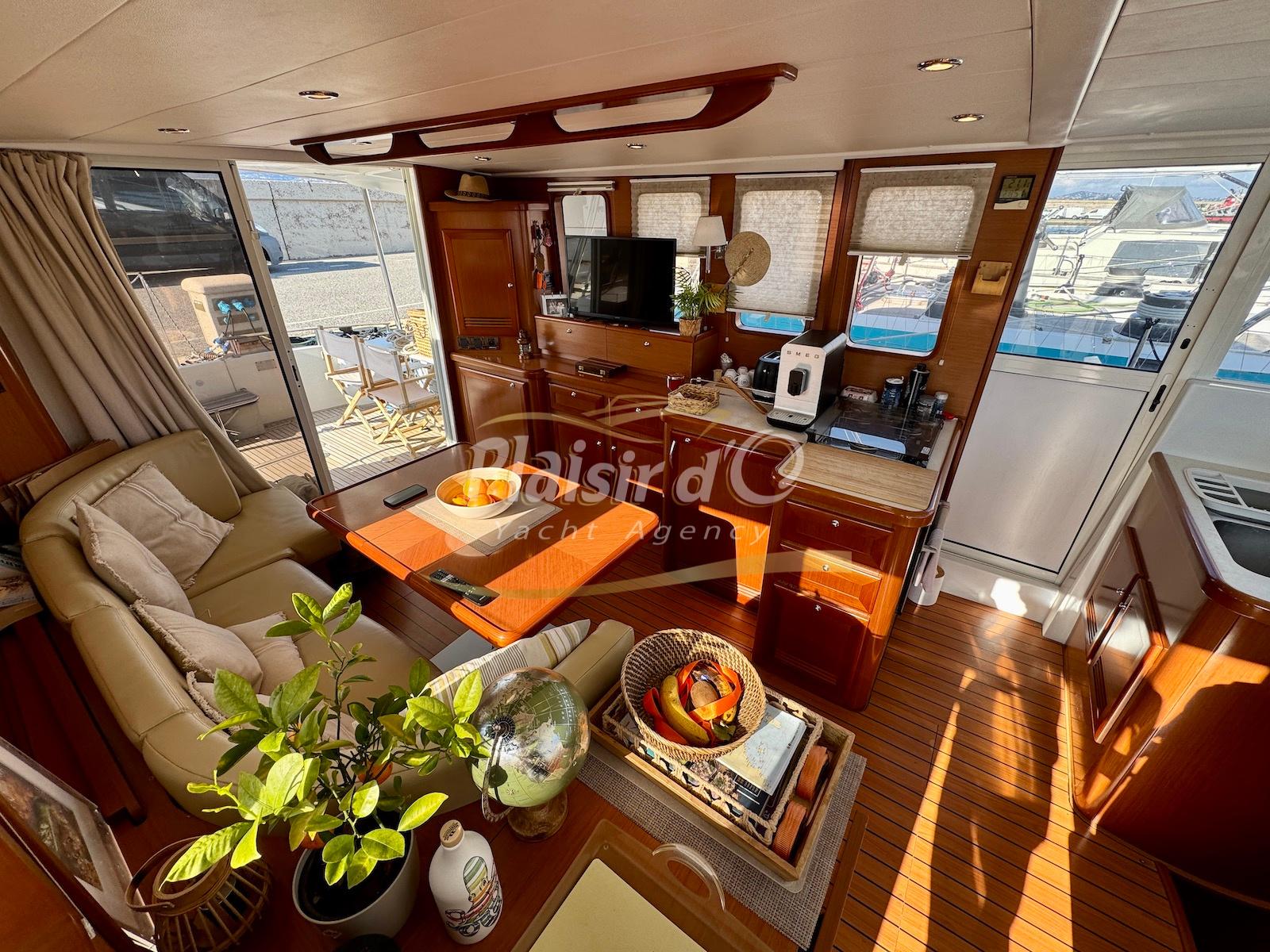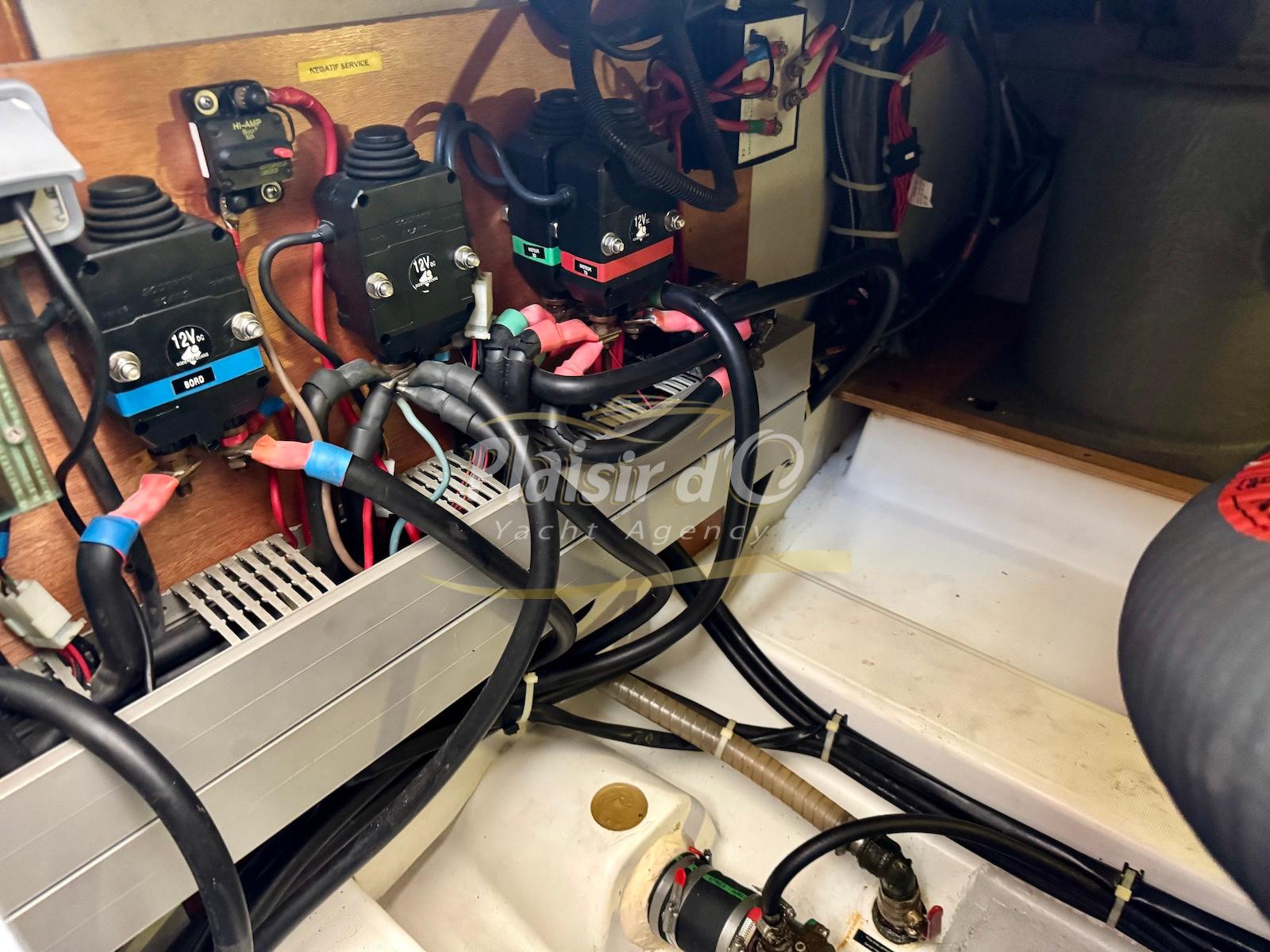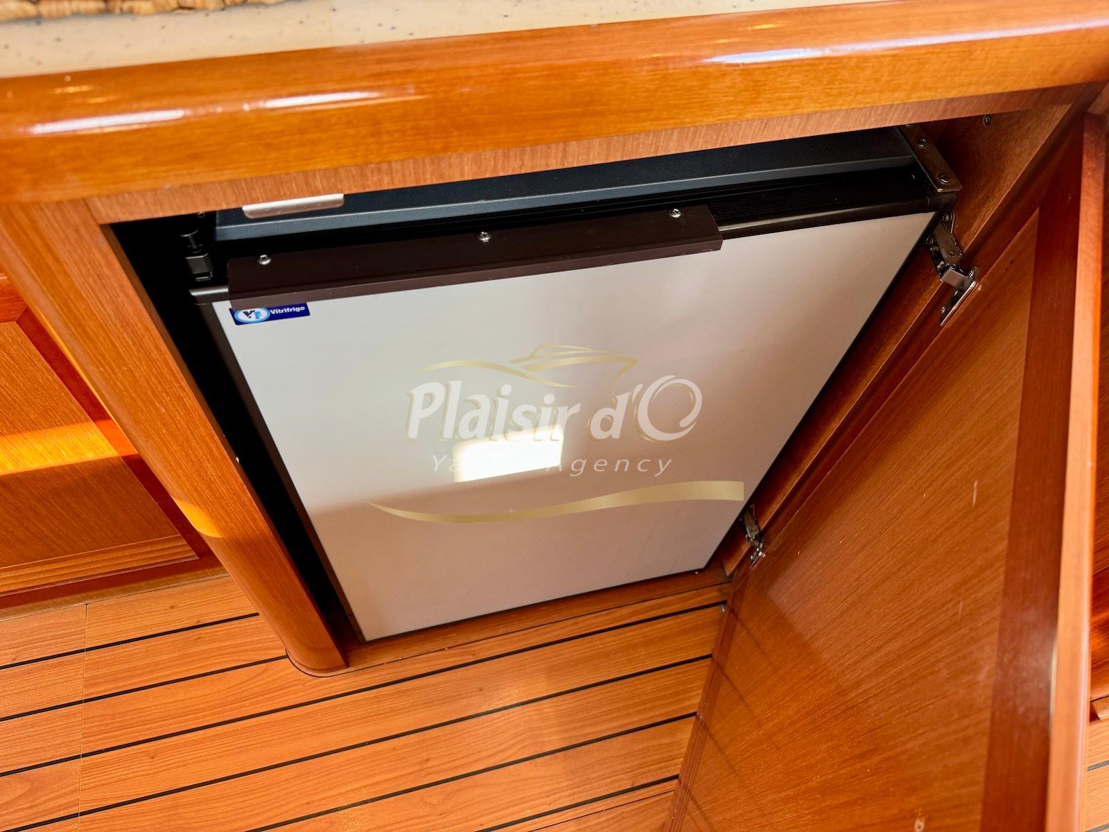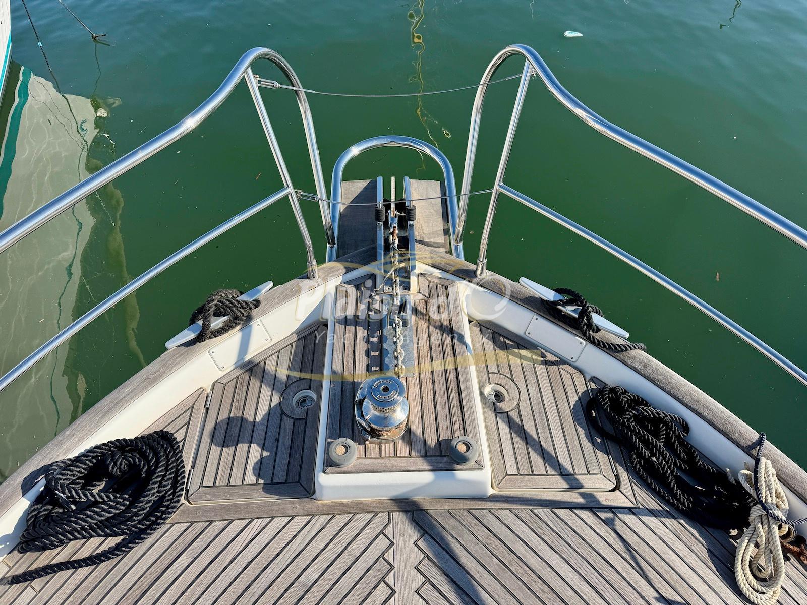 FULL OPTIONS : Climatisation réversible, générateur, passerelle hydraulique, pilote automatique, cockpit teck, GPS/sondeur Raymarine, propulseur d’étrave, VHF, TV, 2 réfrigérateurs, plateforme de bain allongée.