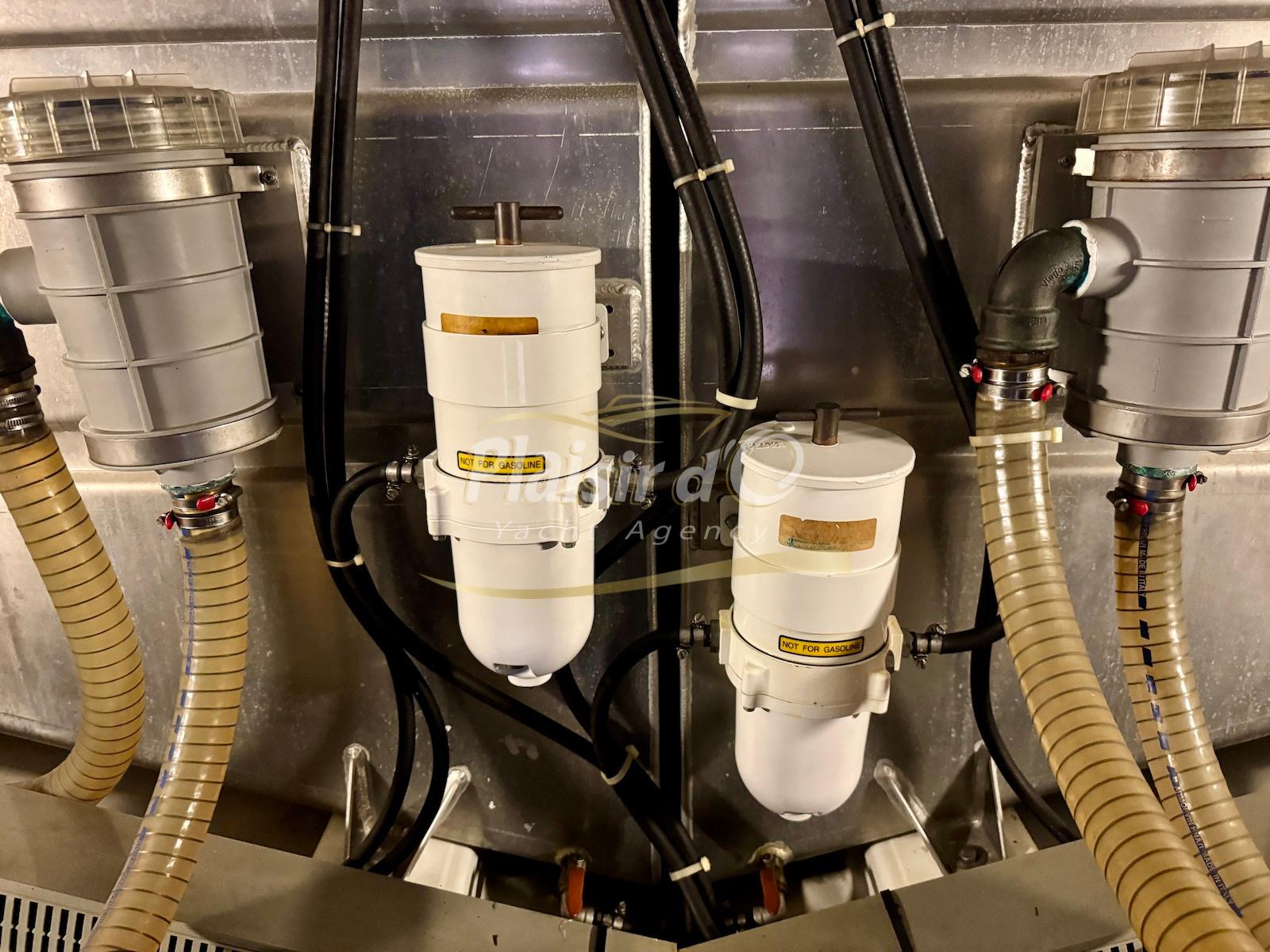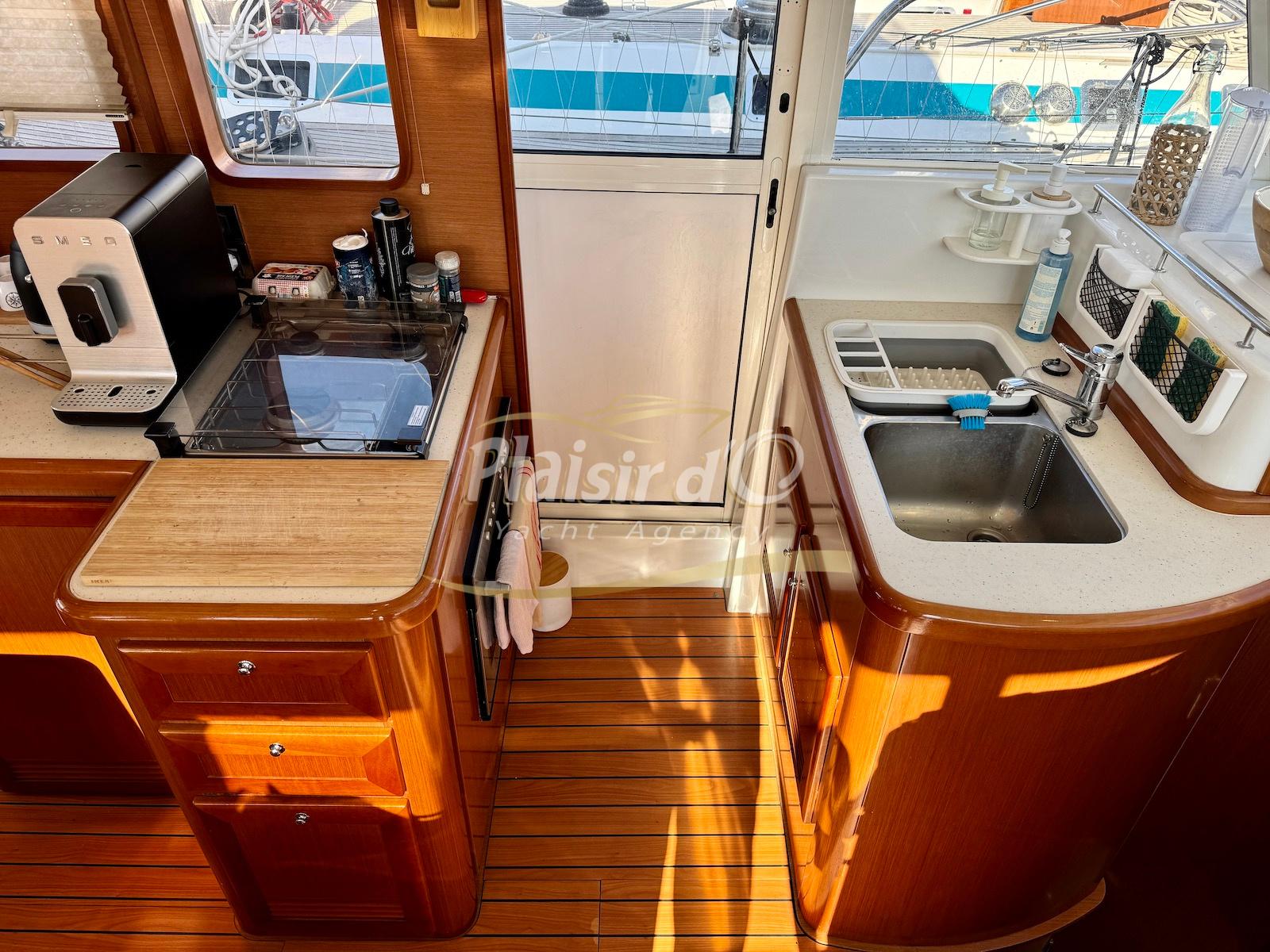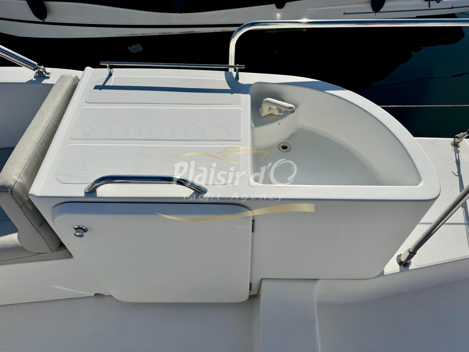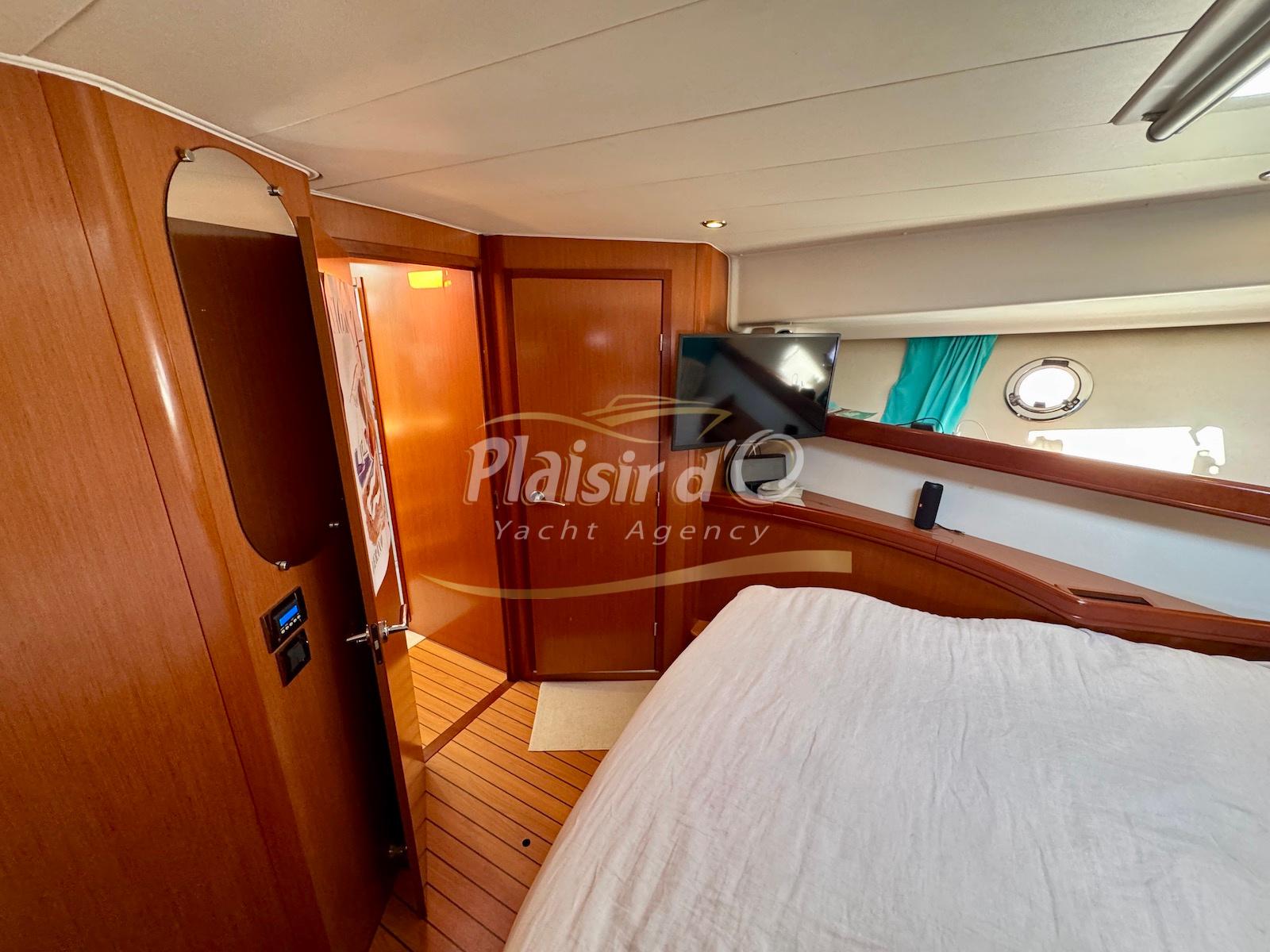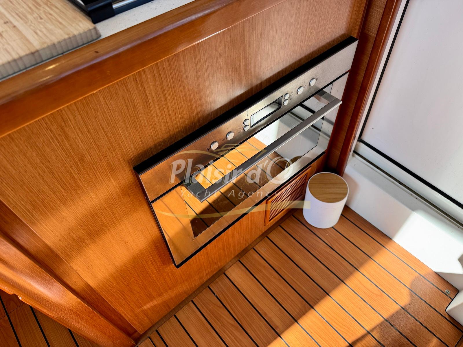 FULL OPTIONS : Climatisation réversible, générateur, passerelle hydraulique, pilote automatique, cockpit teck, GPS/sondeur Raymarine, propulseur d’étrave, VHF, TV, 2 réfrigérateurs, plateforme de bain allongée.