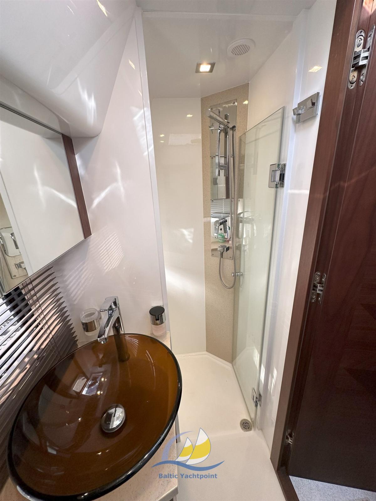 Alarme moteur, Alarme de pompe de cale, Ouverture du compartiment moteur électrique, Eau sous pression, Trim hydraulique, 8 Batteries, Passavant en teck, Douche de cockpit, Flaps électriques, Flaps hydrauliques, Garage à annexe, Hard top, Extincteur(s) fixe(s), Lavabo dans le cockpit, Éclairage de courtoisie, Plateforme arrière, Pompe de cale automatique, Pompe de cale manuelle, Porte latérale, Cockpit en teck, Prise de quai, Guindeau électrique, Echelle de bain, table de cockpit, Corne.