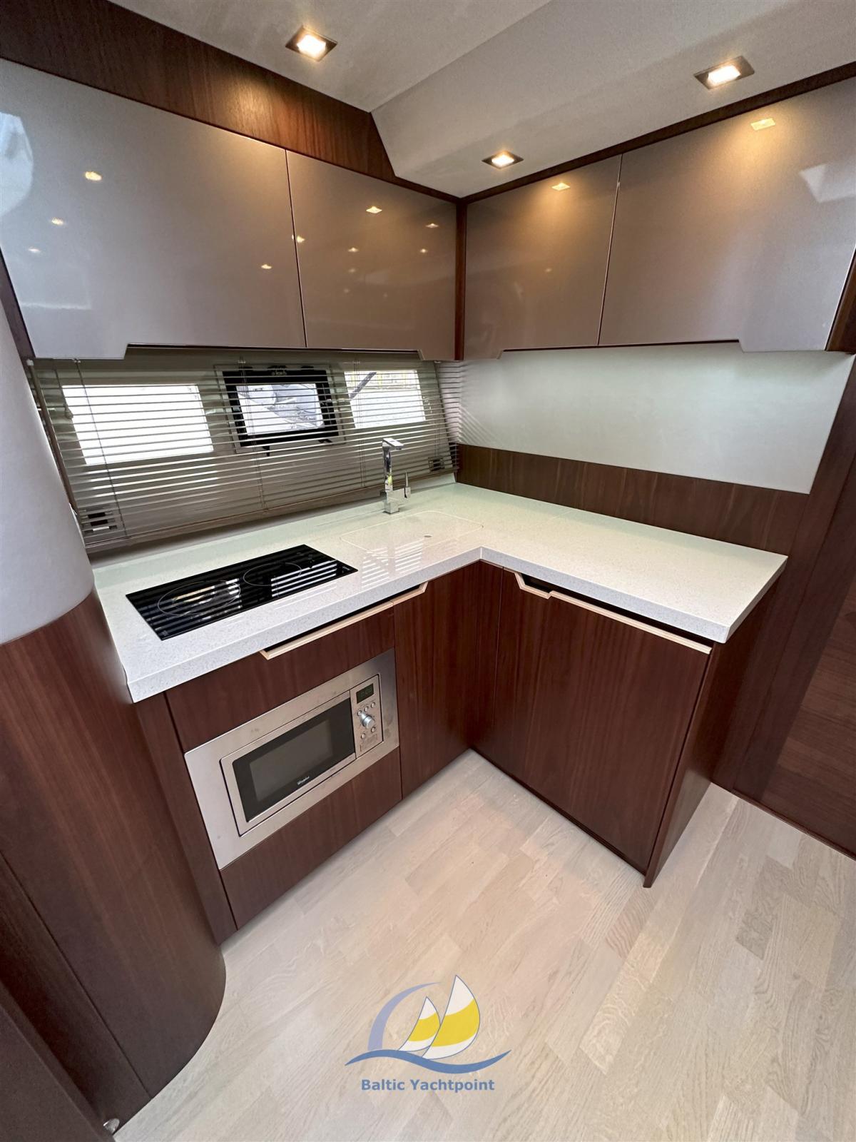 L’intérieur du Galeon 445 HTS respire le luxe à tous égards. Les cabines généreusement conçues offrent une atmosphère exclusive avec des matériaux nobles et des équipements de haute qualité. L’élégant salon et la salle de bains moderne créent un espace de détente harmonieux. La cuisine entièrement équipée assure le plus haut niveau de confort, de sorte que même les séjours les plus longs à bord peuvent être appréciés dans une ambiance luxueuse.