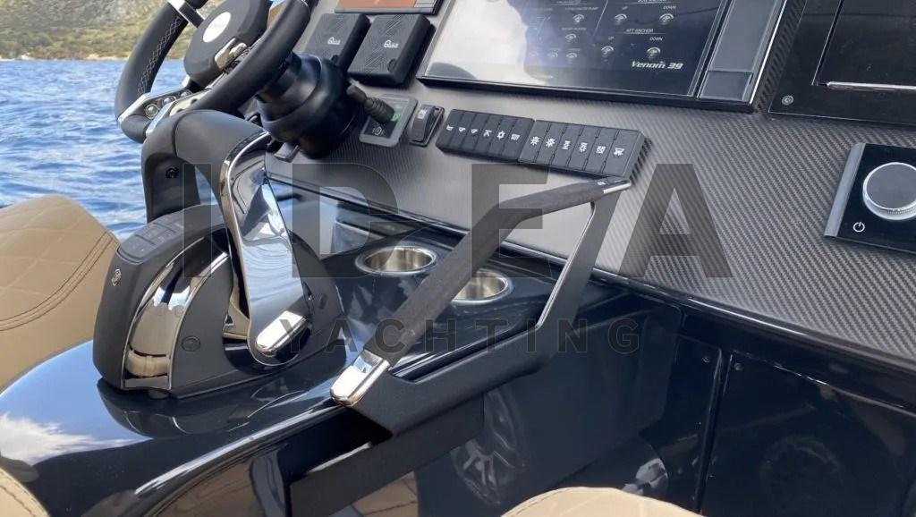 De plus, comme pour tous les modèles Venom, la Venom 39 présente un T-Top entièrement fabriqué en fibre de carbone, un véritable chef-d’œuvre d’ingénierie dont nous sommes extrêmement fiers. Cette caractéristique innovante améliore non seulement la rigidité par rapport à l’acier inoxydable traditionnel, mais réduit également le poids du récipient de plus de 100 kilogrammes, abaissant efficacement son centre de gravité et optimisant les performances.
