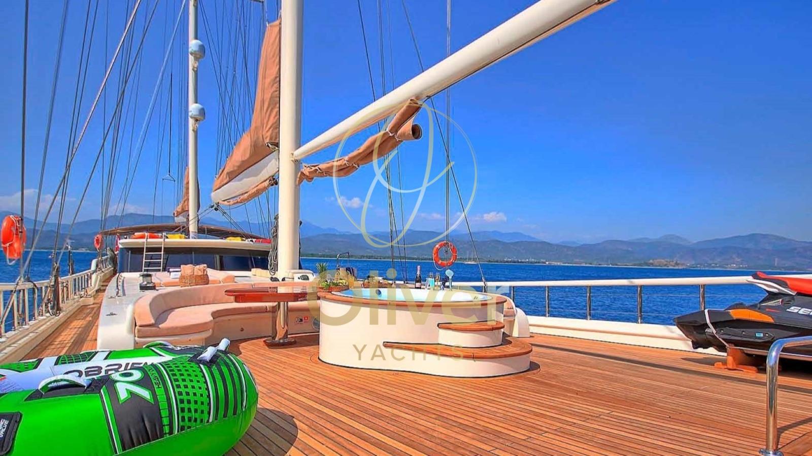 Propulsée par deux moteurs Volvo de 600 CV et équipée d’un système de voile complet, cette goélette offre une expérience de navigation douce et fiable. L’attention portée aux détails et la qualité de construction en font un choix idéal pour ceux qui recherchent un bateau exclusif, parfait pour les longues traversées et les moments de pur luxe en mer. Pour les amateurs de sports nautiques, la goélette propose une variété d’équipements : Canoë Simple, Stand Up Paddle, Wakeboard, Matériel de pêche.