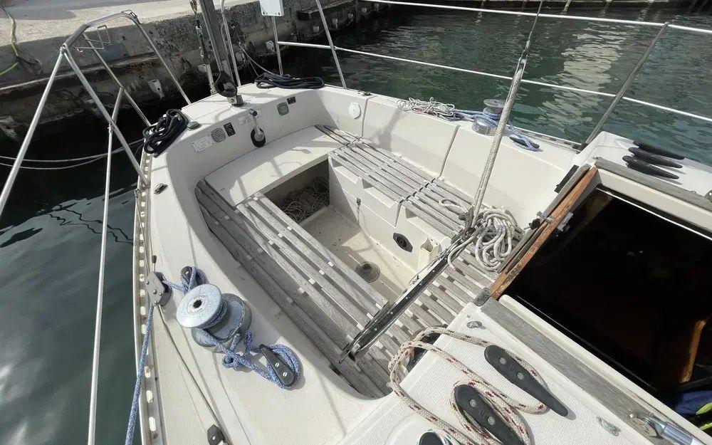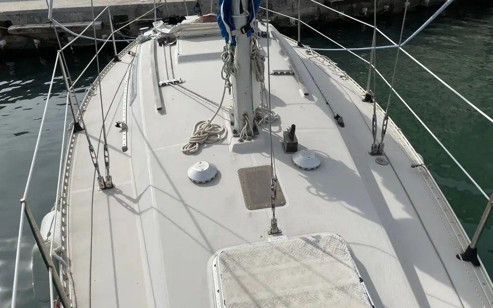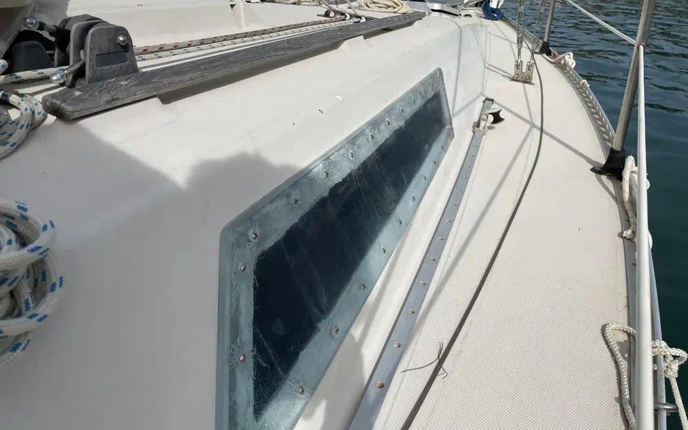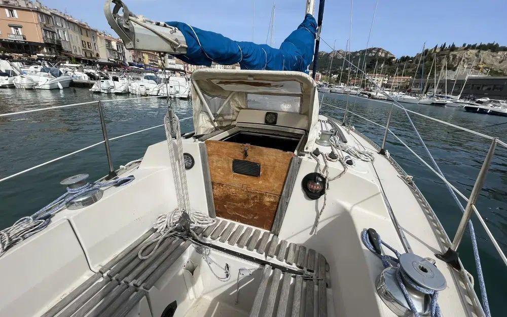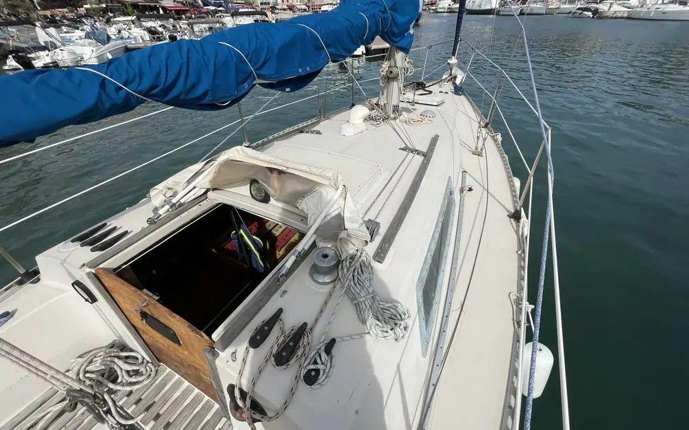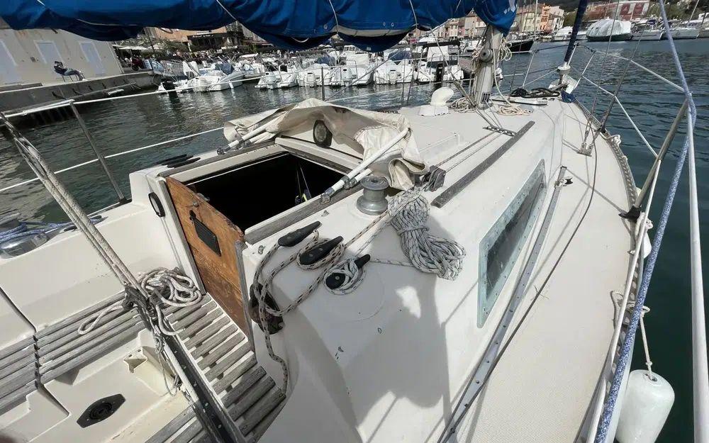 Ce voilier a été très bien entretenu, gréement révisé, etai et enrouleur changé en 2022 équipé d'une mini capote de descente à révisé sinon il reste en bon état, il montre malgré tous des signes de vieillesse, inévitablement pour un voilier de 1979 avec quelques marques mineures sur le pont de gelcoat, mais reste parfaitement en état de présentation et de navigation.