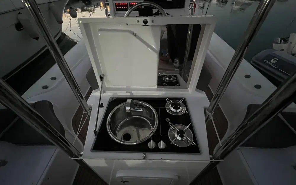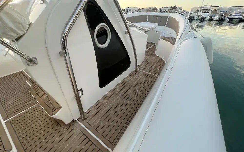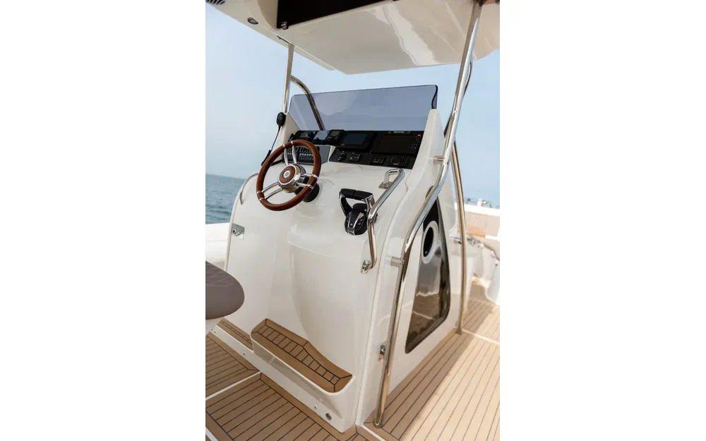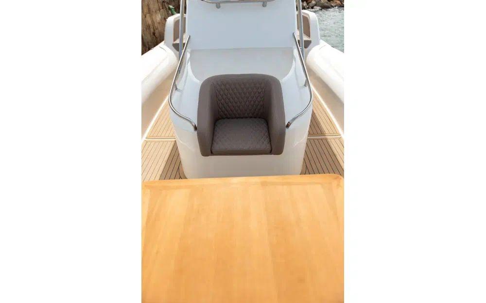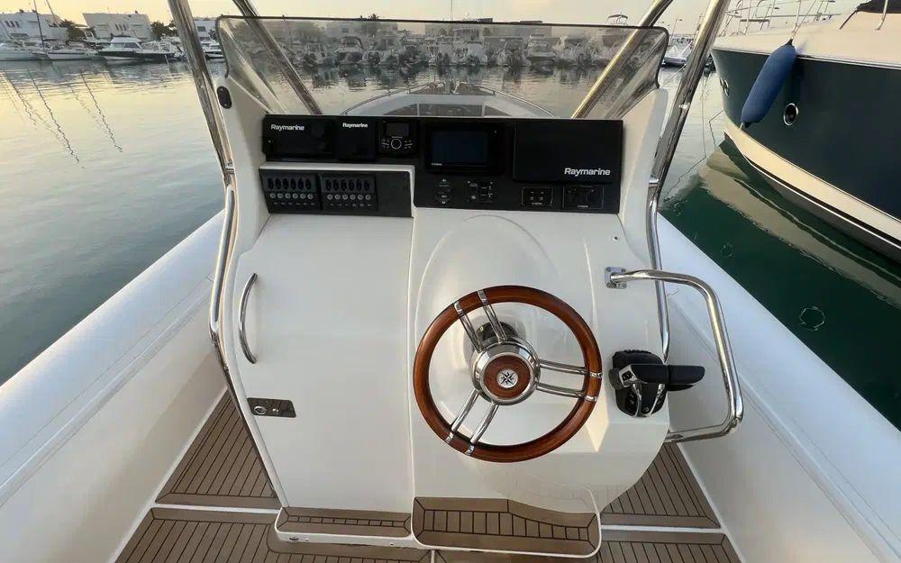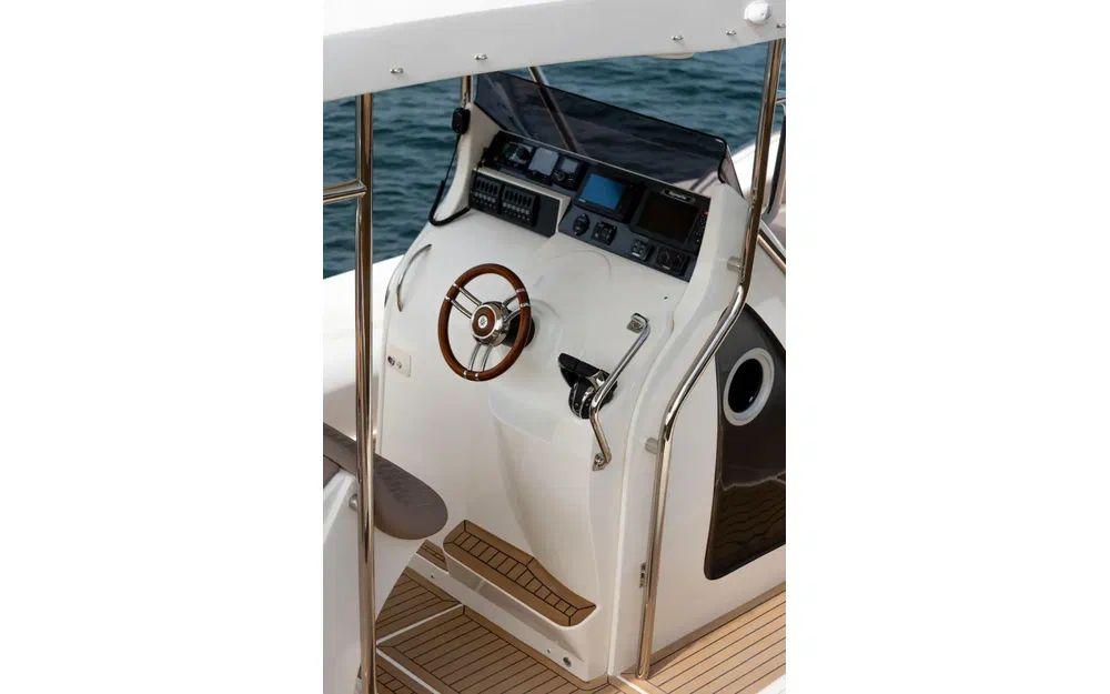 Le déjaugeage est rapide (moins de 5 secondes), la vitesse de pointe frise avec les 45 noeuds avec une bi-motorisation de 2x250cv. Ce comportement nerveux et sportif ne se fait pas au détriment des passagers puisque la carène en V profond conjuguée aux flotteurs permet de traverser les vagues en douceur et en parfait équilibre.