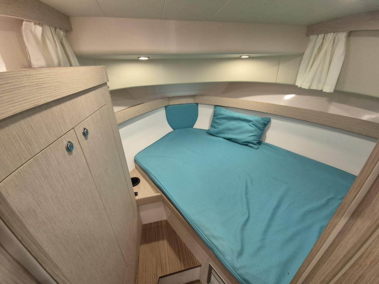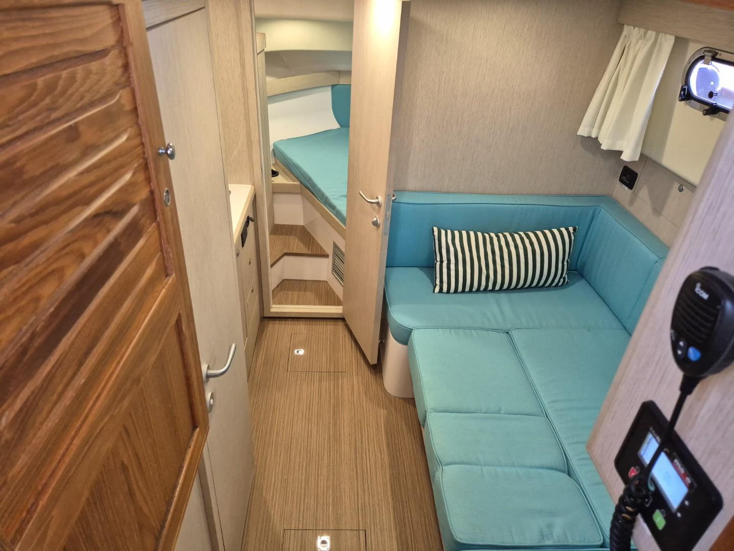Il dispose d’une belle cabine avant, d’un carré convertible et d’une cuisine intérieure fonctionnelle, le tout dans une ambiance chaleureuse et soignée.