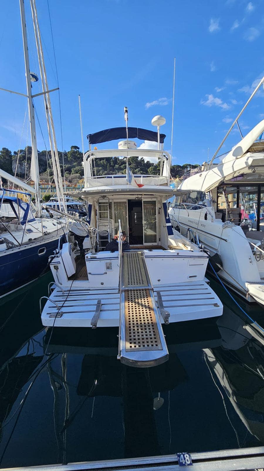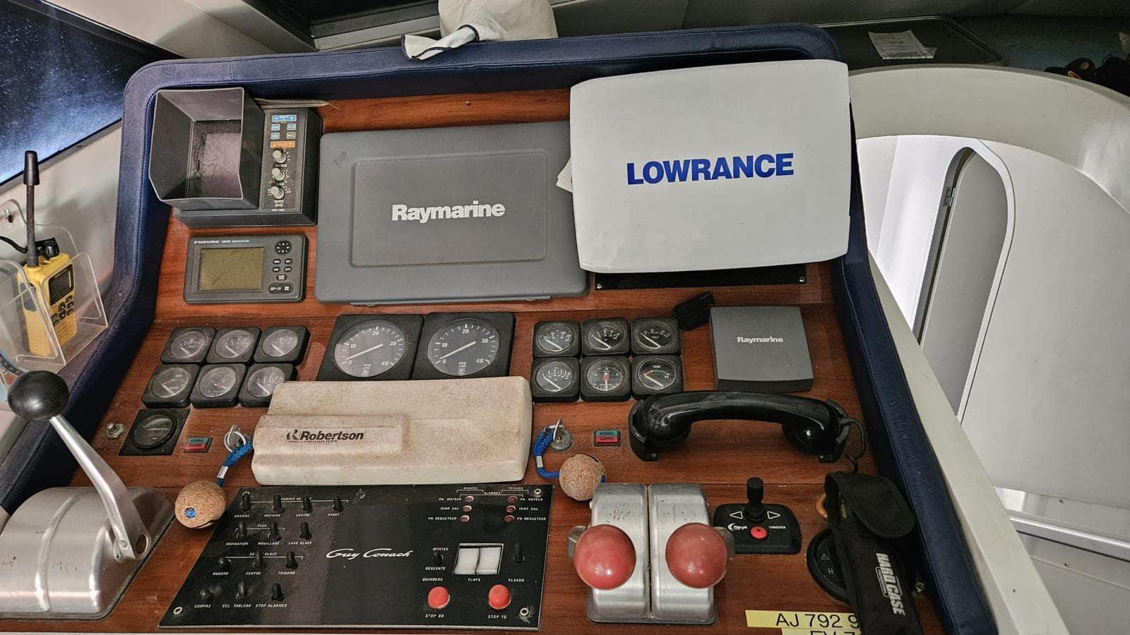 Equipé d'un dessalinisateur, générateur KOHLER, passerelle hydraulique, plateforme arrière, compresseur pour gonflage de bouteilles, taud de soleil, sondeur, traceur de route, cuisine tout équipée...