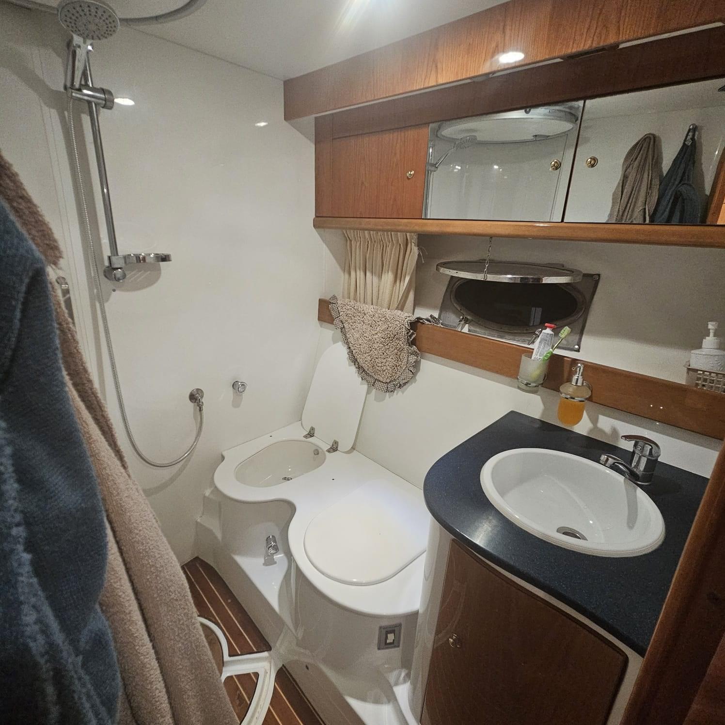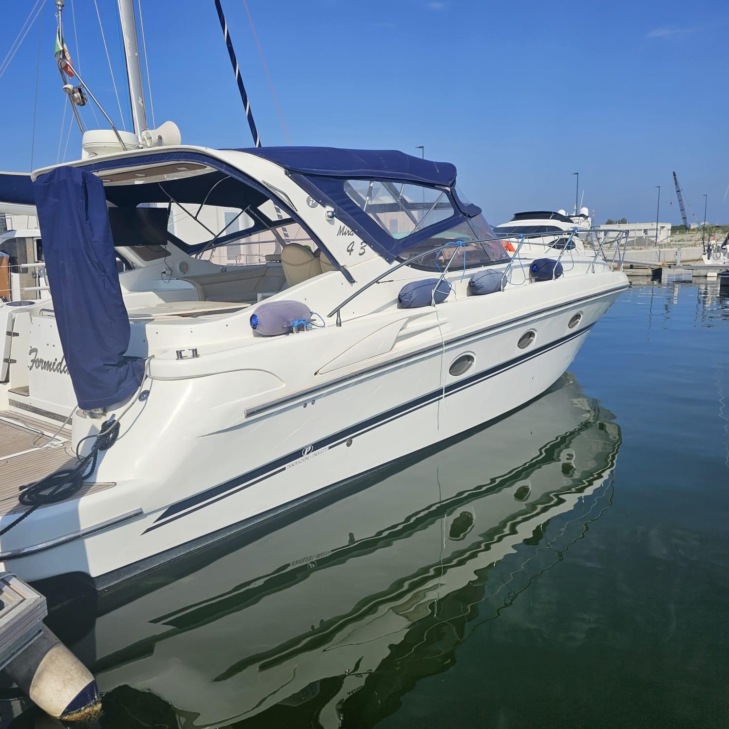 Mira 43 de 2005 avec deux Volvo Penta d6 de 350cv cn environ 670 heures de mouvement. GPS, GÉNÉRATEUR 3,5 KW, CLIMATISATION WEBASTO COCKPIT, RADAR, ECO, PASSERELLE HYDRAULIQUE, DÉTECTEURS DE VOLETS AVEC CONTRÔLE DU SYSTÈME TV + 2 COUSSINS TV COPPATTINA NEW 2022 COMME NOUVEAU LUMIÈRES DE COCKPIT 2022 LUMIÈRES SOUS-MARINES Cabine double principale avec salle de bain, deux cabines invités une double et une deux lits au sol, salle de bain avec douche et bidet. Dinette avec cuisine équipée. Pont en teck. Disponibilité des vidéos.