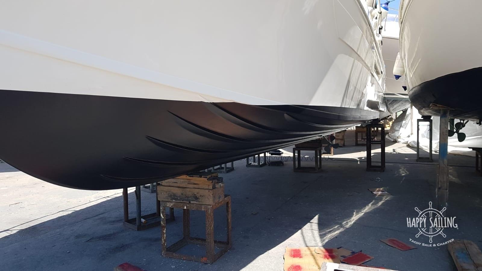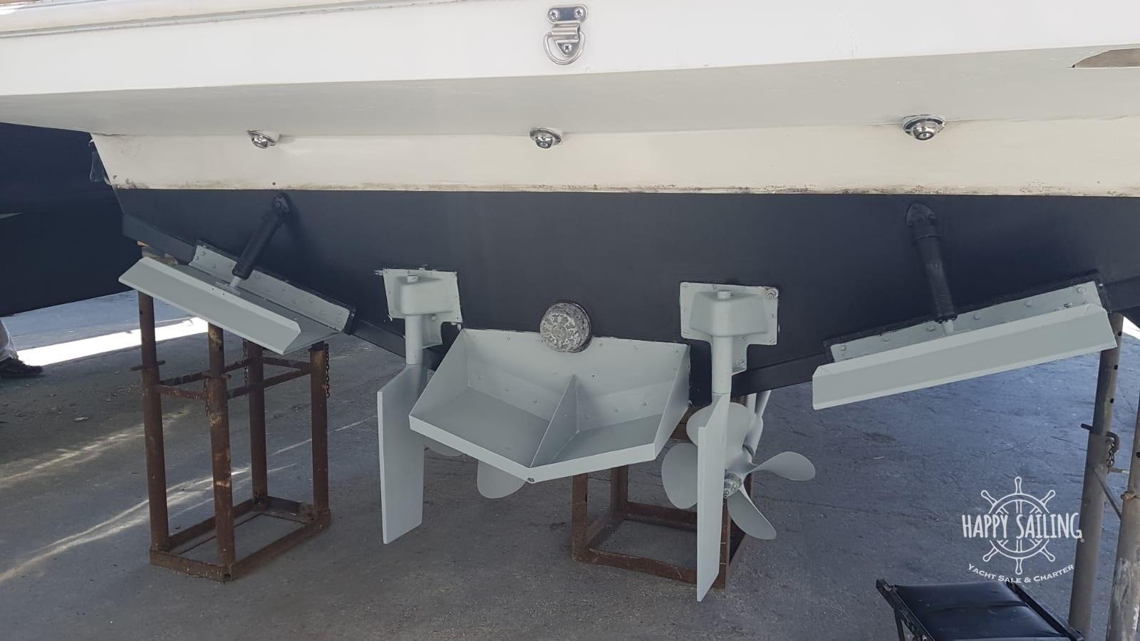 Eau sous pression, Chargeur de batterie (Elettrico), Douche de cockpit, Flaps hydrauliques, Bossoirs, Plateforme arrière, Onduleur, Guindeau électrique, Echelle de bain.