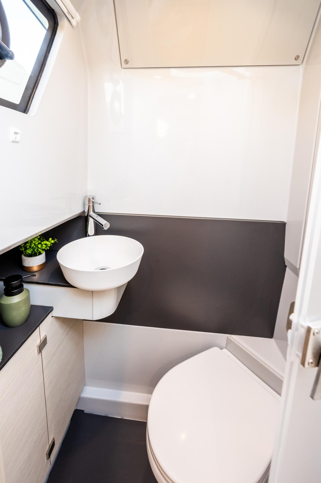 Le YOT 36 dispose de deux cabines avec douches et toilettes privatives, offrant un confort ultime pour vos séjours en mer. Il bénéficie également d’une autonomie en carburant et en eau douce pour des navigations prolongées.