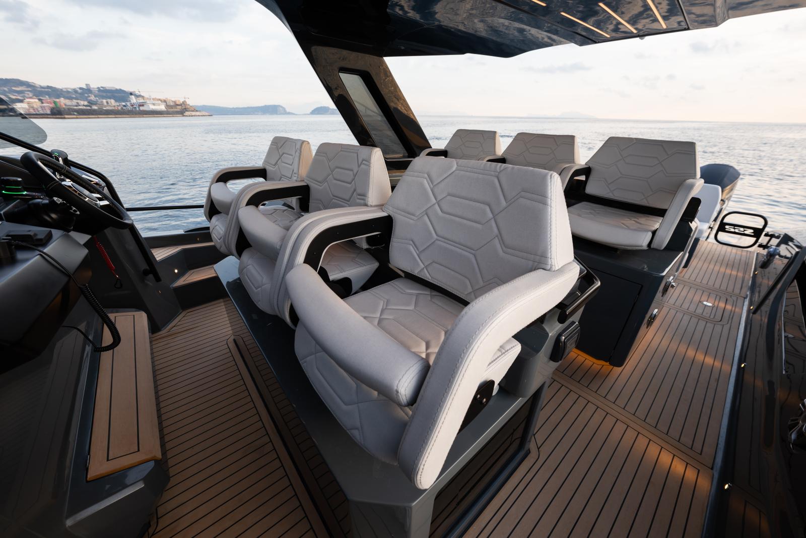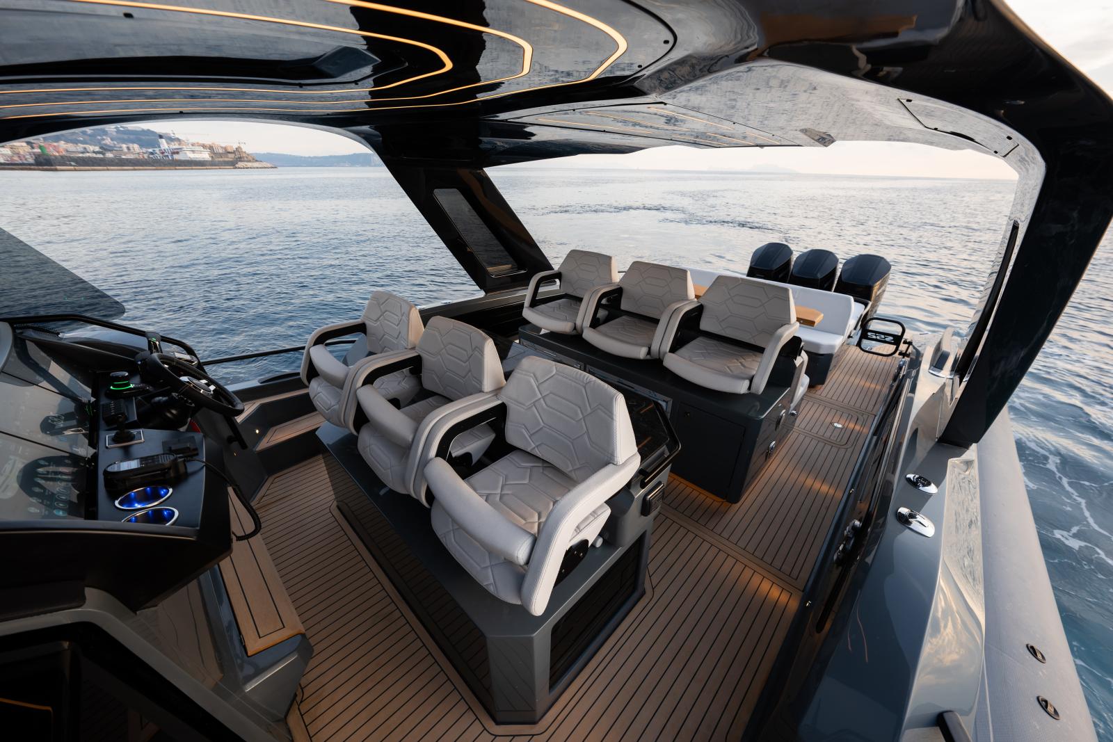 Motorisation : Equipé de moteurs hors-bord ou in-bord, selon les configurations, avec une puissance totale allant jusqu'à 1200 chevaux, offrant des performances marines de premier ordre.
