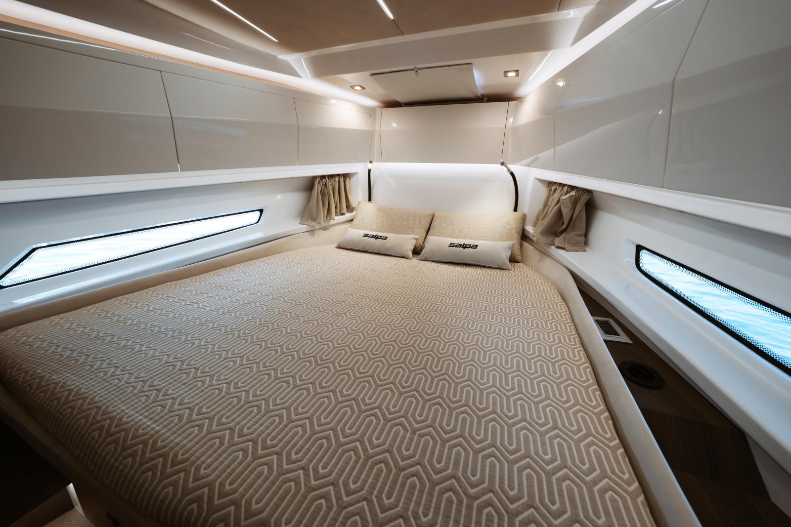 Le Salpa Soleil 52 est un bateau de luxe semi-rigide, conçu pour offrir une expérience de navigation inégalée. Avec sa motorisation puissante allant jusqu’à 1200 chevaux, sa coque en fibre de verre renforcée et ses flotteurs en Hypalon, il offre des performances exceptionnelles, tout en garantissant un confort optimal à bord. Que ce soit pour des croisières côtières, des sorties entre amis ou des événements privés, le Salpa Soleil 52 combine puissance, style et technologie de pointe pour une expérience en mer hors du commun.