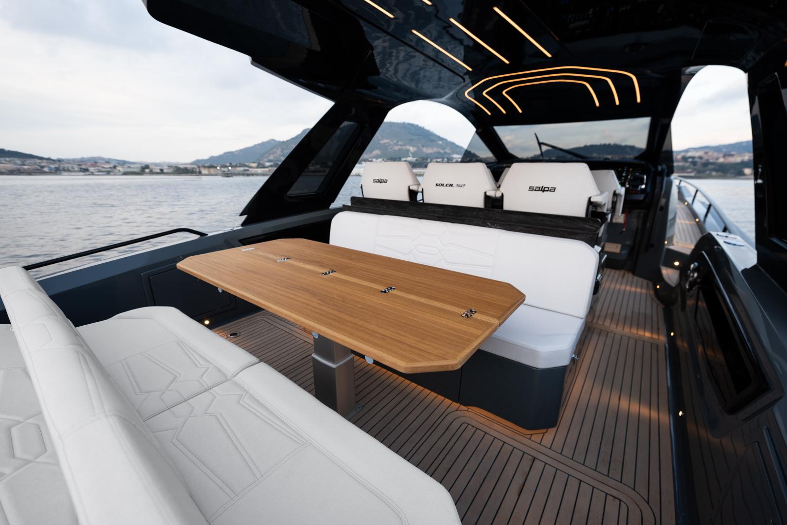 Cockpit arrière aménagé : Equipé de sièges modulables et d'une table escamotable pour des repas conviviaux en plein air.