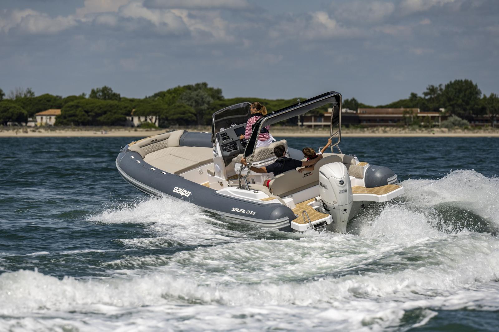 Le Salpa Soleil 24.5 est un bateau semi-rigide alliant performances marines et confort exceptionnel, conçu pour les passionnés de navigation côtière et les amateurs de sports nautiques. Avec son design moderne et ses équipements haut de gamme, il est l’option idéale pour des sorties en mer, des croisières côtières, ou des moments conviviaux en famille ou entre amis.