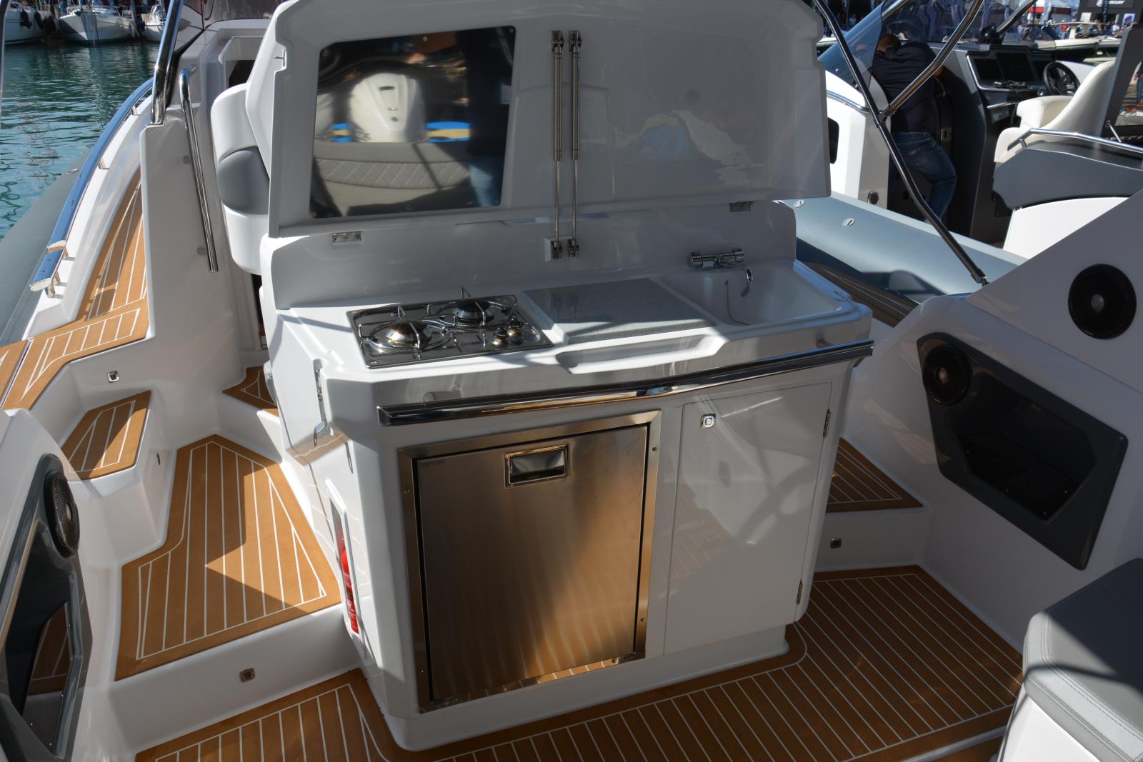 Motorisation : Équipé de moteurs hors-bord ou in-bord selon les configurations, avec une puissance totale pouvant atteindre jusqu’à 1200 chevaux, offrant des performances marines impressionnantes.