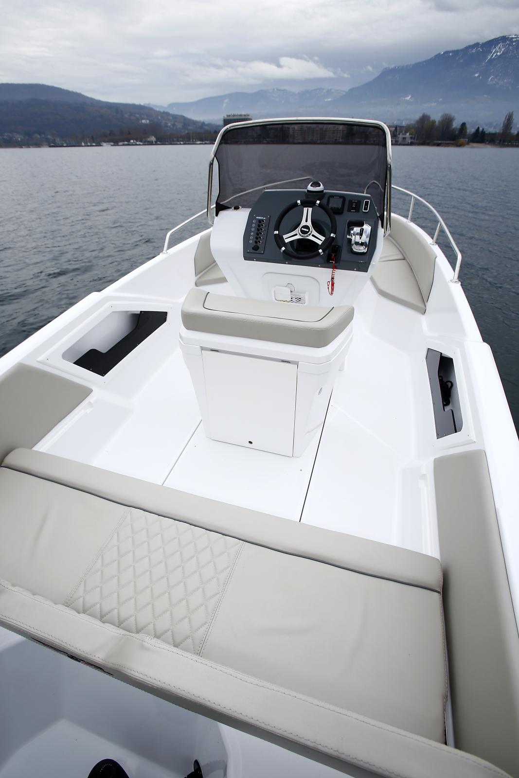 Motorisation : Moteur hors-bord puissant, offrant des performances sportives et une conduite fluide.