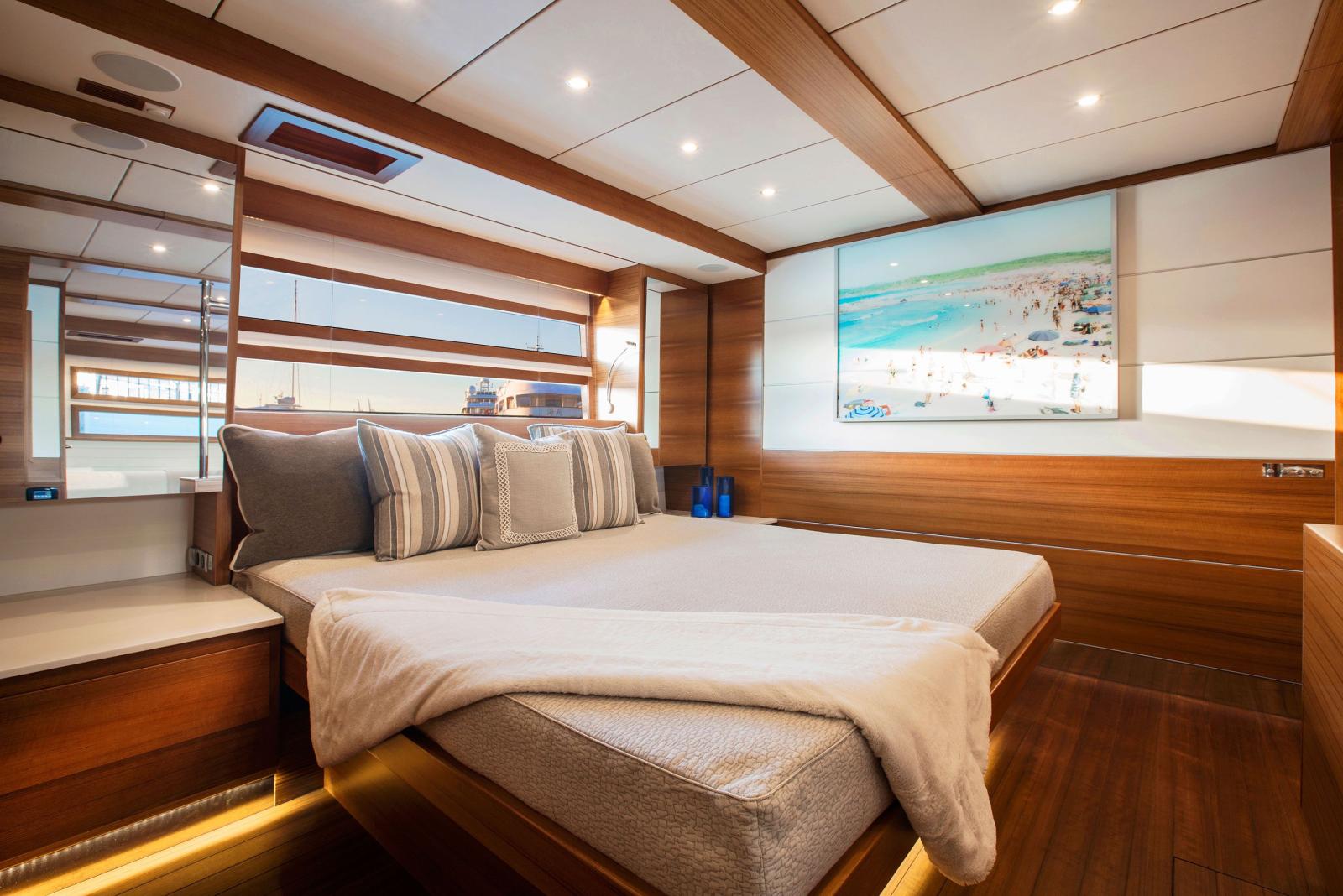La suite parentale est spacieuse et occupe toute la largeur du yacht, offrant des rangements généreux et une vue imprenable sur l'extérieur. Chaque cabine est équipée d'une salle de bains privative, tandis que les quartiers d'équipage peuvent accueillir jusqu'à quatre membres d'équipage pour assurer un service haut de gamme pendant toute la durée du séjour à bord.