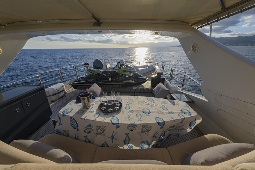 Navetta 24 de 2004 salon avec table à manger, cabine propriétaire sur le pont principal. Deux cabines doubles sur le pont, deux autres cabines avec deux lits au sol, chaque cabine avec sa propre salle de bain. cuisine. Fly avec table à manger. Cockpit avec canapé et table à manger. Stabilisateurs. VENTE EXCLUSIVE