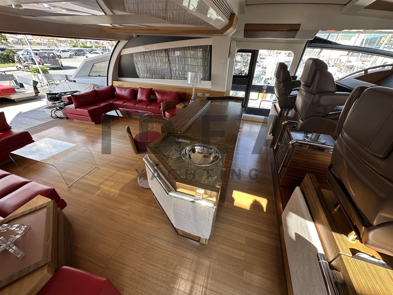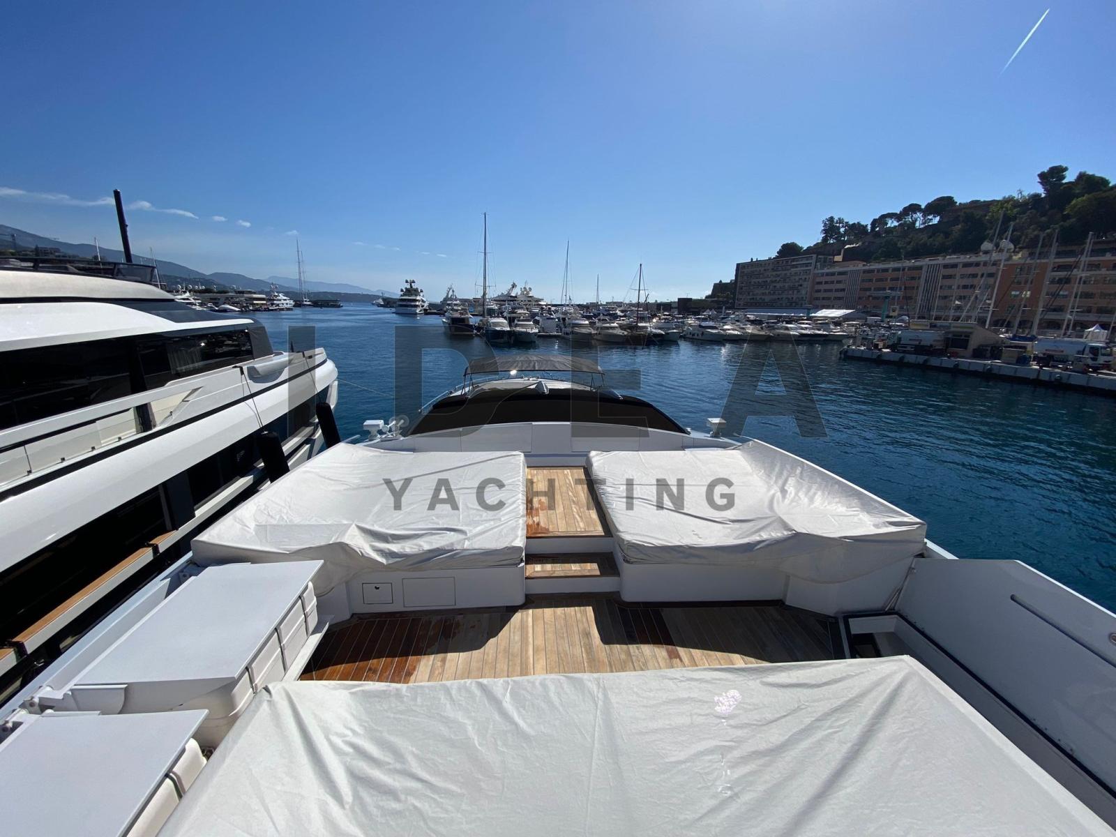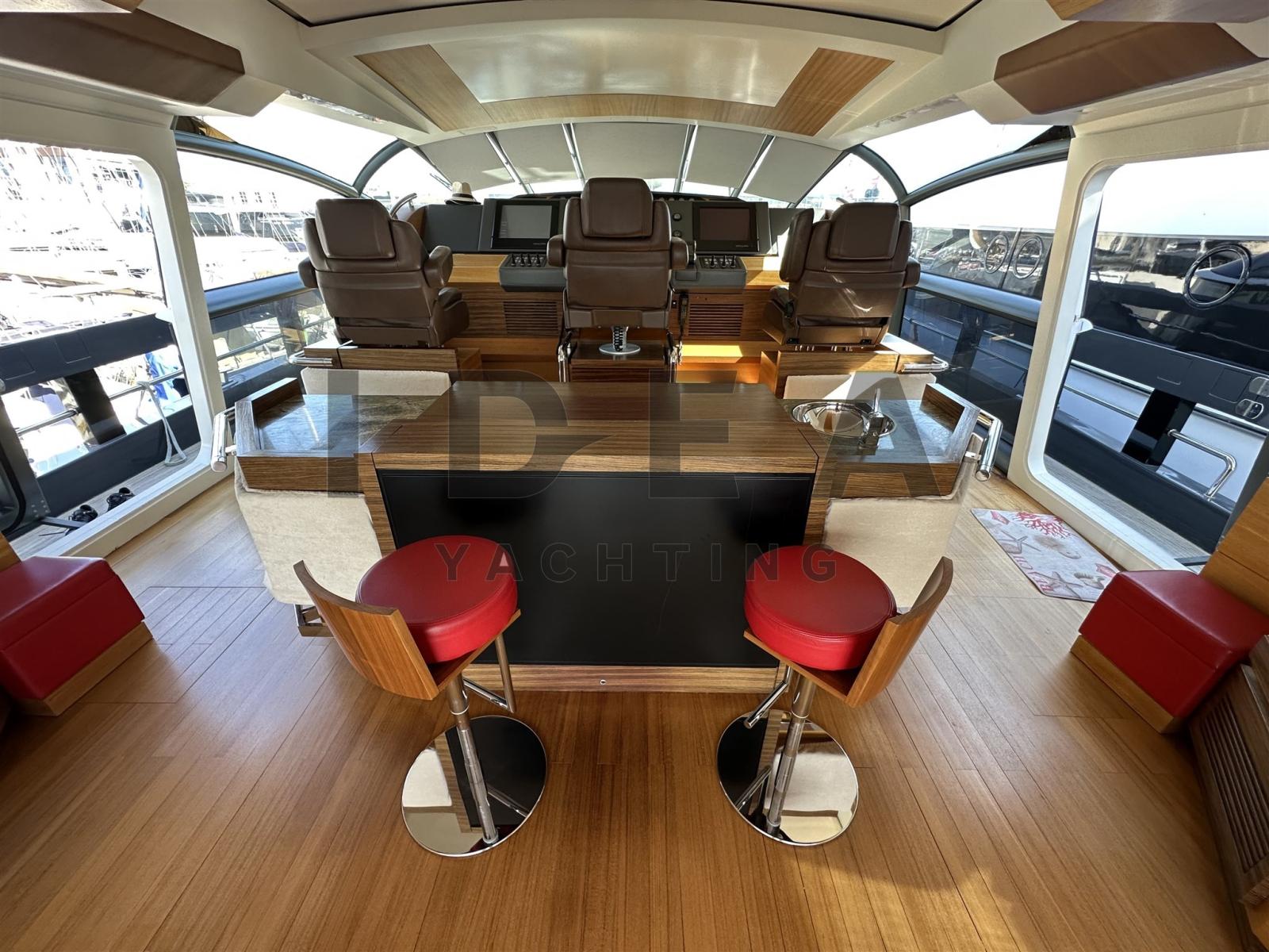 En correspondance avec les cabines jumelles et la cabine VIP, il y a un très grand solarium et un canapé en forme de C capable d’accueillir tous les invités à bord.