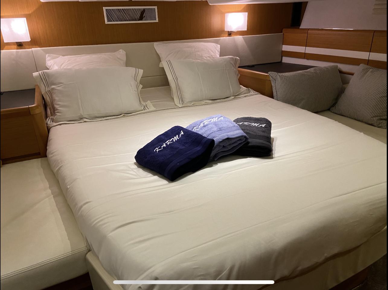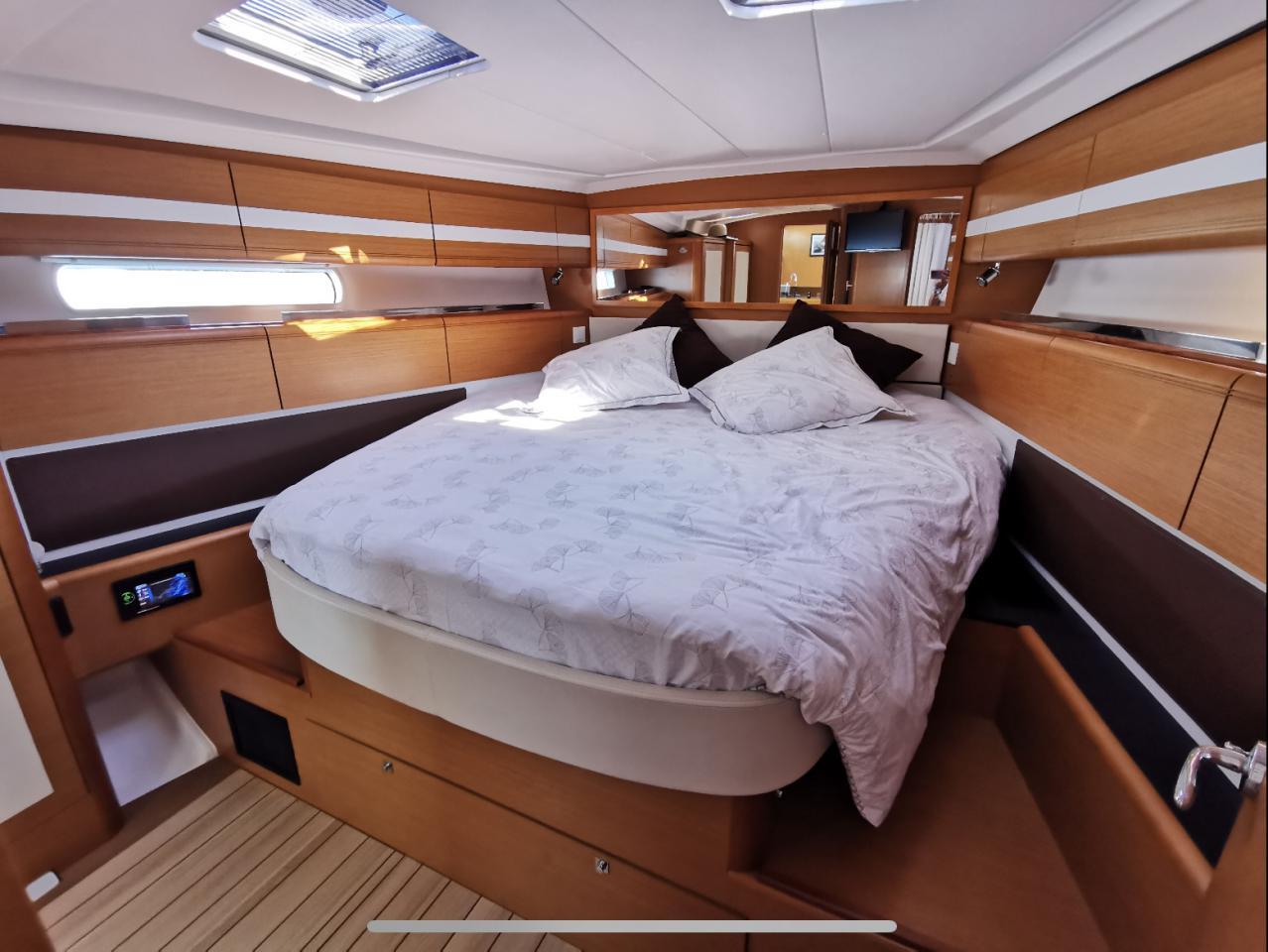 Ce bateau n’a jamais été loué et a toujours été entretenu avec soin. Sa configuration deux cabines + skipper est idéale pour un couple naviguant avec équipage ou pour une croisière haut de gamme en petit comité.