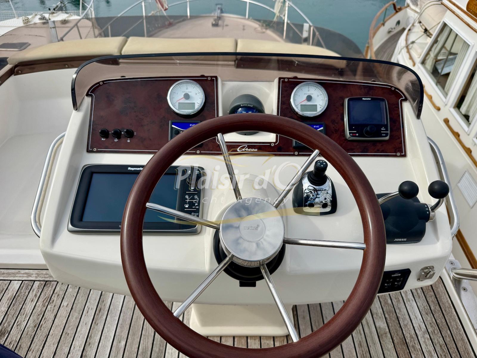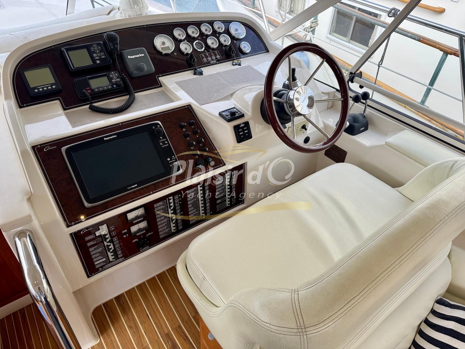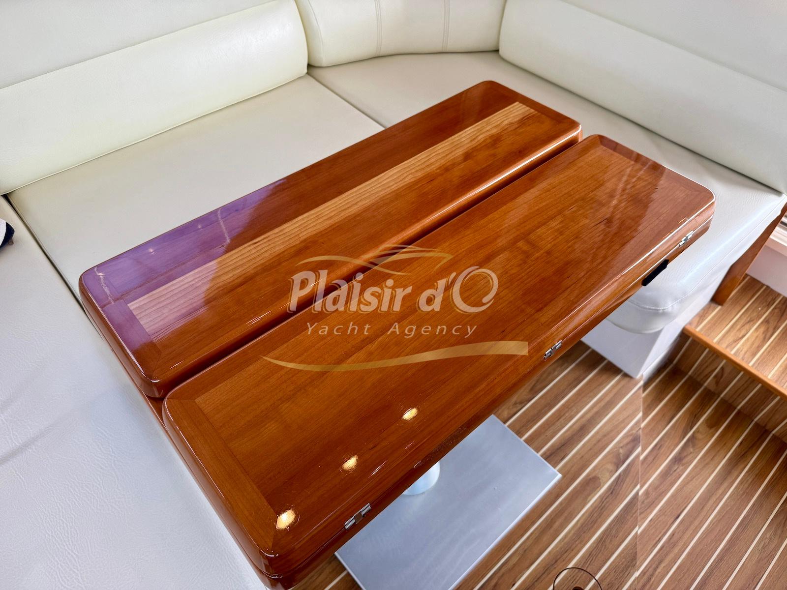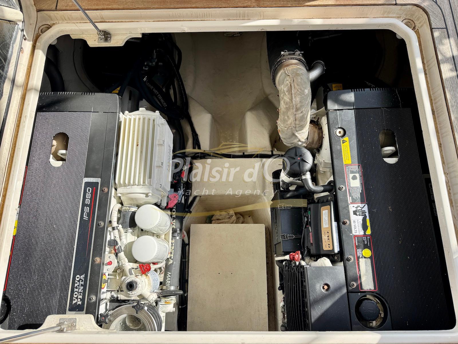 Nombreuses options : Transmission IPS, climatisation réversible, cockpit teck, GPS raymarine, radar, pilote automatique, guindeau électrique, bimini, WC électrique, micro-onde, système fusion, TV, VHF, AIS