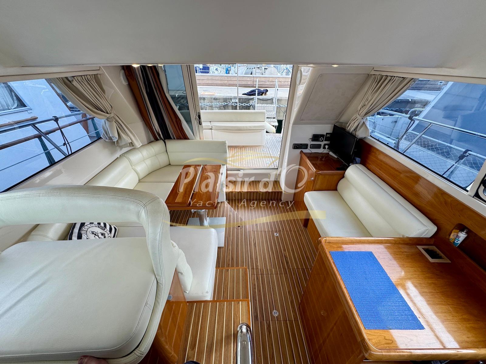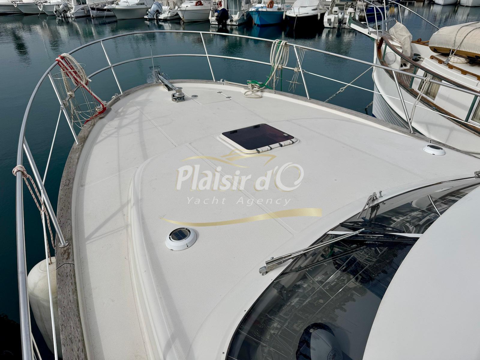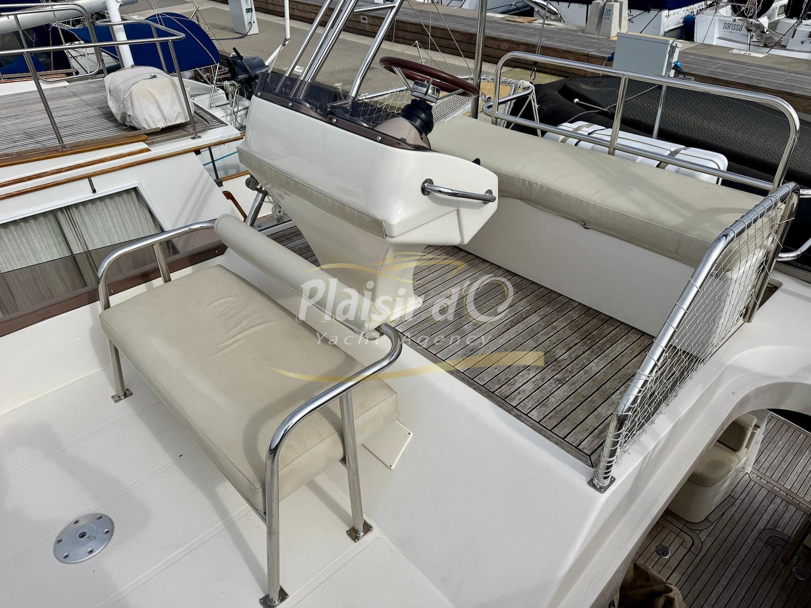 Nombreuses options : Transmission IPS, climatisation réversible, cockpit teck, GPS raymarine, radar, pilote automatique, guindeau électrique, bimini, WC électrique, micro-onde, système fusion, TV, VHF, AIS