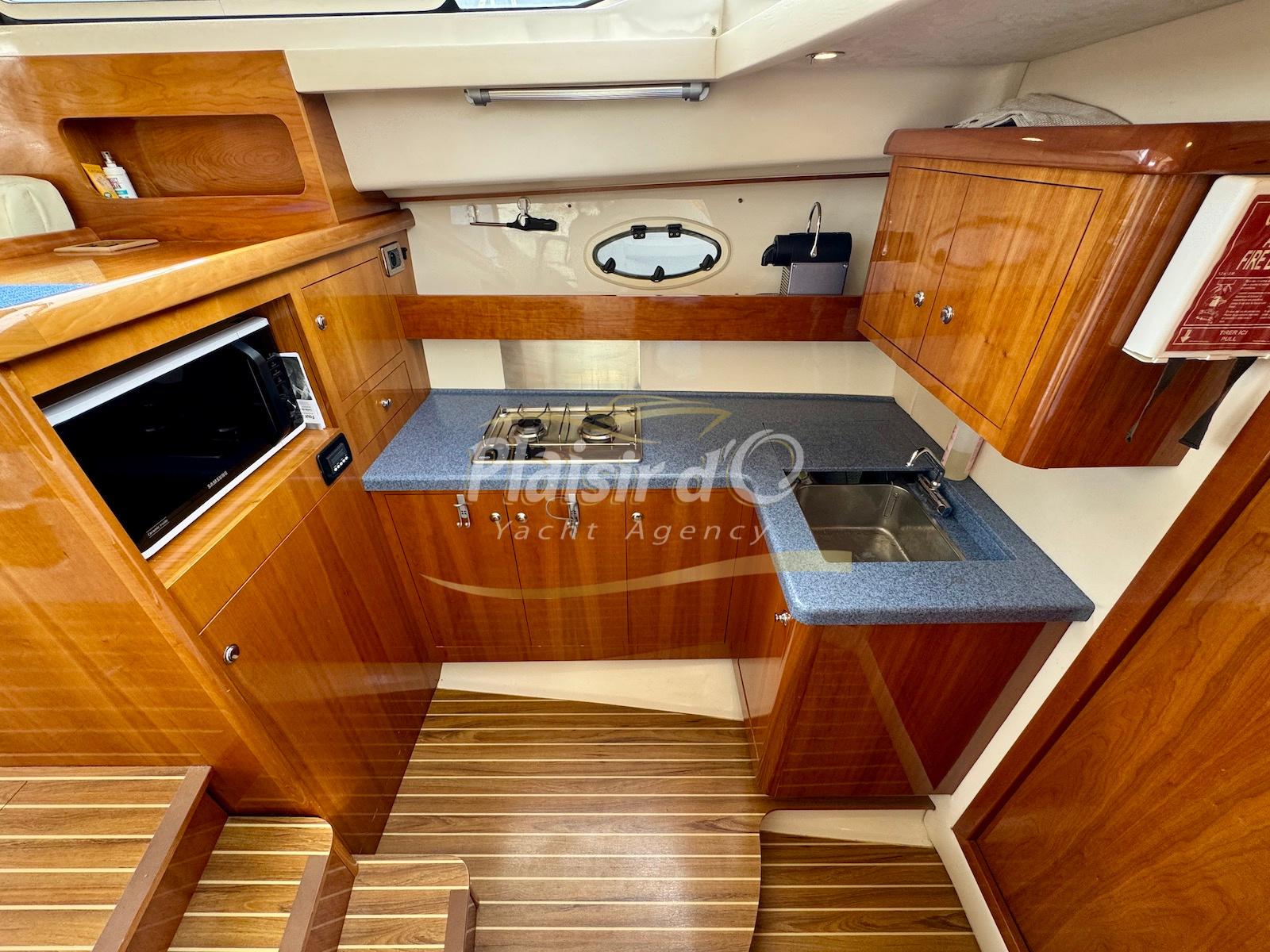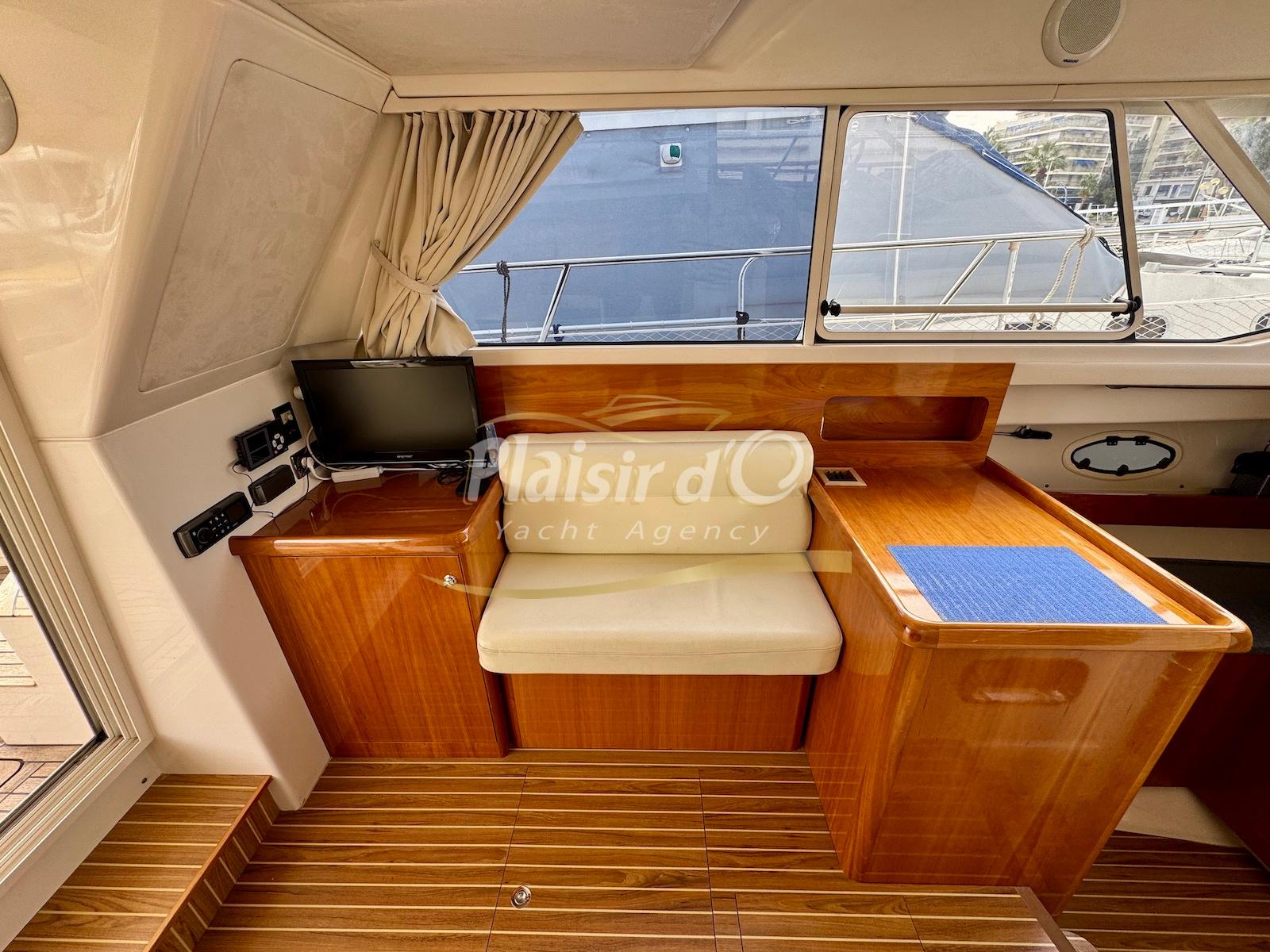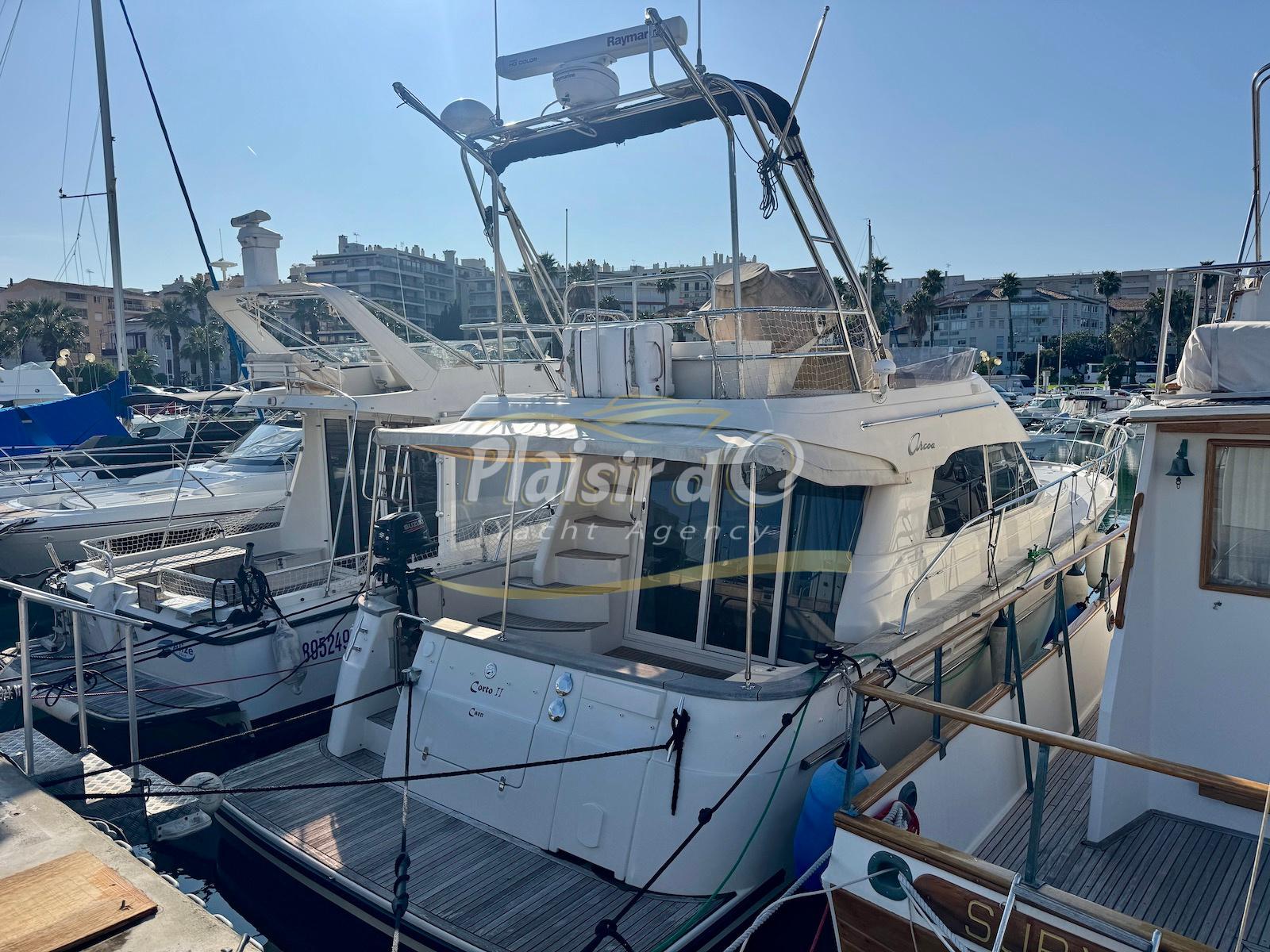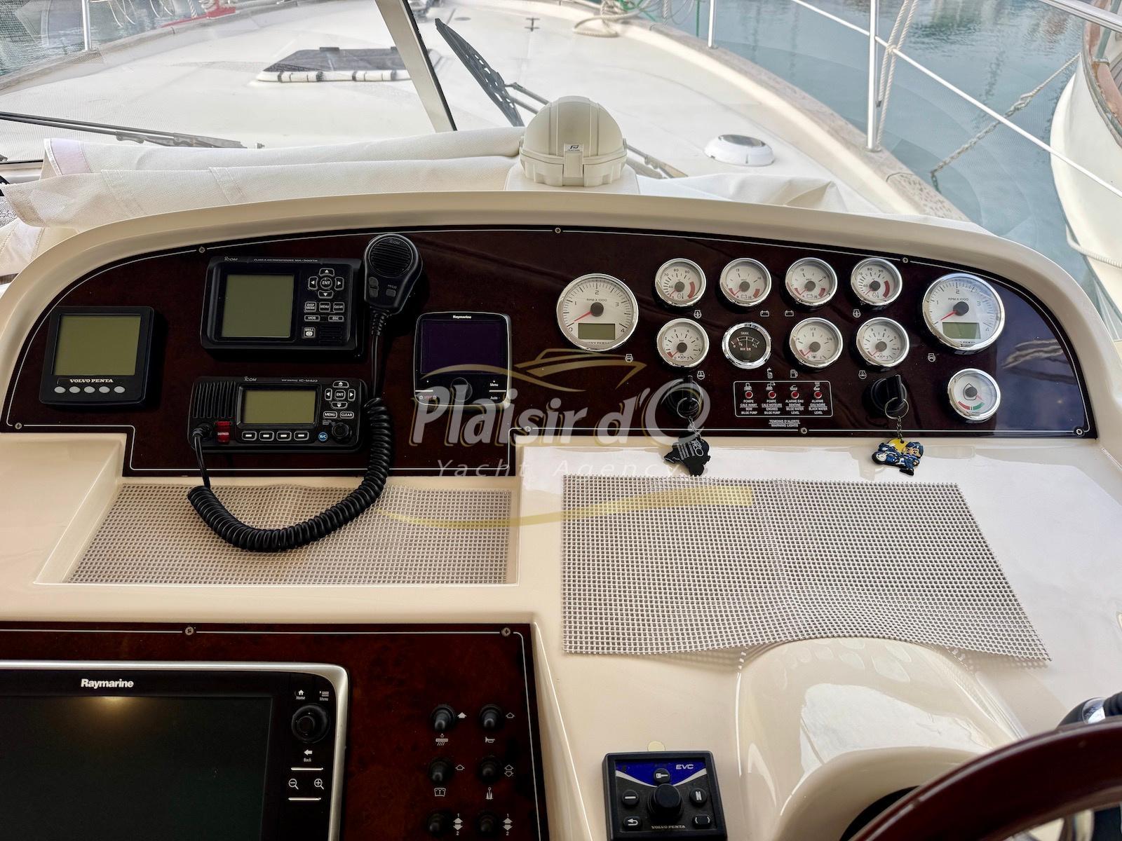 Nombreuses options : Transmission IPS, climatisation réversible, cockpit teck, GPS raymarine, radar, pilote automatique, guindeau électrique, bimini, WC électrique, micro-onde, système fusion, TV, VHF, AIS