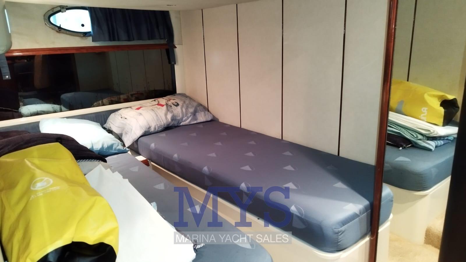 Alarme moteur, Ouverture du compartiment moteur électrique, Eau sous pression, Douche de cockpit, Flaps hydrauliques, Extincteur(s) fixe(s), Indicateurs de flaps, Lavabo dans le cockpit, Éclairage de courtoisie, Passerelle, Plateforme arrière, Pompe de cale automatique, Cockpit en teck, Prise de quai, Onduleur, Rollbar, Guindeau électrique, Echelle de bain, table de cockpit, Corne.