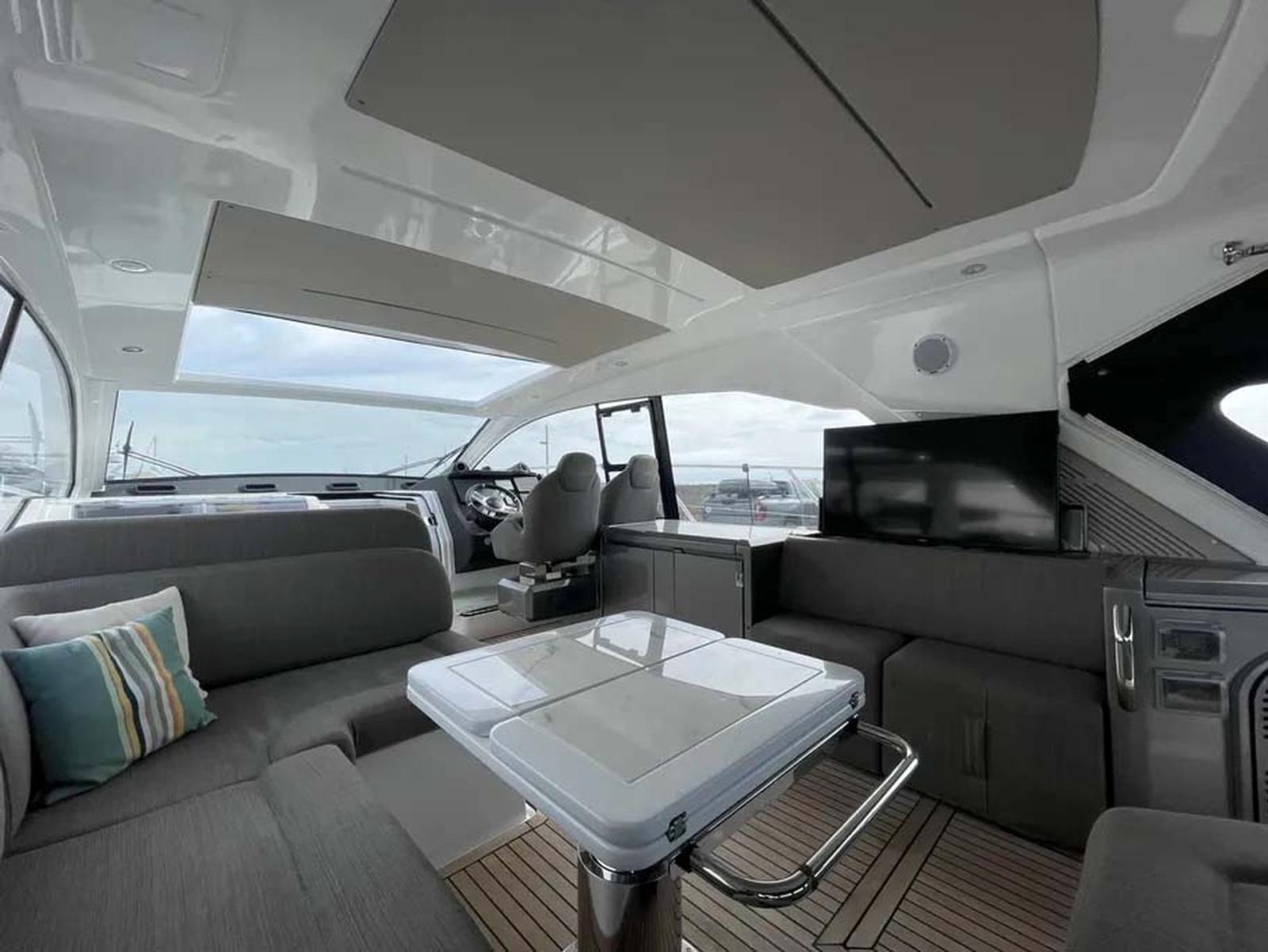 Ce bateau allie confort (grâce à ses 3 cabines, son salon spacieux et sa cuisine équipée) et sportivité avec une vitesse maximale de 34 noeuds.