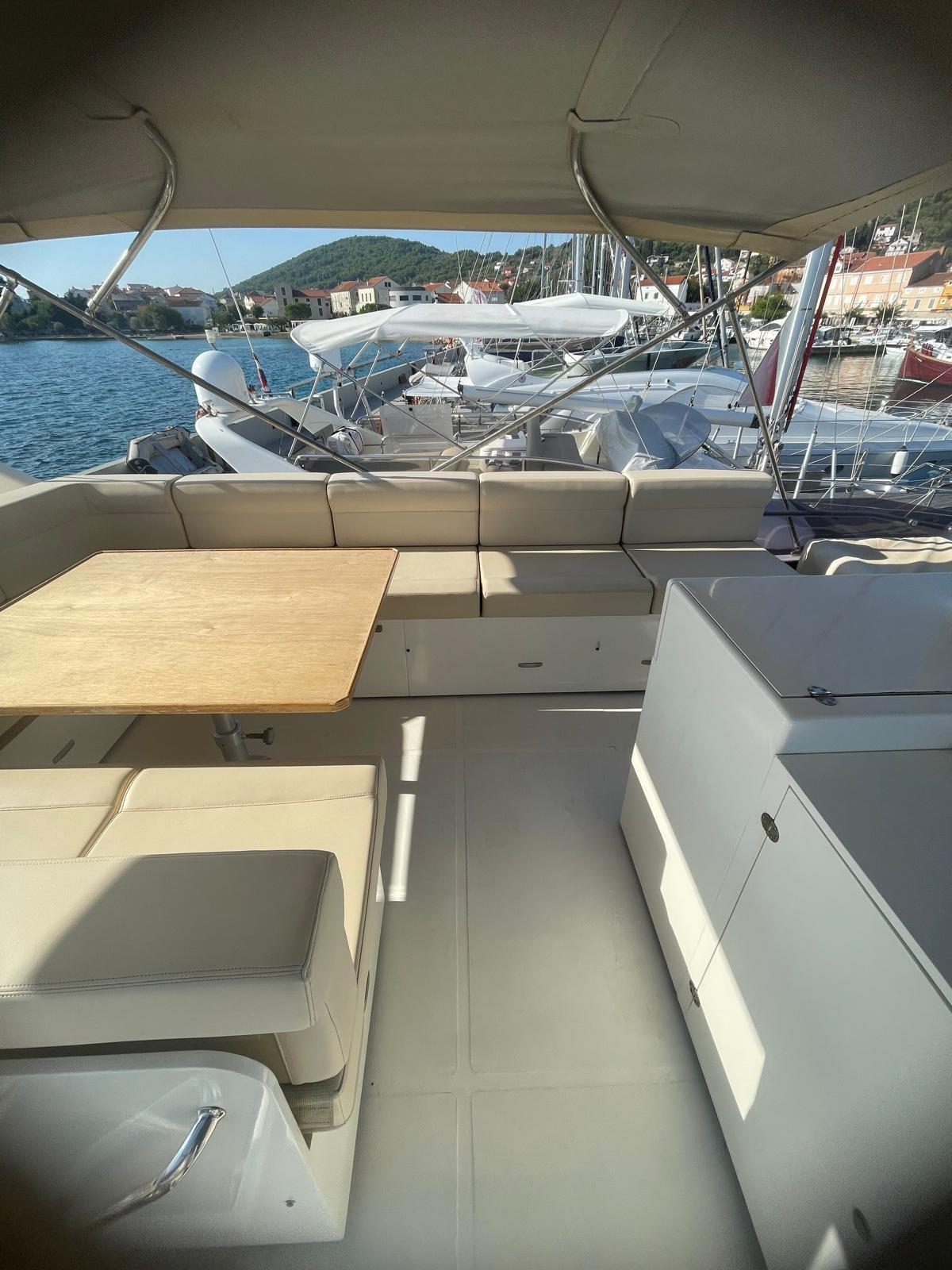 Alarme moteur, Alarme de pompe de cale, Ligne d'arbre de rechange, Eau sous pression, 6 Batteries, Passavant en teck, Douche de cockpit, Phare de poursuite, Flaps hydrauliques, Extincteur(s) fixe(s), Indicateurs de flaps, Éclairage de courtoisie, Spots sous-marins, Passerelle (Idraulica), Plateforme arrière, Pompe de cale automatique, Cockpit en teck, Prise de quai, Connexion eau sous pression à quai, Onduleur, Guindeau électrique, Echelle de bain, Système de filtration des eaux usées, table de cockpit, Table pliante de salon, Corne, Winch électrique arrière, Winch électrique avant.