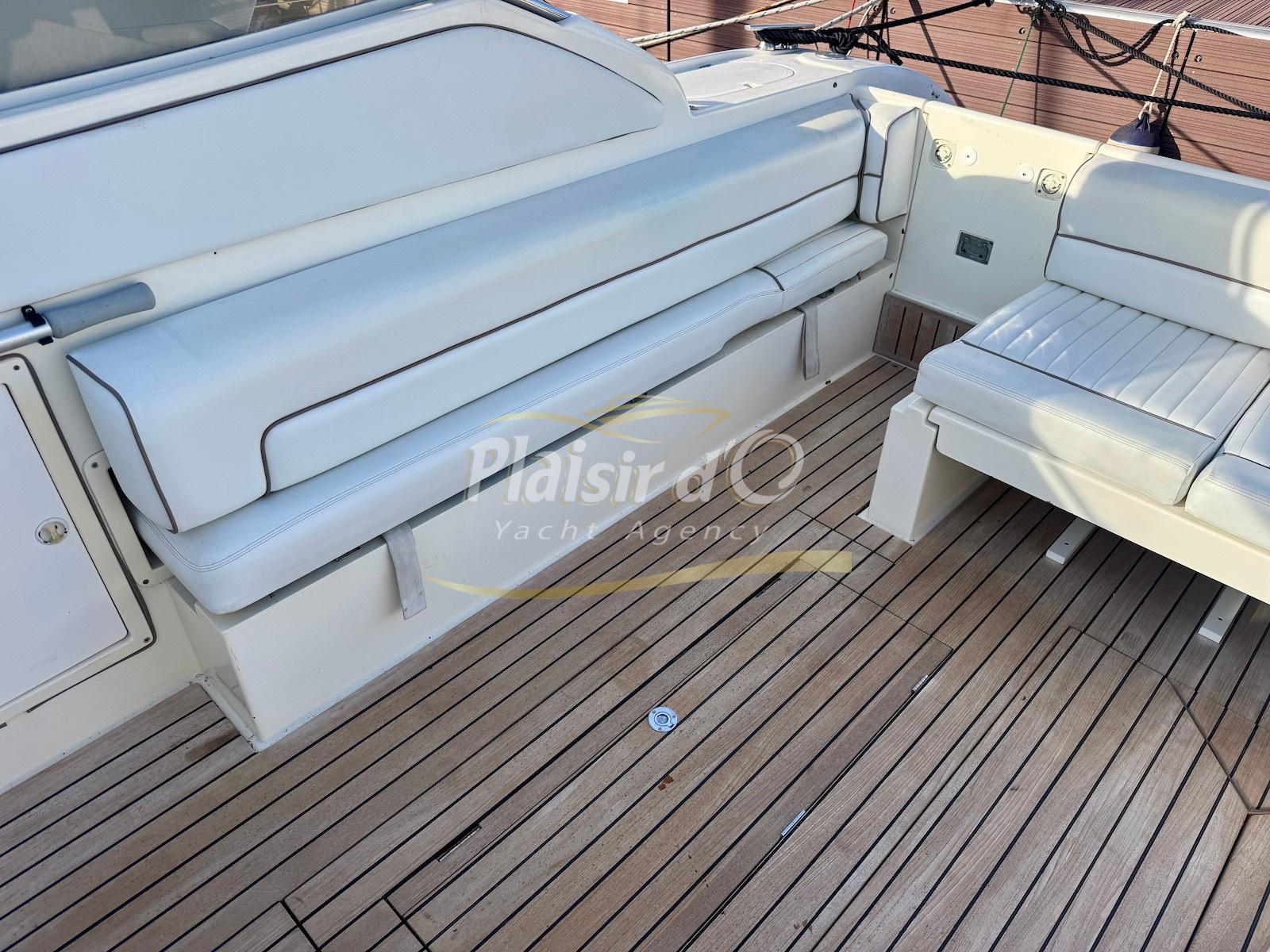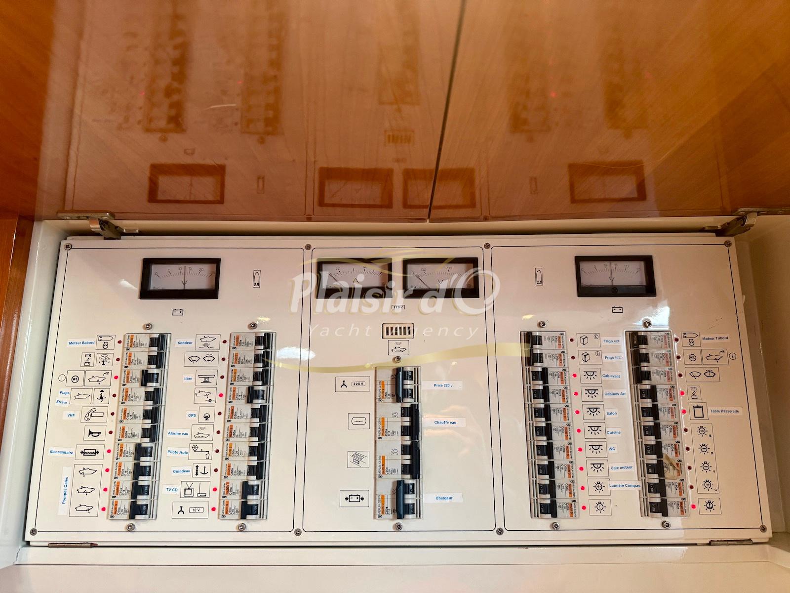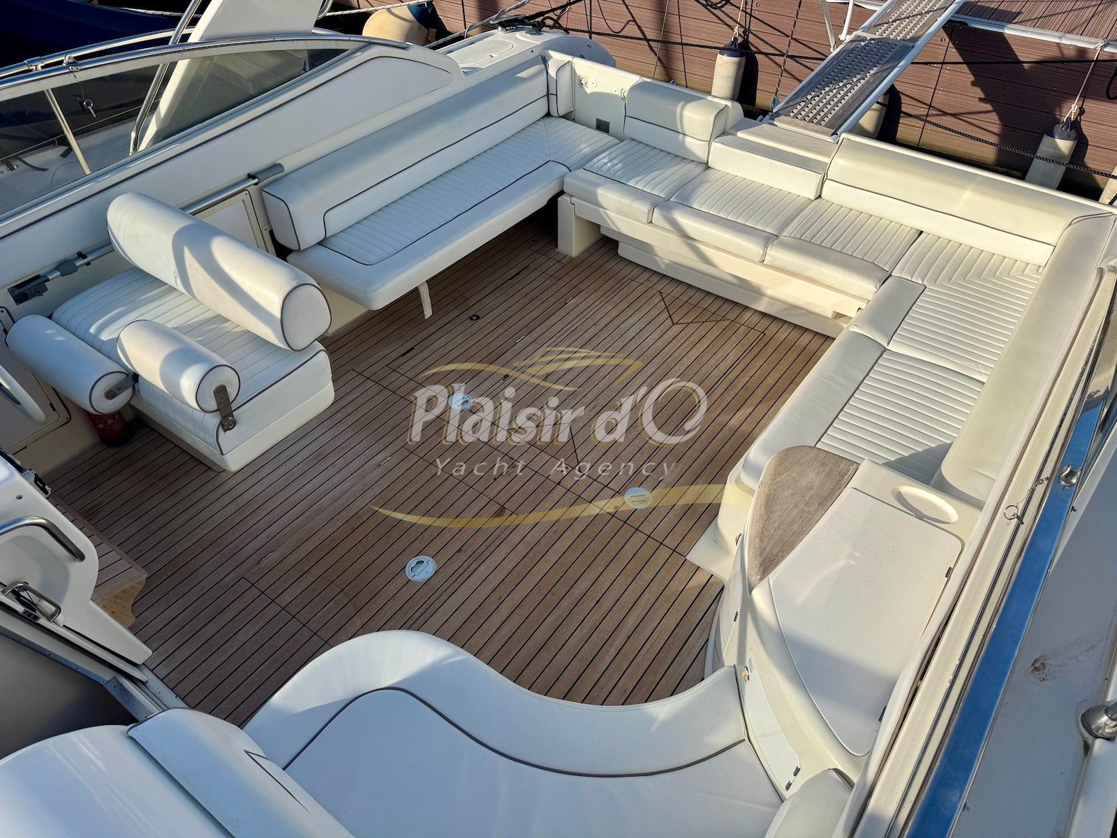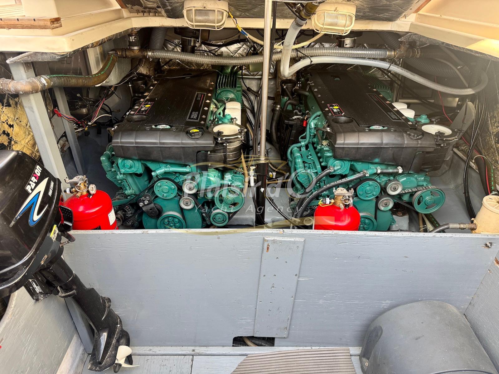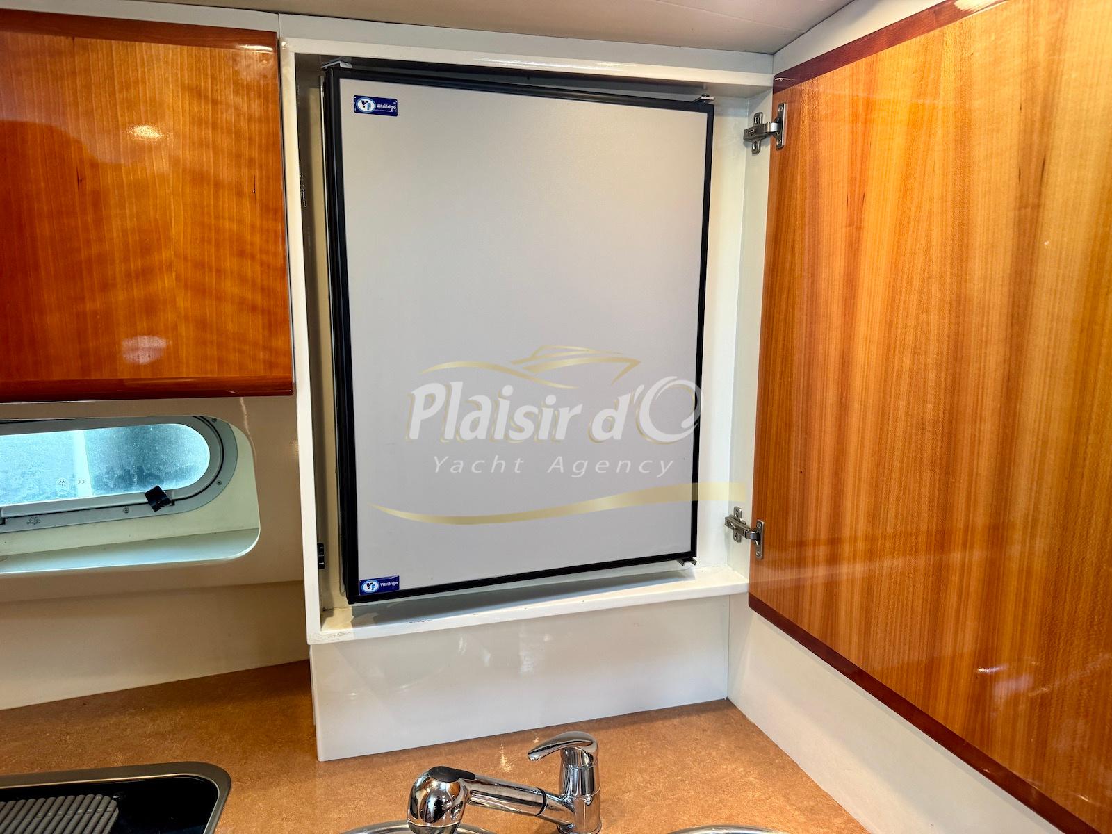 Nombreuses options : Volvo Penta D6-310; propulseur d’étrave, passerelle hydraulique, table de cockpit hydraulique, guindeau électrique, compteur de chaine, GPS Garmin récent, VHF Navicom, pilote automatique, TV, 2 réfrigérateurs, système fusion, sellerie complète récente, Bimini, taud de cockpit complet + taud de tableau de bord et siège pilote …