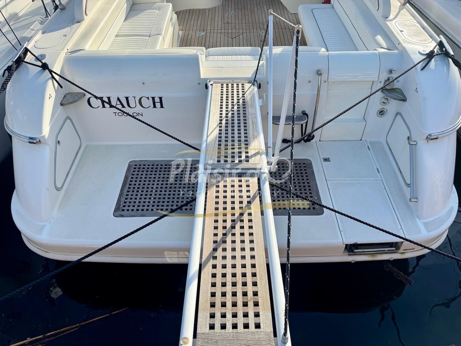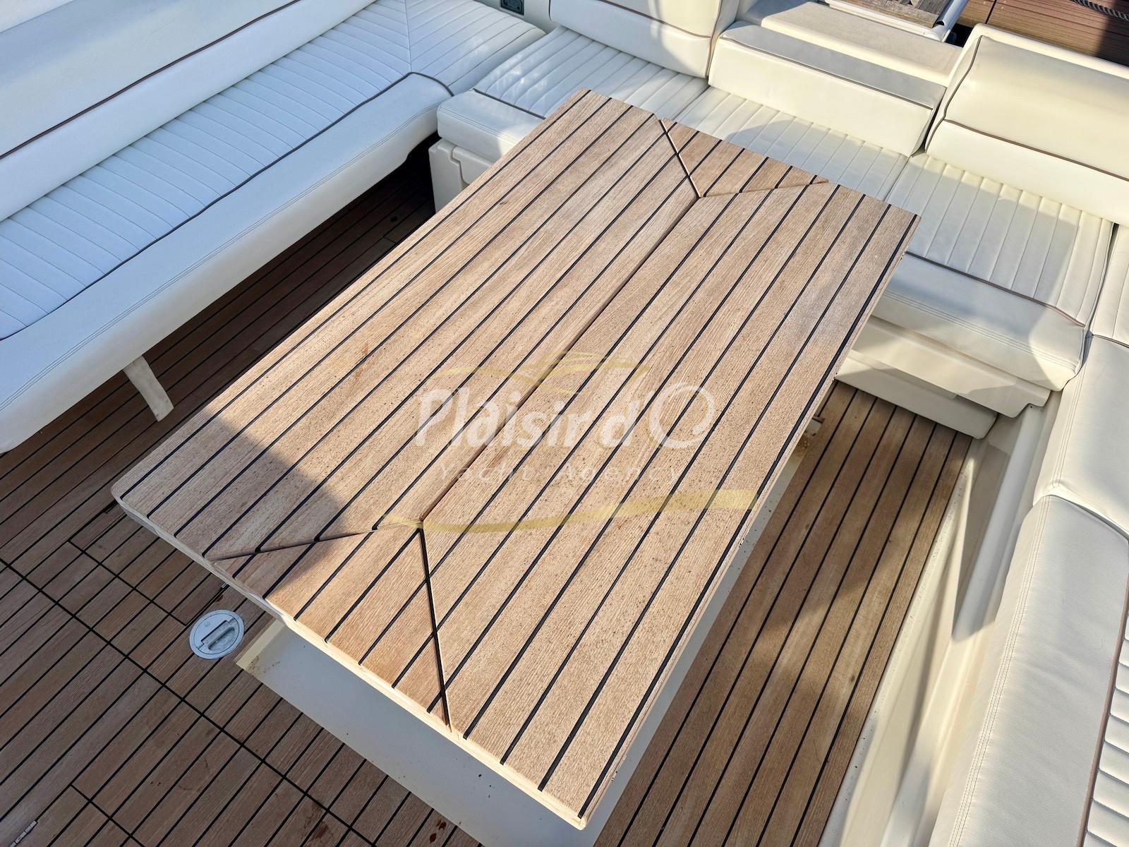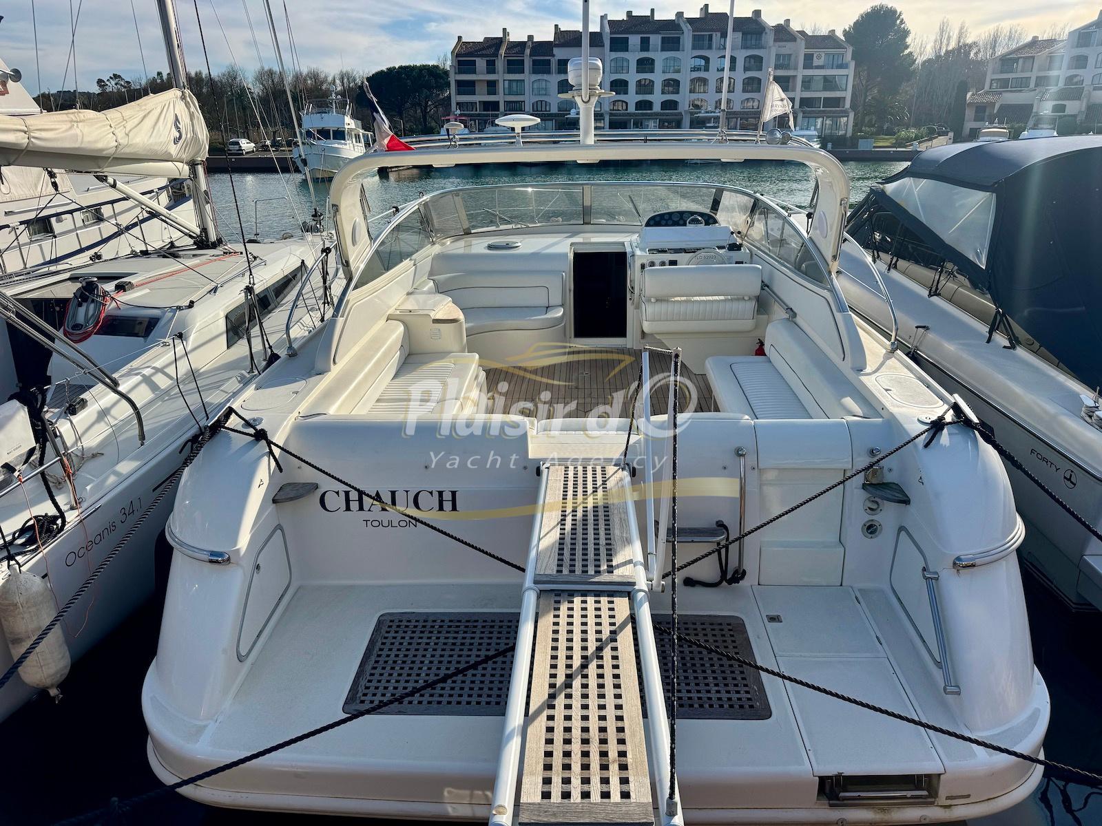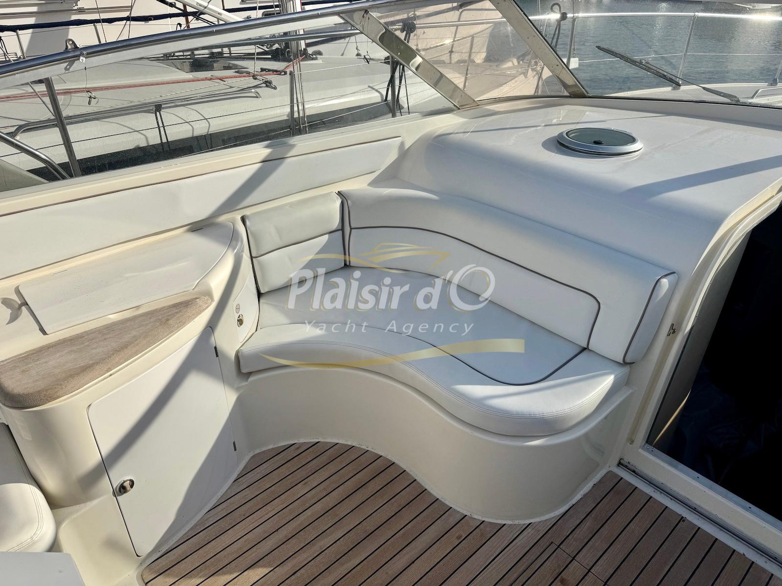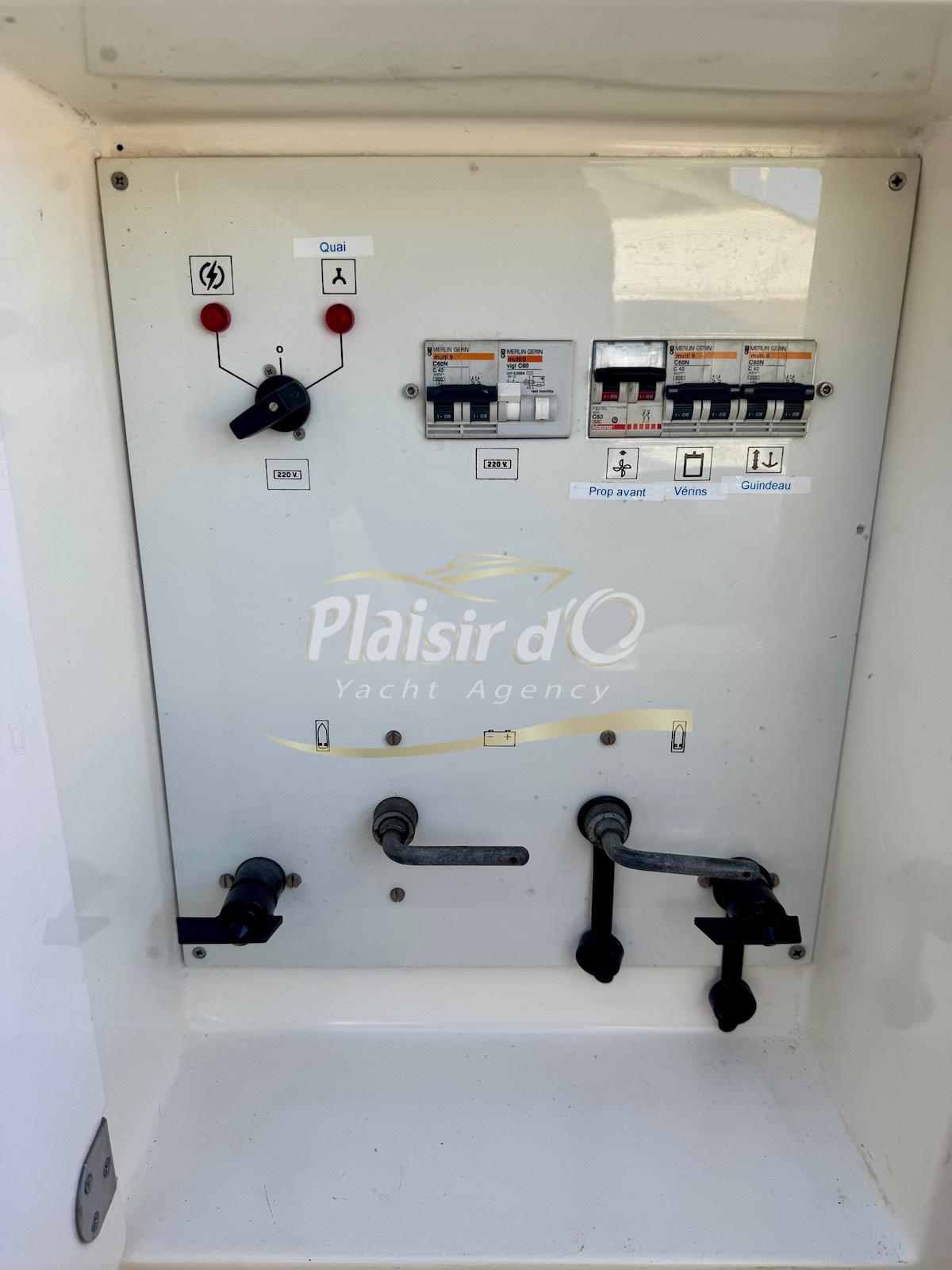 Nombreuses options : Volvo Penta D6-310; propulseur d’étrave, passerelle hydraulique, table de cockpit hydraulique, guindeau électrique, compteur de chaine, GPS Garmin récent, VHF Navicom, pilote automatique, TV, 2 réfrigérateurs, système fusion, sellerie complète récente, Bimini, taud de cockpit complet + taud de tableau de bord et siège pilote …