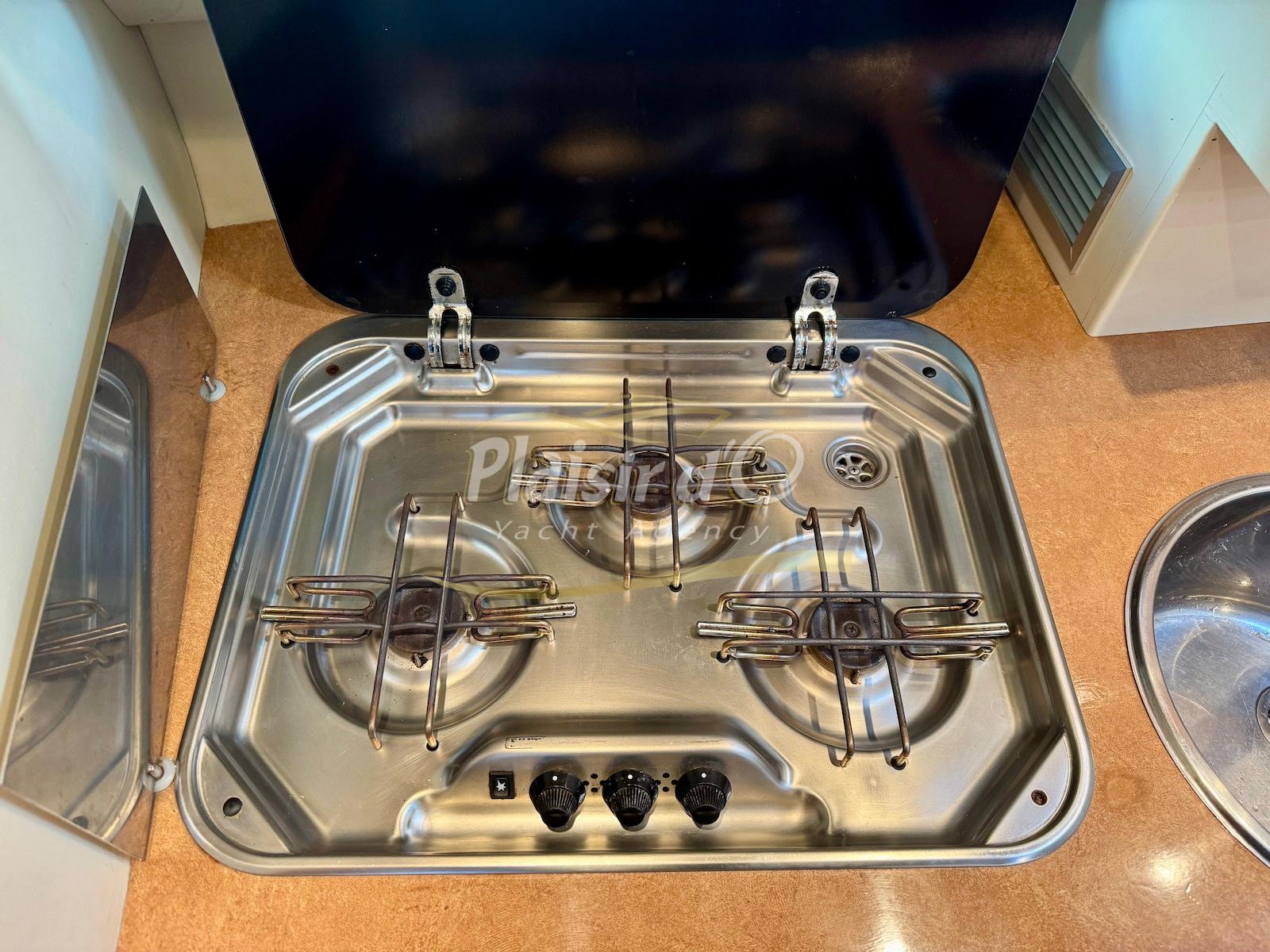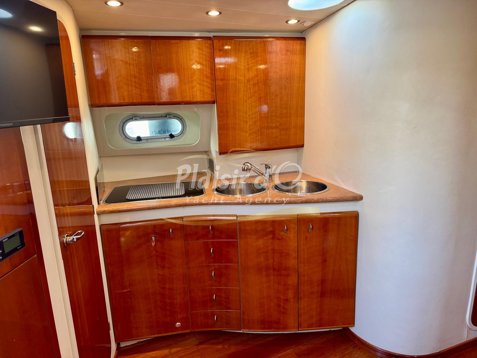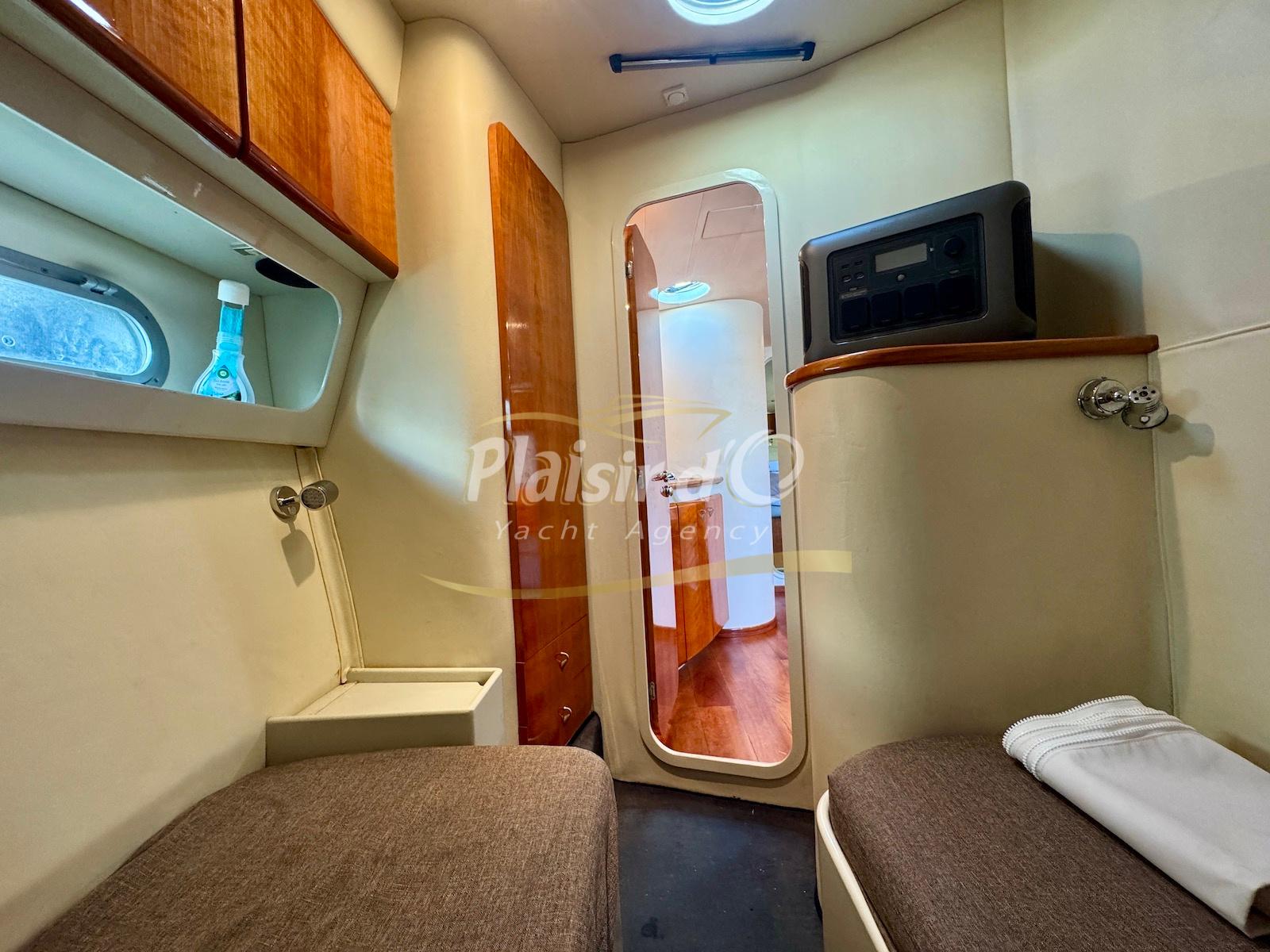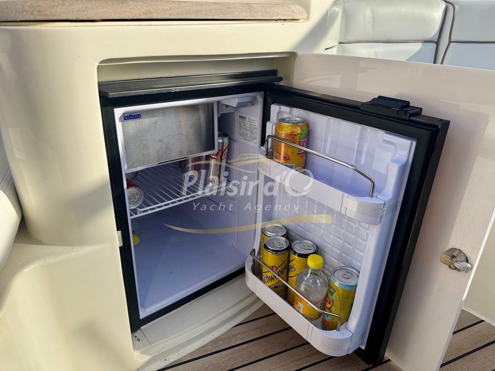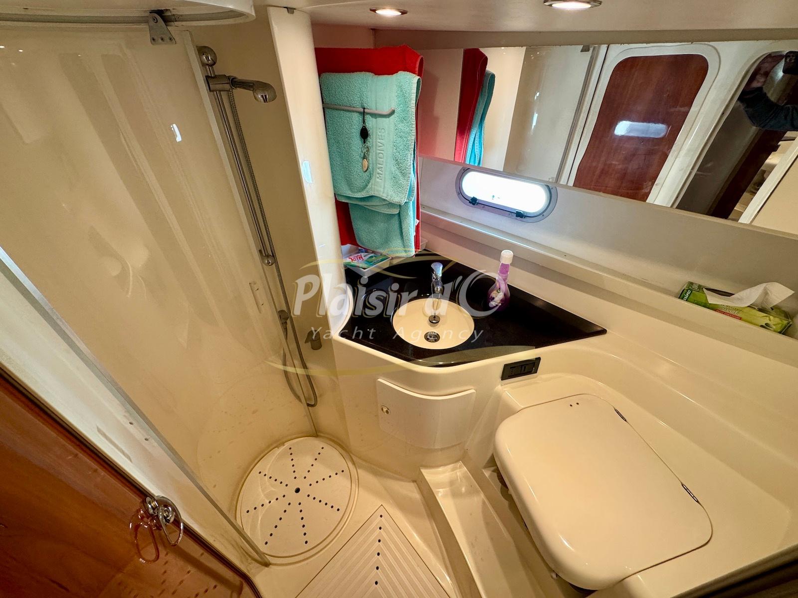 Nombreuses options : Volvo Penta D6-310; propulseur d’étrave, passerelle hydraulique, table de cockpit hydraulique, guindeau électrique, compteur de chaine, GPS Garmin récent, VHF Navicom, pilote automatique, TV, 2 réfrigérateurs, système fusion, sellerie complète récente, Bimini, taud de cockpit complet + taud de tableau de bord et siège pilote …