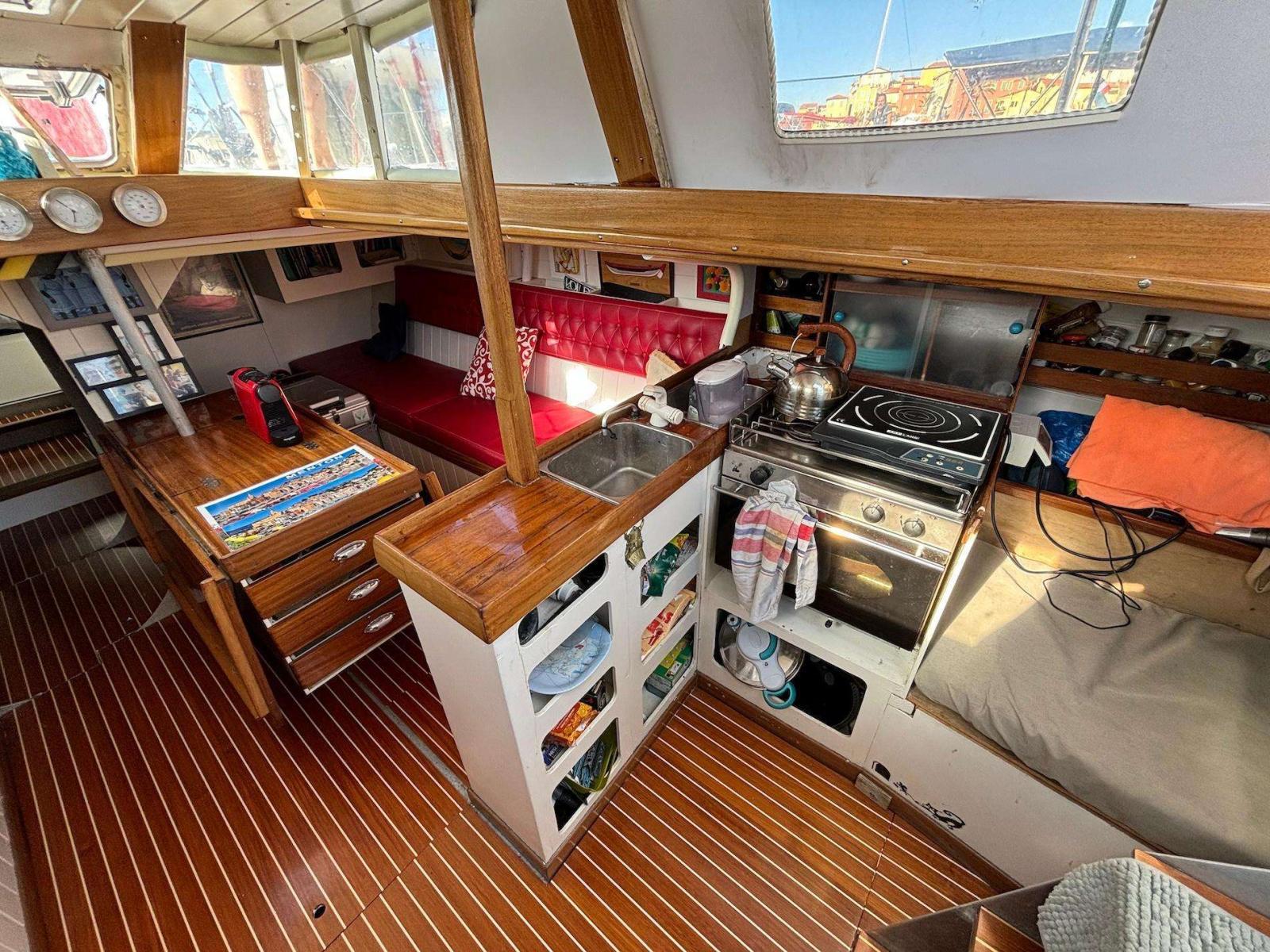 Eclipse 60’ Aluminium (1992) – Sister Ship du "36.15 MET" de J.-L. Van Den HeedePièce unique de l’architecture navale, ce voilier en aluminium de 18,24 m a été conçu pour affronter les mers du globe. Modèle Eclipse 60’, dessiné par Philippe Harlé et construit par Garcia, il est le Sister Ship du célèbre "36.15 MET" de Jean-Luc Van Den Heede, engagé sur le Vendée Globe 1992, et a vu Vincent Riou réaliser à son bord sa toute première transatlantique.Pensé pour la grande croisière et les navigations engagées, ce voilier robuste et marin affiche des caractéristiques techniques remarquables :Caractéristiques principalesConstructeur : GarciaAnnée : 1992Architecte : Philippe HarléModèle : Eclipse 60’Matériau : AluminiumLongueur HT : 18,24 mLargeur : 3,44 mTirant d’eau : 2,80 mDéplacement : 12,4 tQuille : droite, lest plomb (4,25 t au total)Safran : suspendu, mèche pleine alu Ø 100 mmCompartimentage : 3 cloisons étanches, 4 zones indépendantesCoque : épaisseurs de 5 à 8 mm, métallurgie vérifiée (2013)Motorisation : Nanni N4-50 – 50 cv – 240 h – entretien proSail Drive remplacé en 2024Réservoir diesel 140 LPont et accastillage haut de gammeMâts : 2 mâts aluminium (Sparcraft et Seldén), gréement dormant Dyform (2007)Bôme avec Lazy BagWinches Andersen (jusqu’à 66 ST)Rail et accastillage Harken / Frederiksen / Antal6 taquets soudés, balcon inox, chandeliers renforcésGuindeau électriqueJeu de voiles complet et performantGrand-voile Full Batten Hydranet 80 m² (2007) – Excellent étatSolent Hydranet sur enrouleur Profurl 65 m² (2008)Inter sur bas-étai à mousquetonsGennaker 100 m² sur emmagasineur ProfurlSpi symétrique et asymétriqueArtimon Full Batten + tangonsAménagements et confortCarré spacieux convertible (4 couchages possibles)Cabine avant lit double avec rangement2 couchettes cercueil arrièreCabine toilette avec WC marinCuisine équipée : réchaud 2 feux + four, glacière électrique 90 L, 2 x 120 L d’eau douceChauffe-eau moteur/220VTableaux électriques 12V et 220V neufs (2024)Électronique & ÉnergieDouble centrale Raymarine, radar, GPS RS70C, PC durciPilote automatiqueVHF fixe et portableFeux de navigation LEDChargeur Victron Energy 30AAlternateur 100ASécurité hauturière complète et à jourRadeau Sea Safe 10 places révisé (2016)Balise de détresseArmement semi-hauturier 8 personnesExtincteurs, feux, bouées, mouillages (CQR + aluminium)Entretien et travaux récentsSail Drive neuf (2024)Tableaux et réseaux électriques refaits (2024)Sécurité hauturière complète et réviséeEntretien moteur pro Nanni, faible nombre d’heuresPourquoi choisir ce voilier ?Un pedigree unique dans l’histoire de la course au largeRobustesse incomparable de l’aluminium GarciaPrêt pour le grand large avec un équipement complet et entretenuPolyvalent et évolutif, idéal pour projet tour du monde, expéditions ou charter hauturier Visible sur rendez-vous