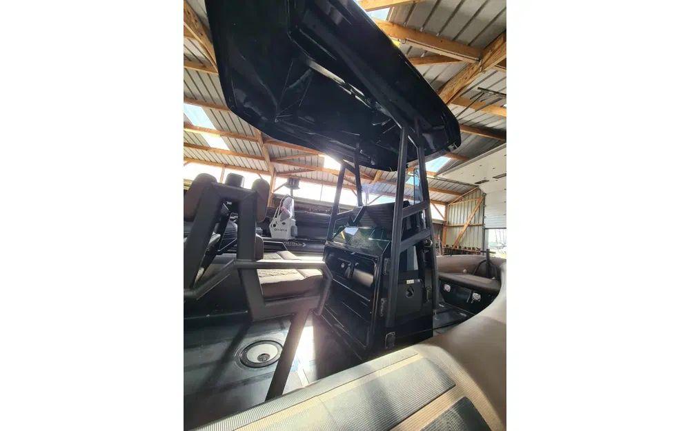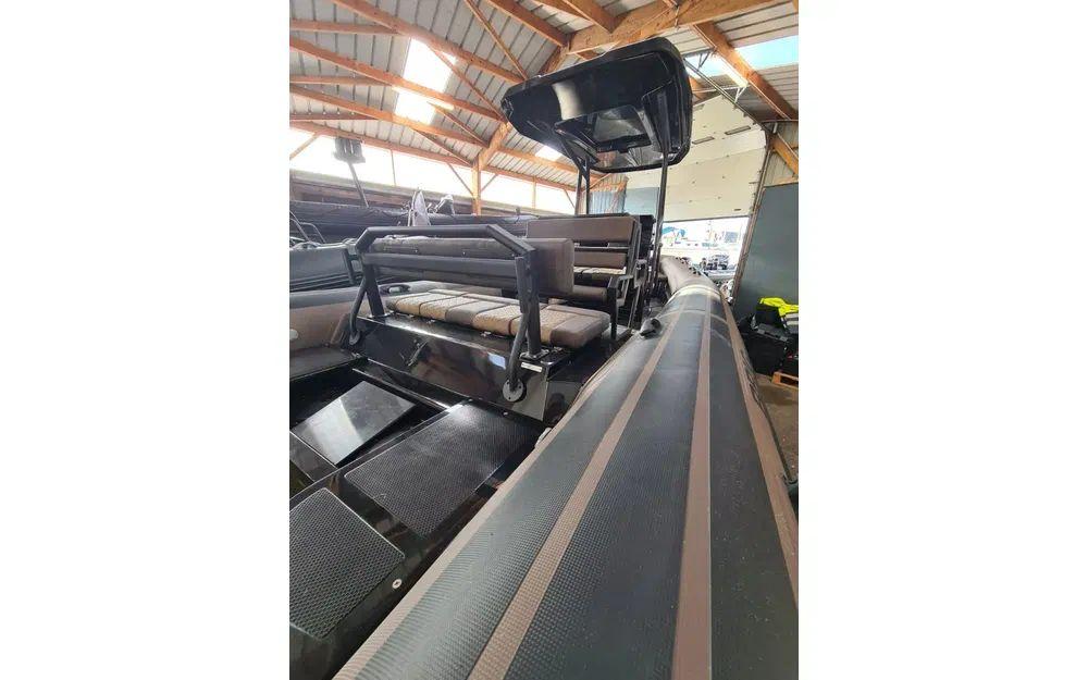 OPTIONS INCLUSES : Gelcoat noir, SEADECK noir/noir, Patch noir carbon, Coussin Moka, Bande full black, Plateformes de bain arrière avec échelle, Feux de navigation, Tableau de contacteurs, Boîte à gant avec prises, Feu blanc, T-Top N24, Armement de sécurité 6 personnes.